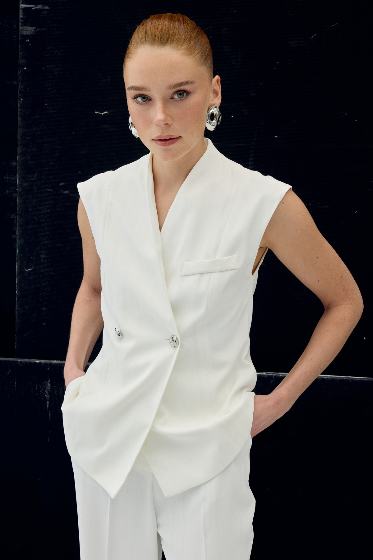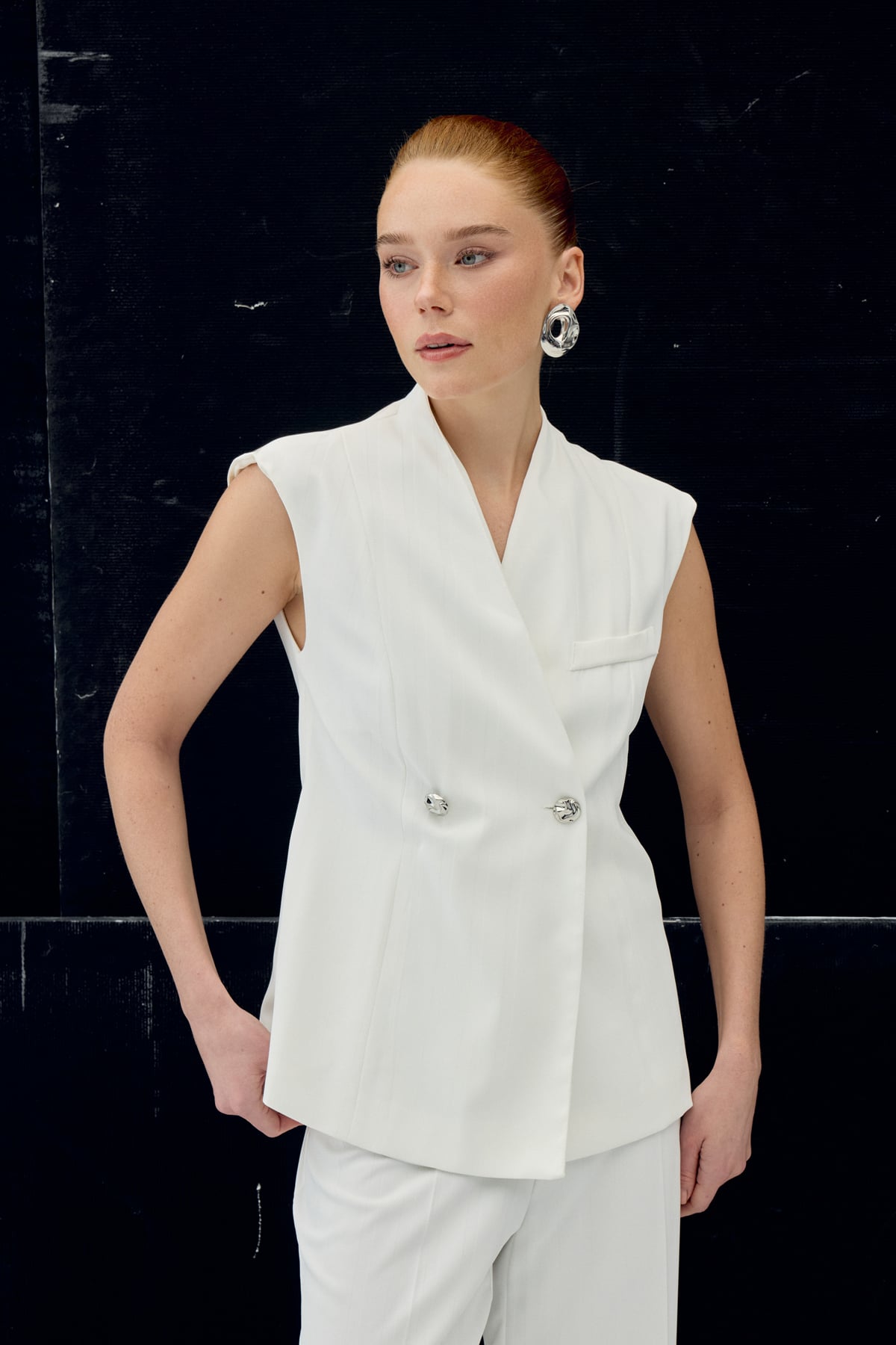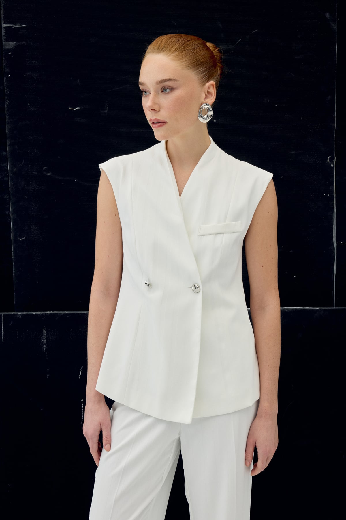 Anna Çizgili Yelek - Ekru (STN139KYE2111-EK)