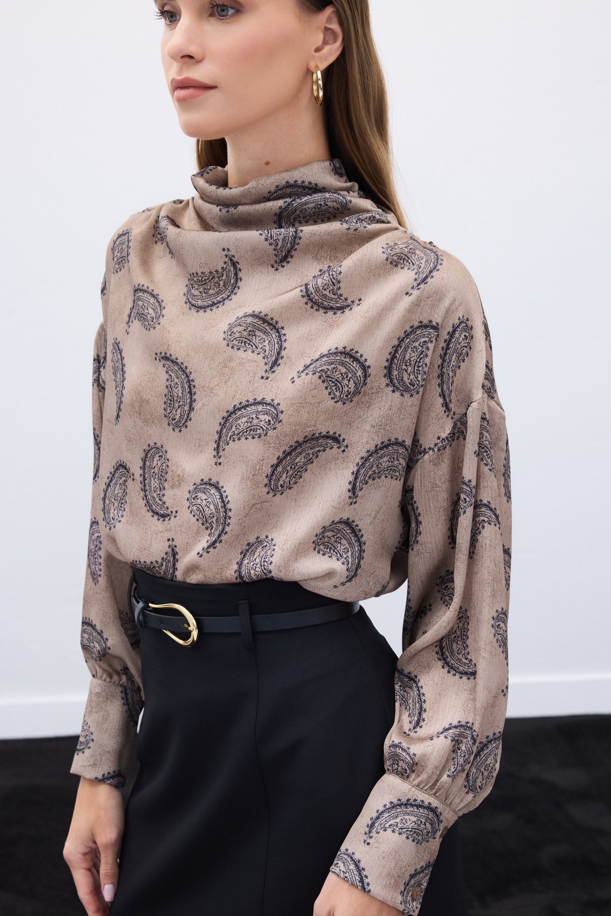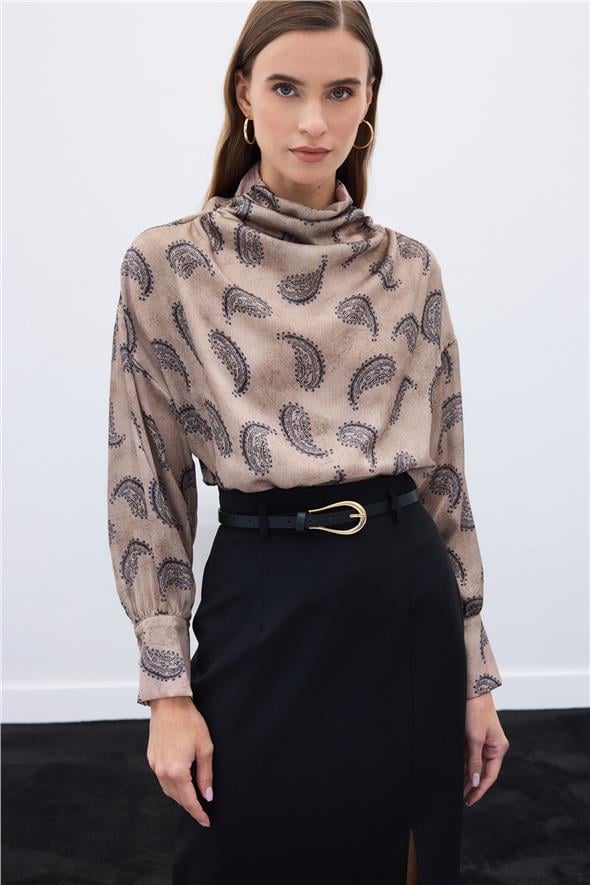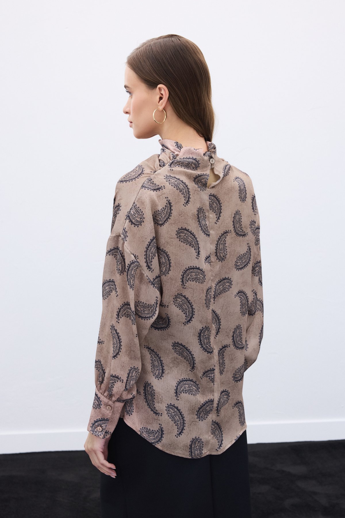 Degaje Yaka Desenli Bluz - Vizon (STN139KBL1907-VI)