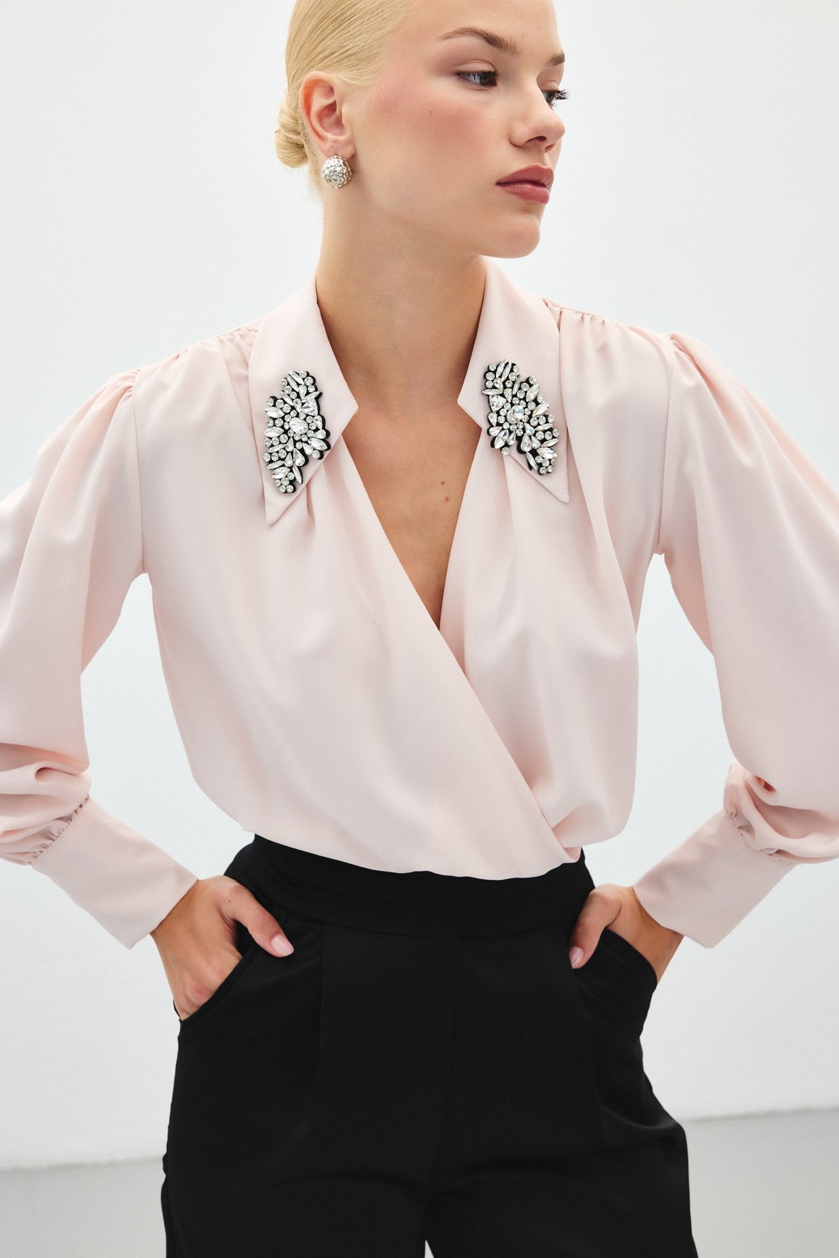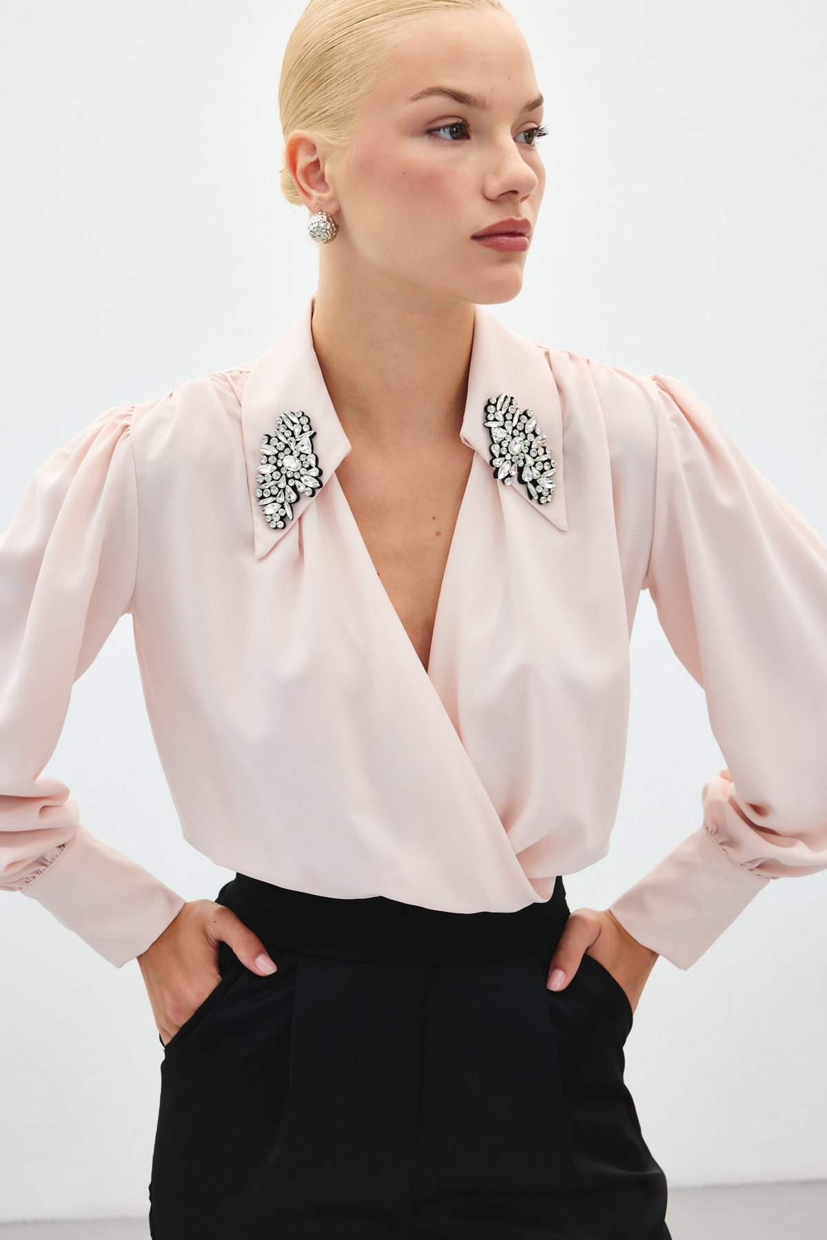Aksesuar Detaylı Bodysuit Bluz - Pudra (STN139KBL1354-P)