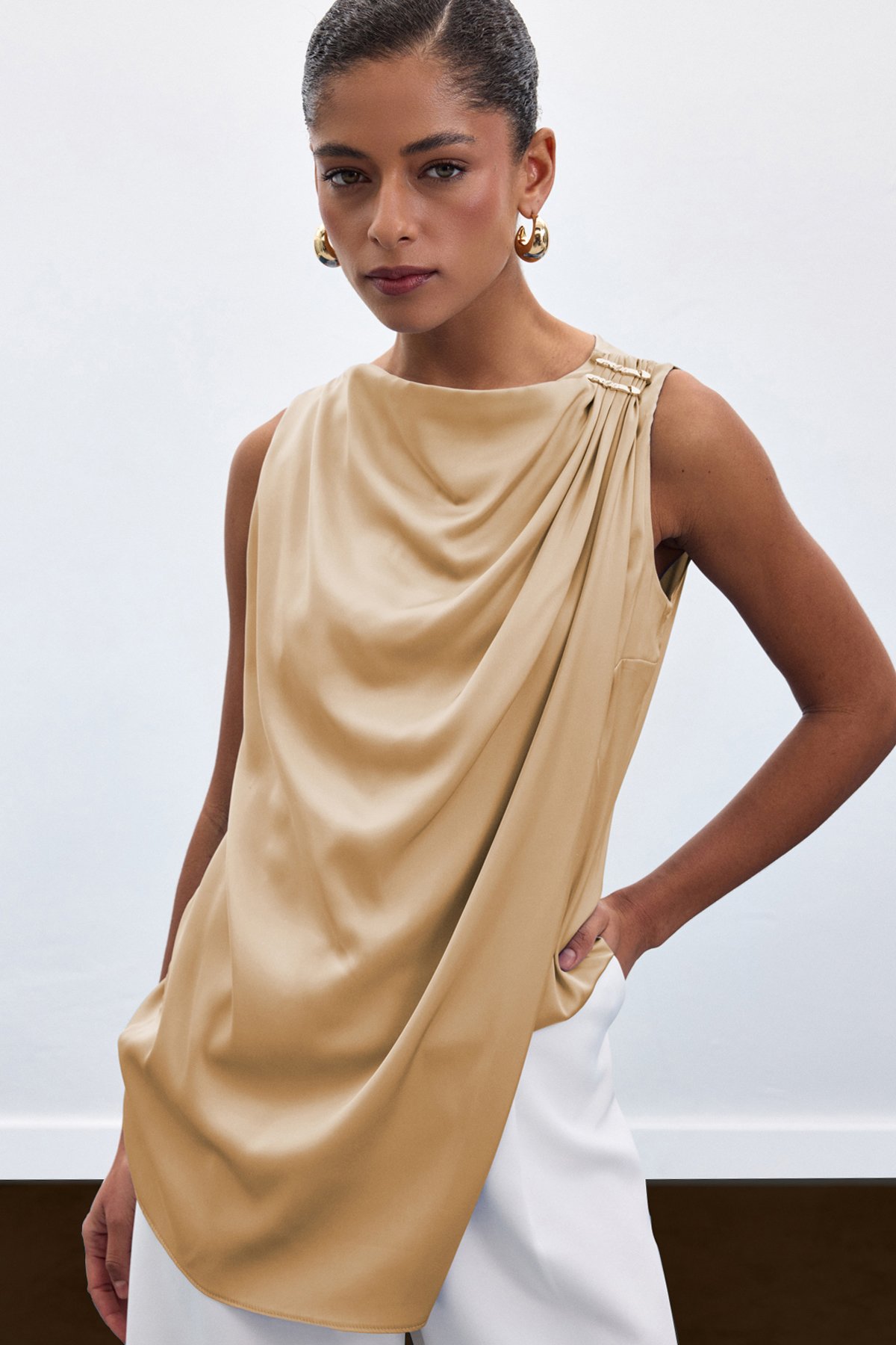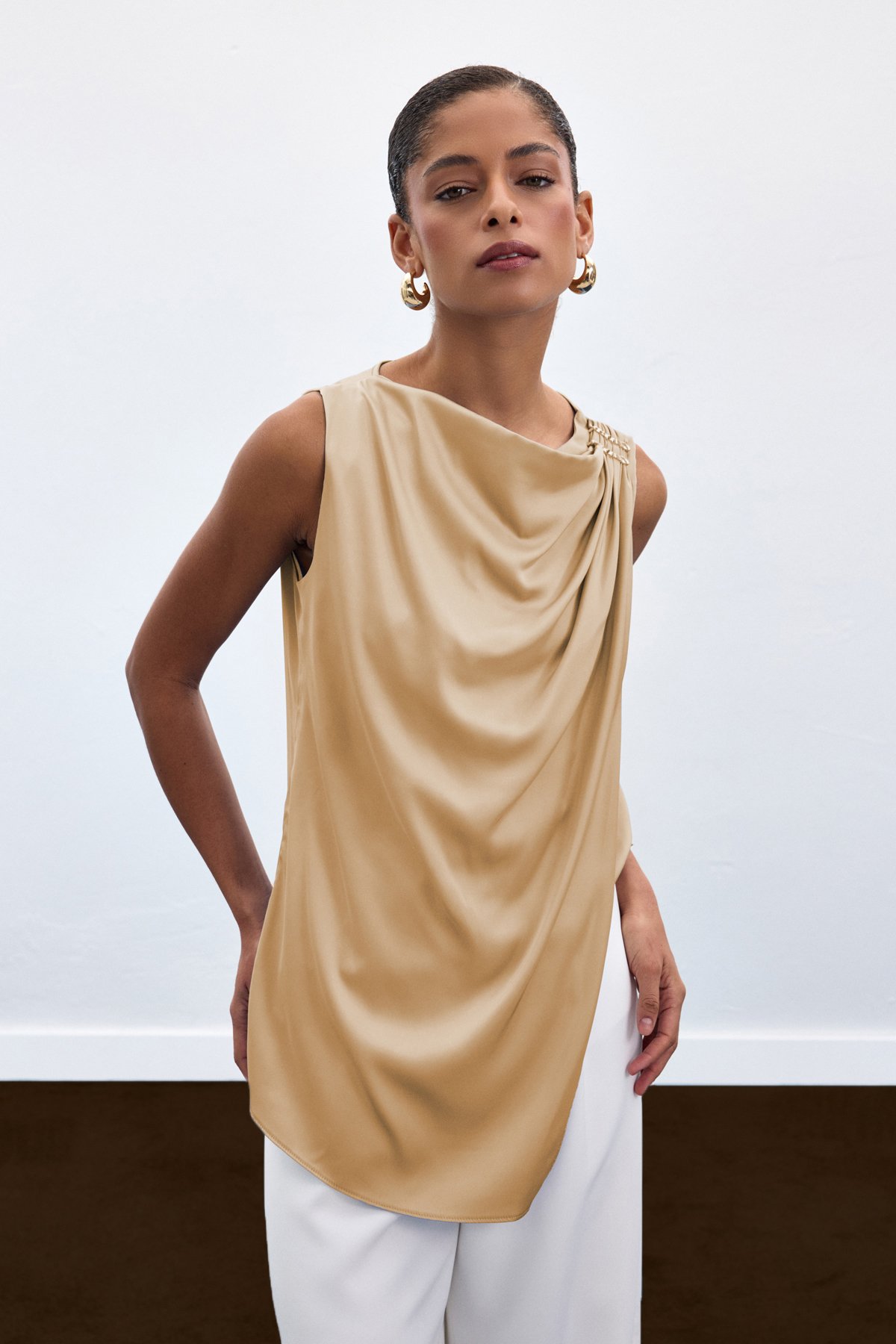 Aksesuar Detaylı Kolsuz Bluz - Camel (STN139KBL1967-CAM)