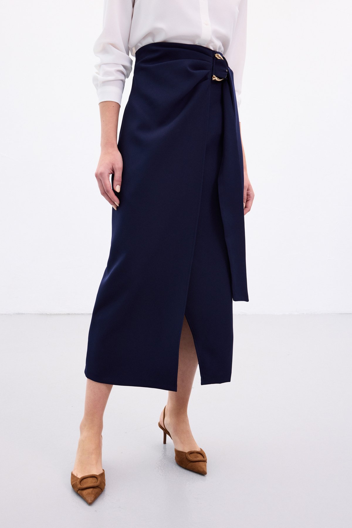 Aksesuar Kuşaklı Yırtmaçlı Etek - Lacivert (STN139KET1976-LAC)