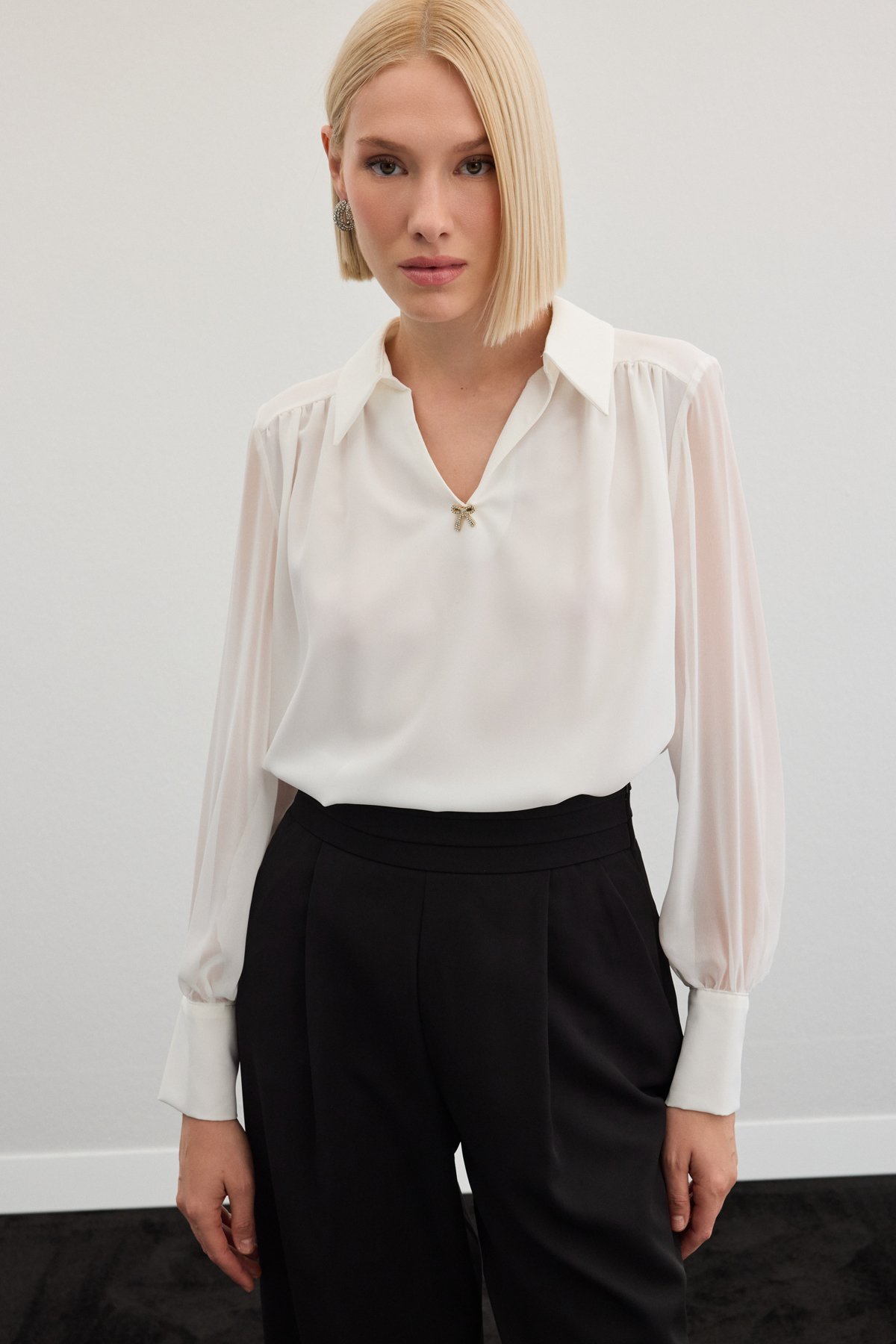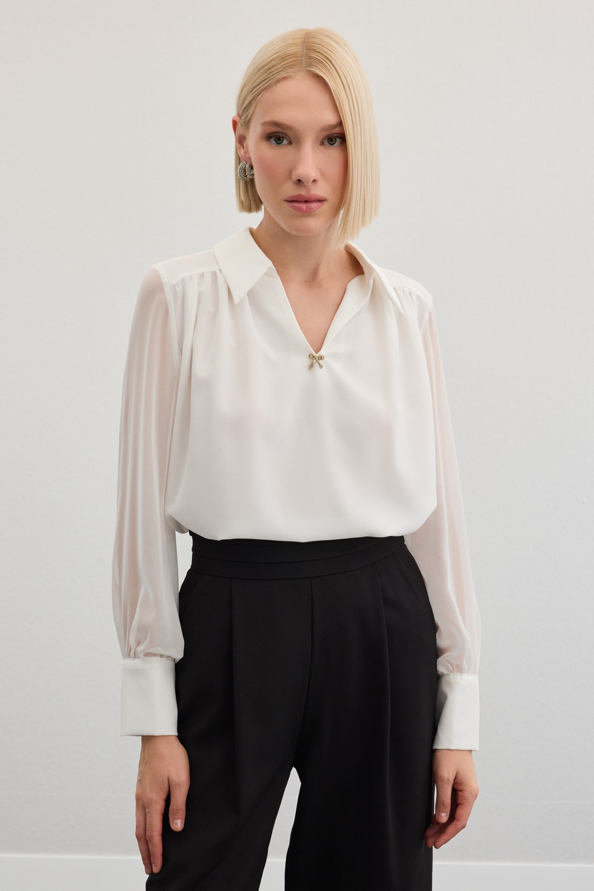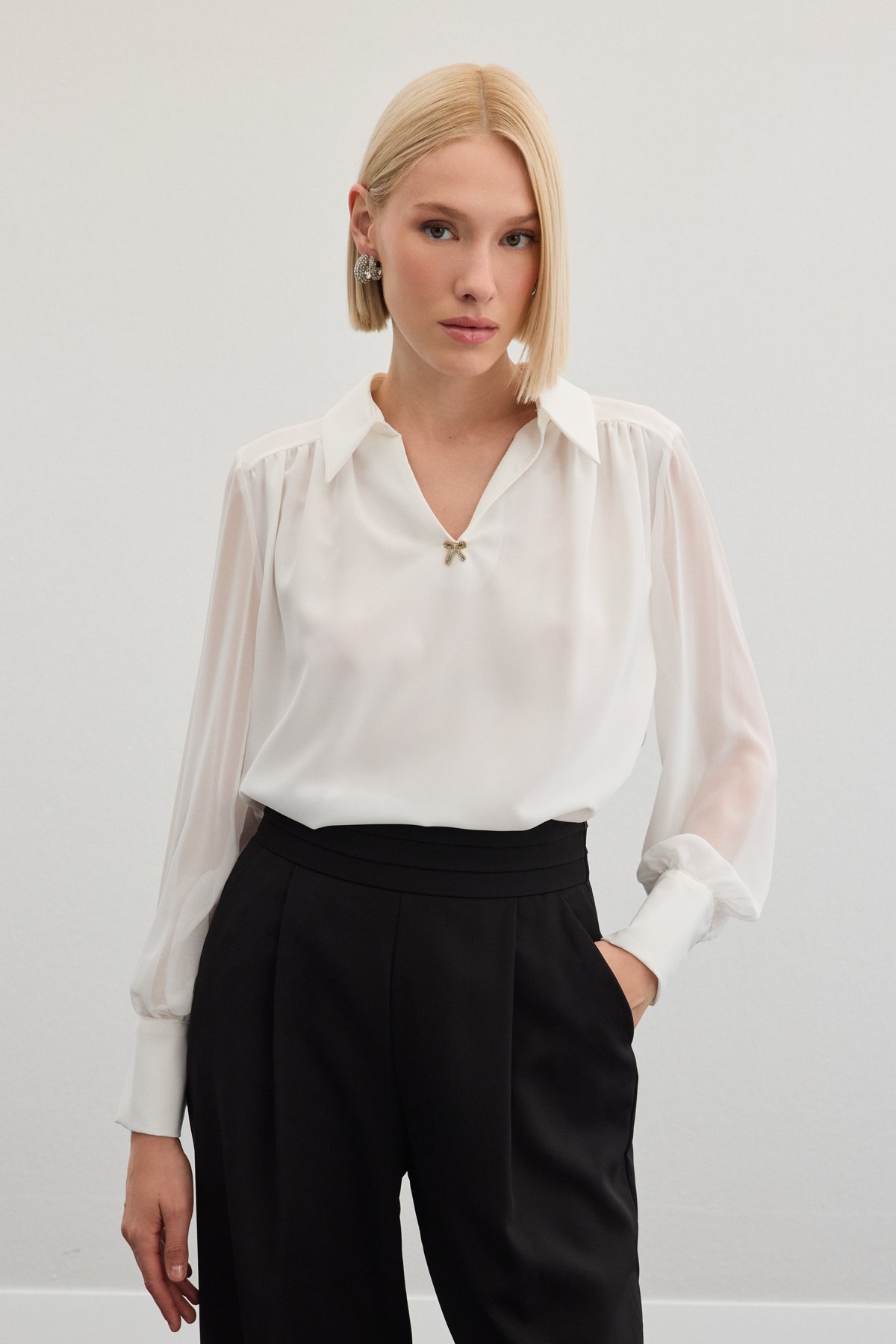 Aksesuarlı Salaş Bluz - Ekru (STN139KBL1880-EK)