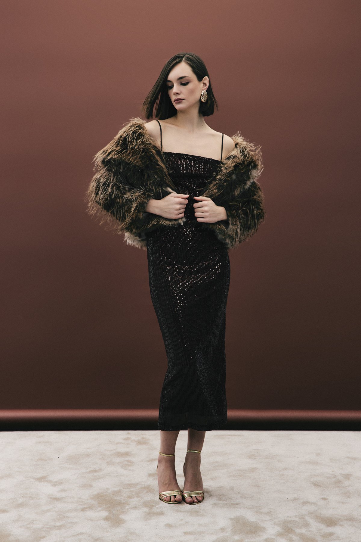 Askılı Uzun Payet Elbise - Kahve (STN139KEL1685-014)