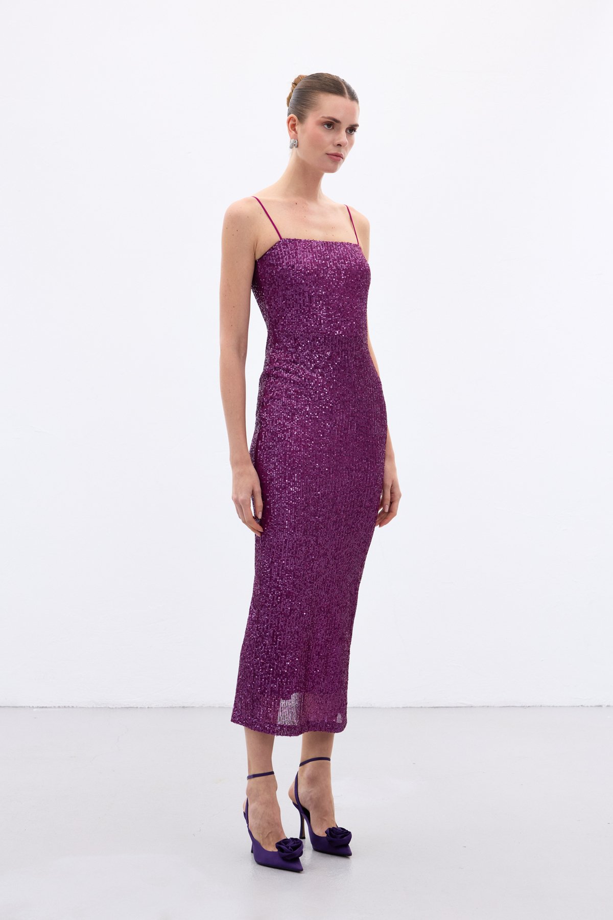 Askılı Uzun Payet Elbise - Mürdüm (STN139KEL1685-MU)