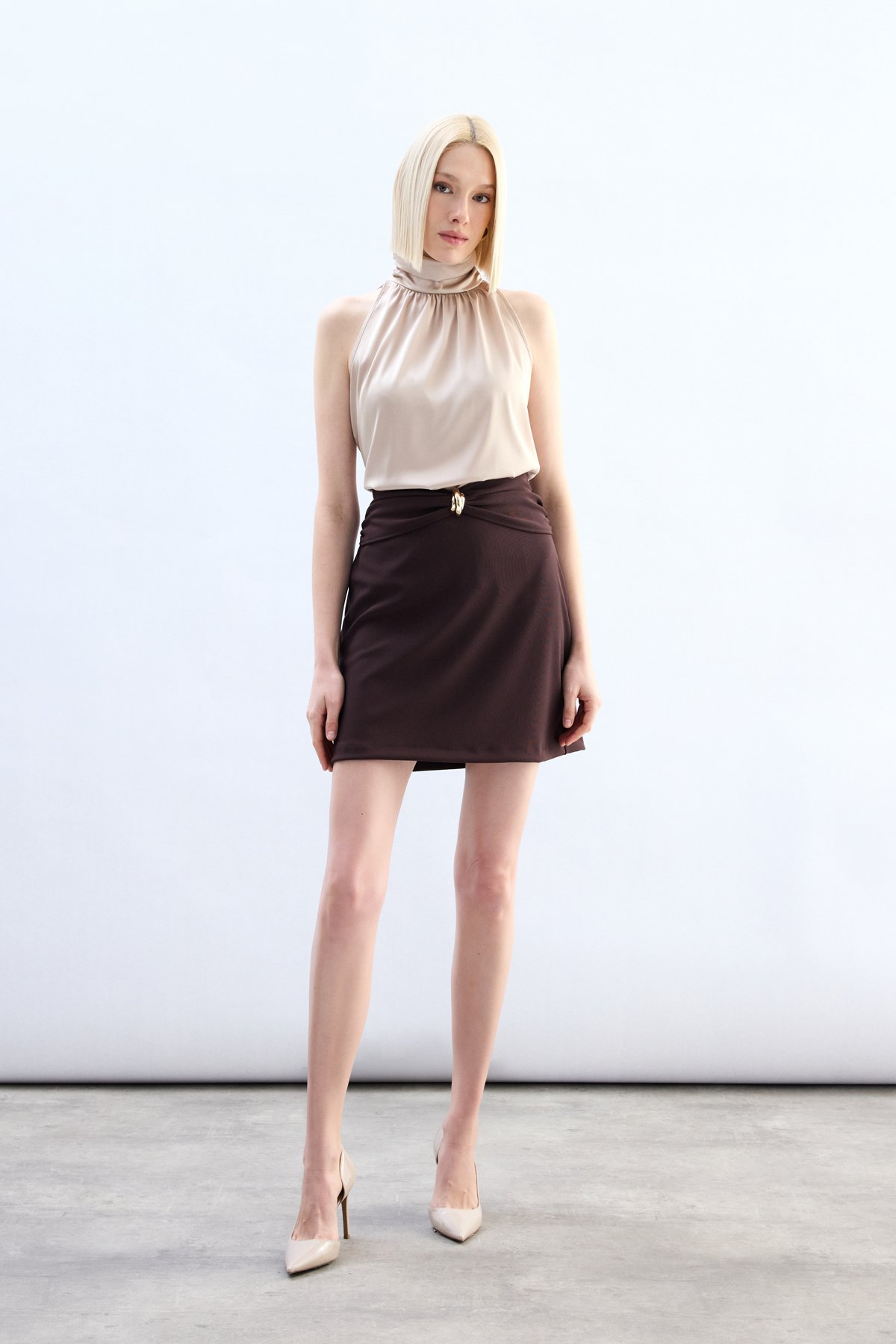 Bel Aksesuarlı Mini Etek - Kahve (STN139KET1992-014)