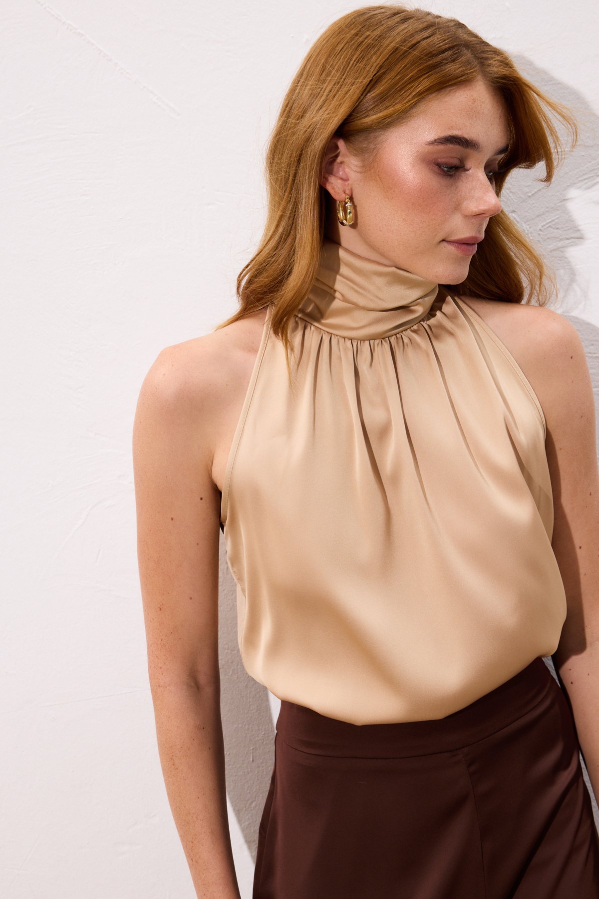 Boğazlı Kolsuz Bluz - Camel (STN139KBL1148-CAM)
