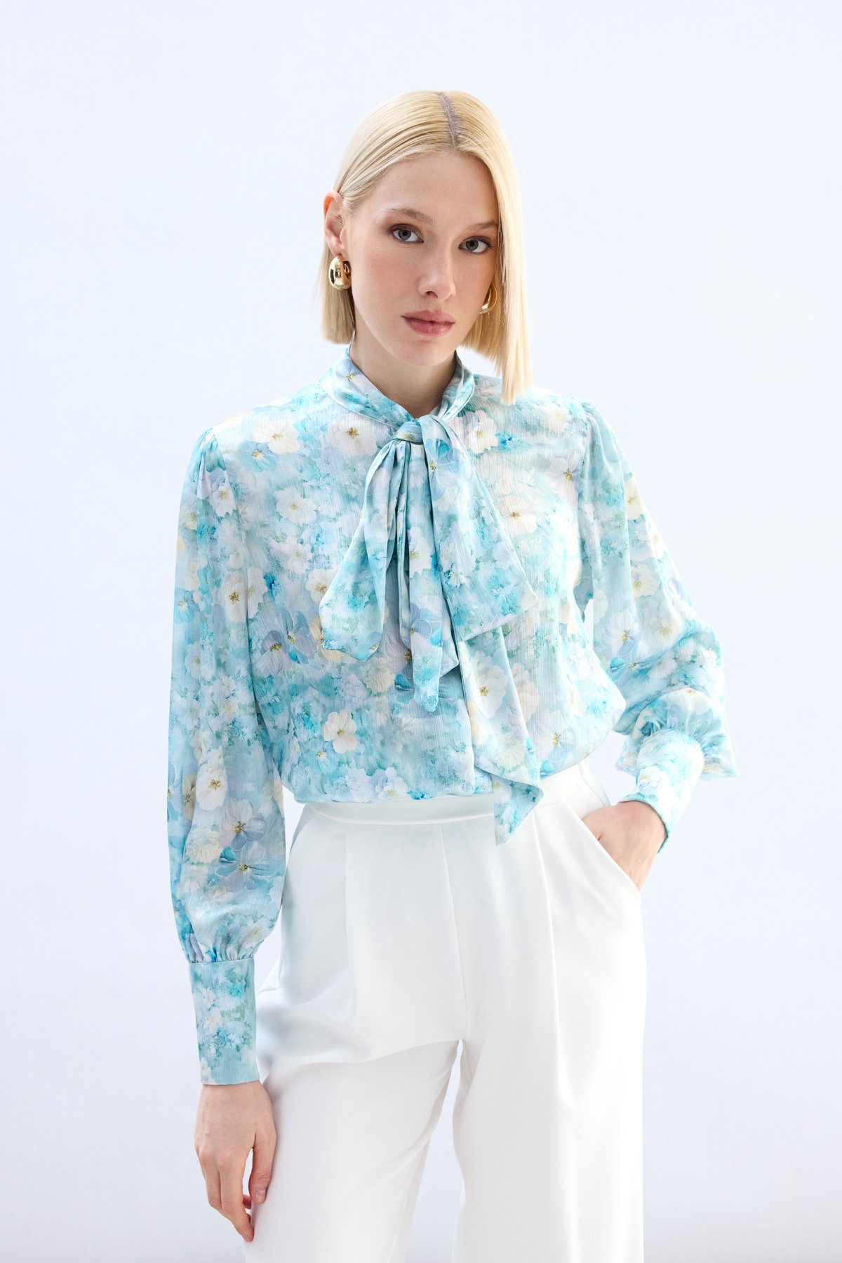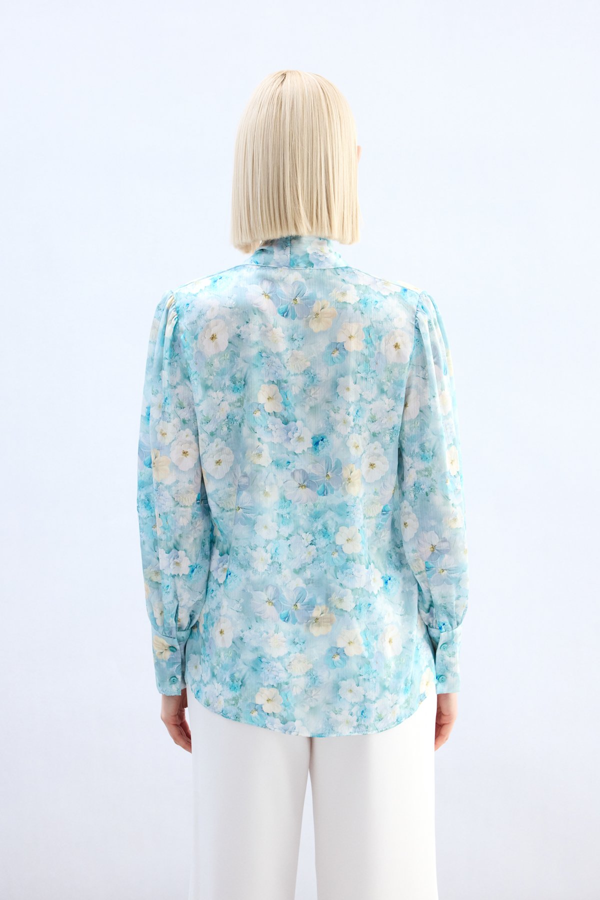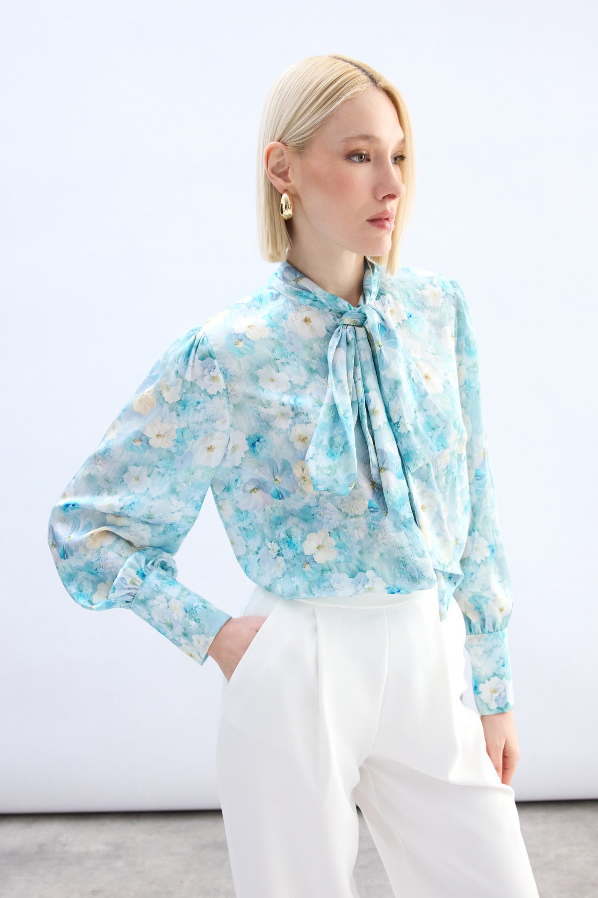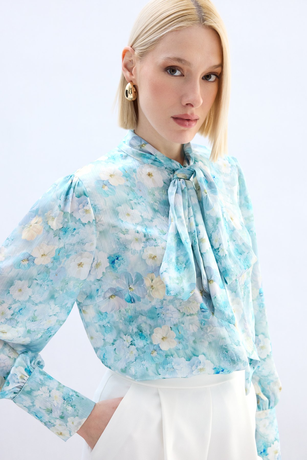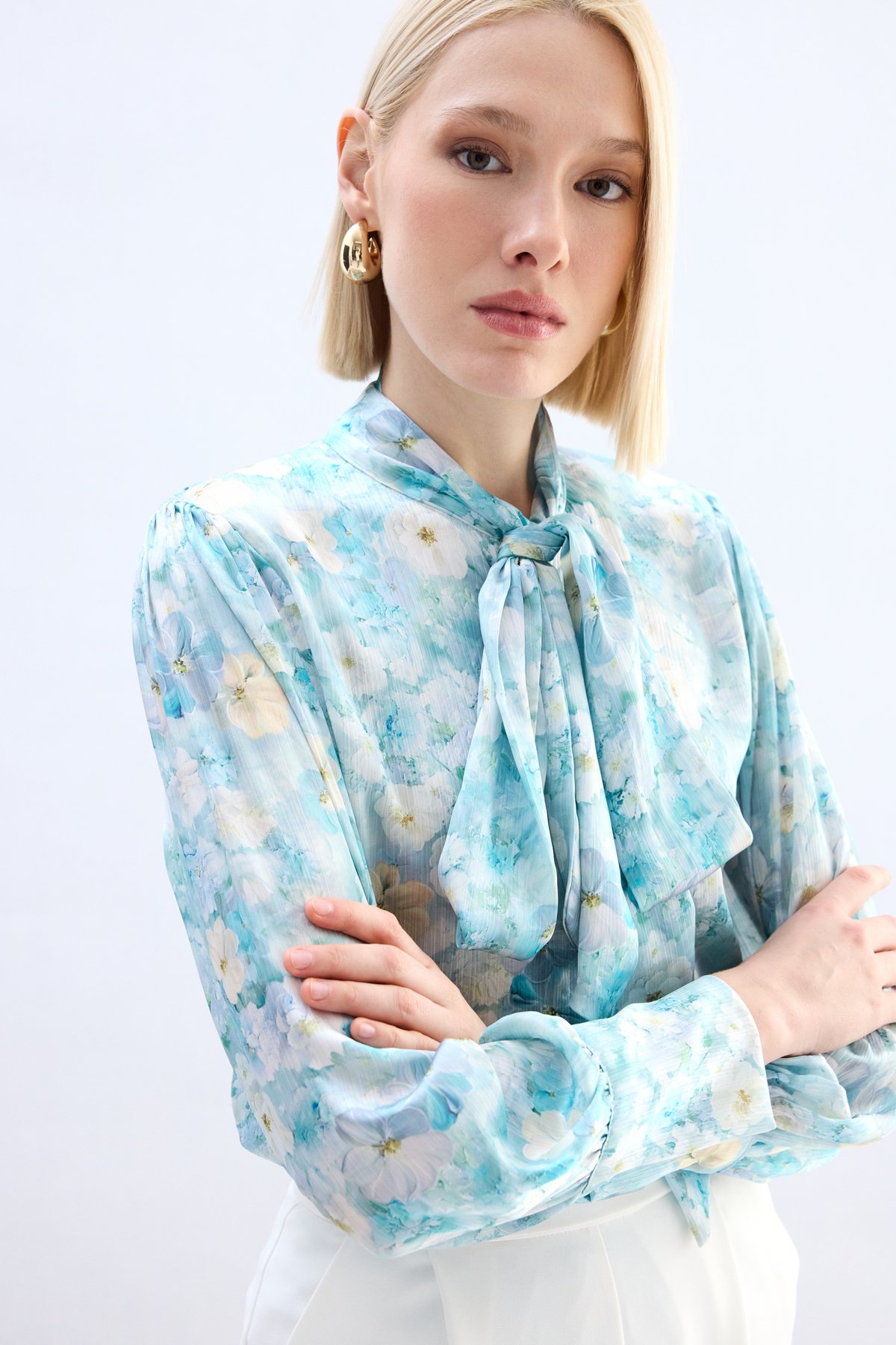 Çiçek Desenli Fularlı Gömlek - Mint (STN139KGO1934-MI)