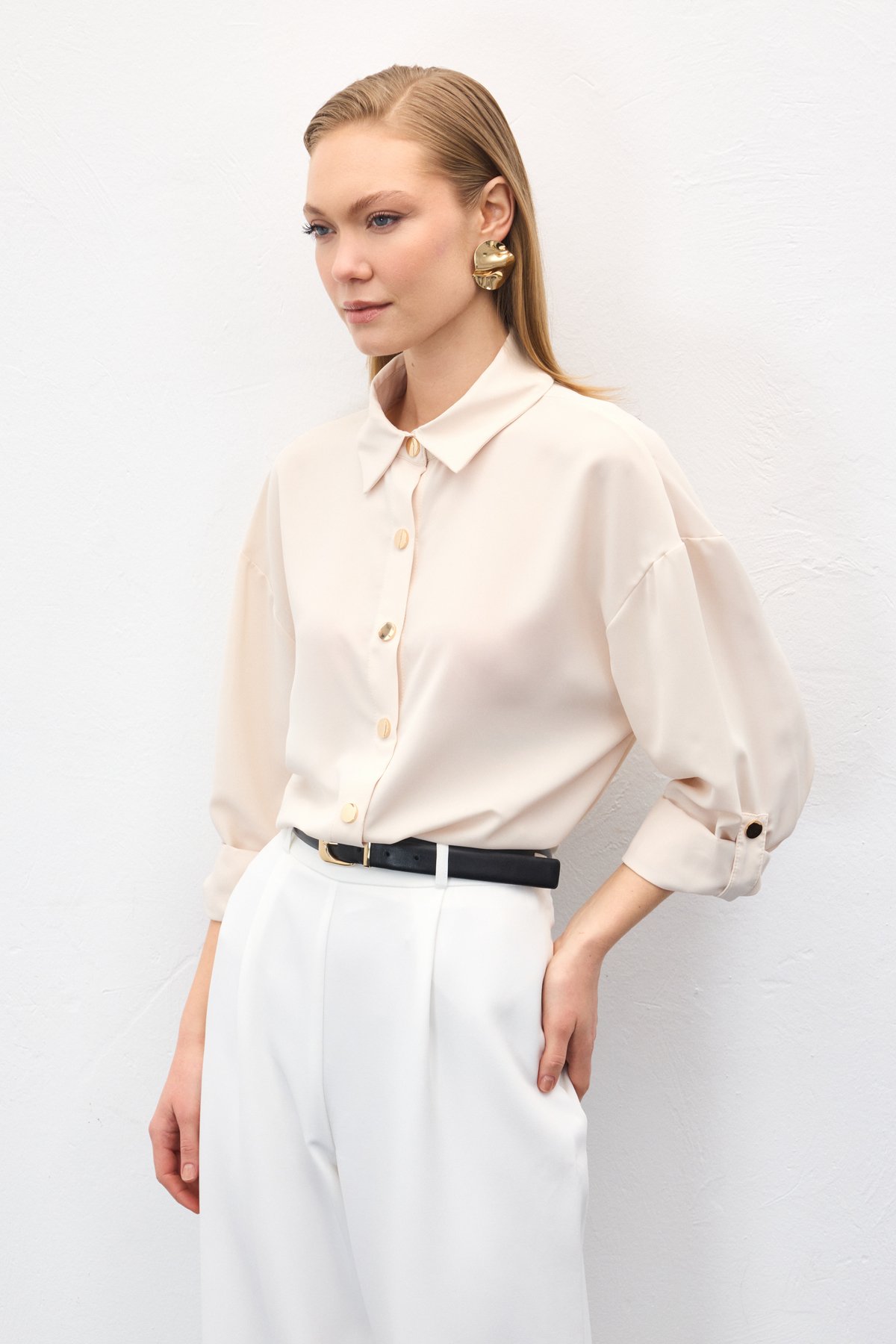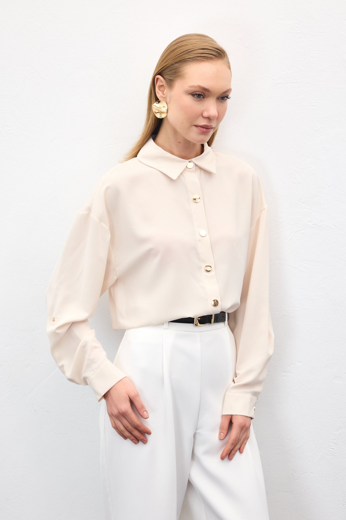 Çıtçıt Detaylı Gömlek - Bej (STN139KGO1961-BEJ)