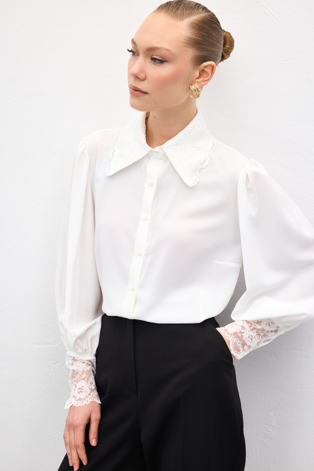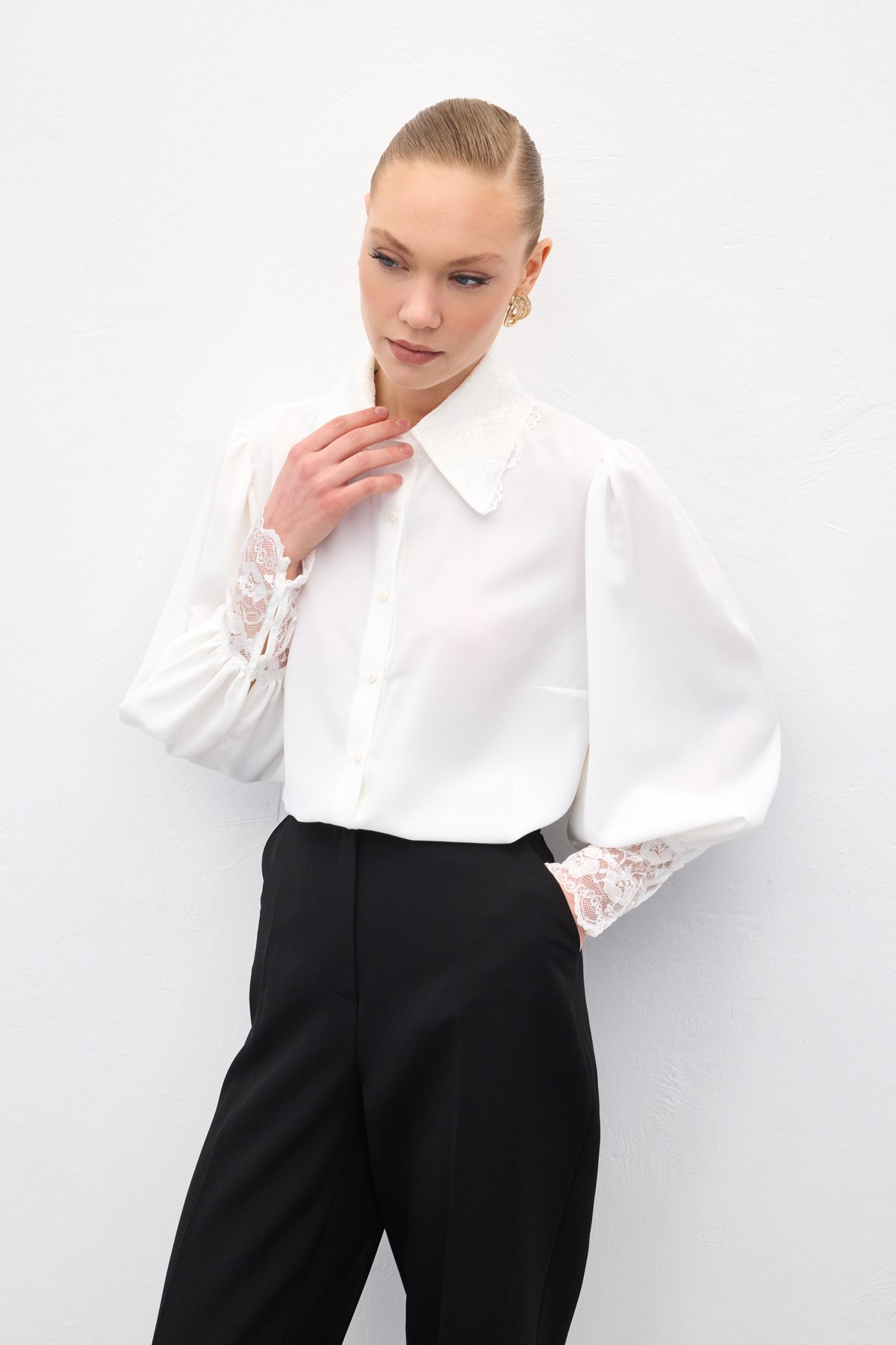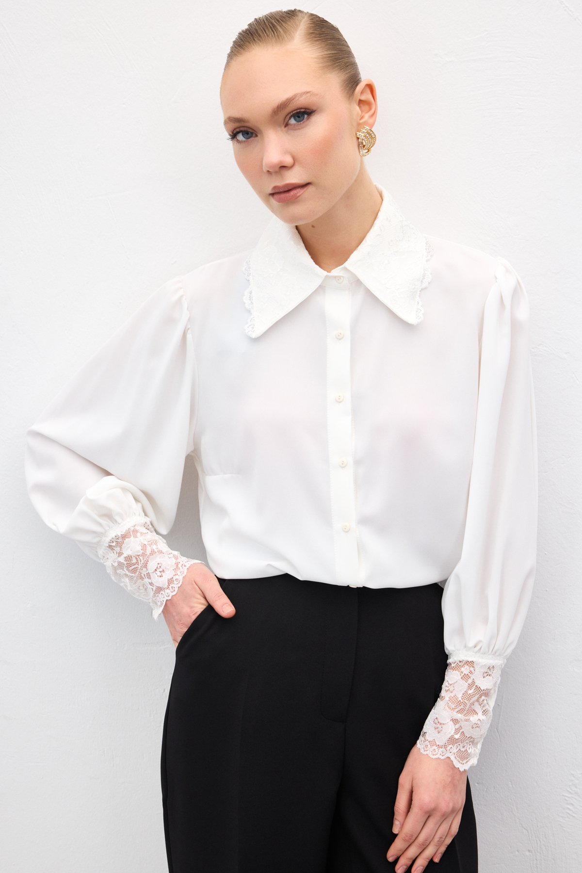 Dantel Manşetli Gömlek - Ekru (STN139KGO2117-EK)