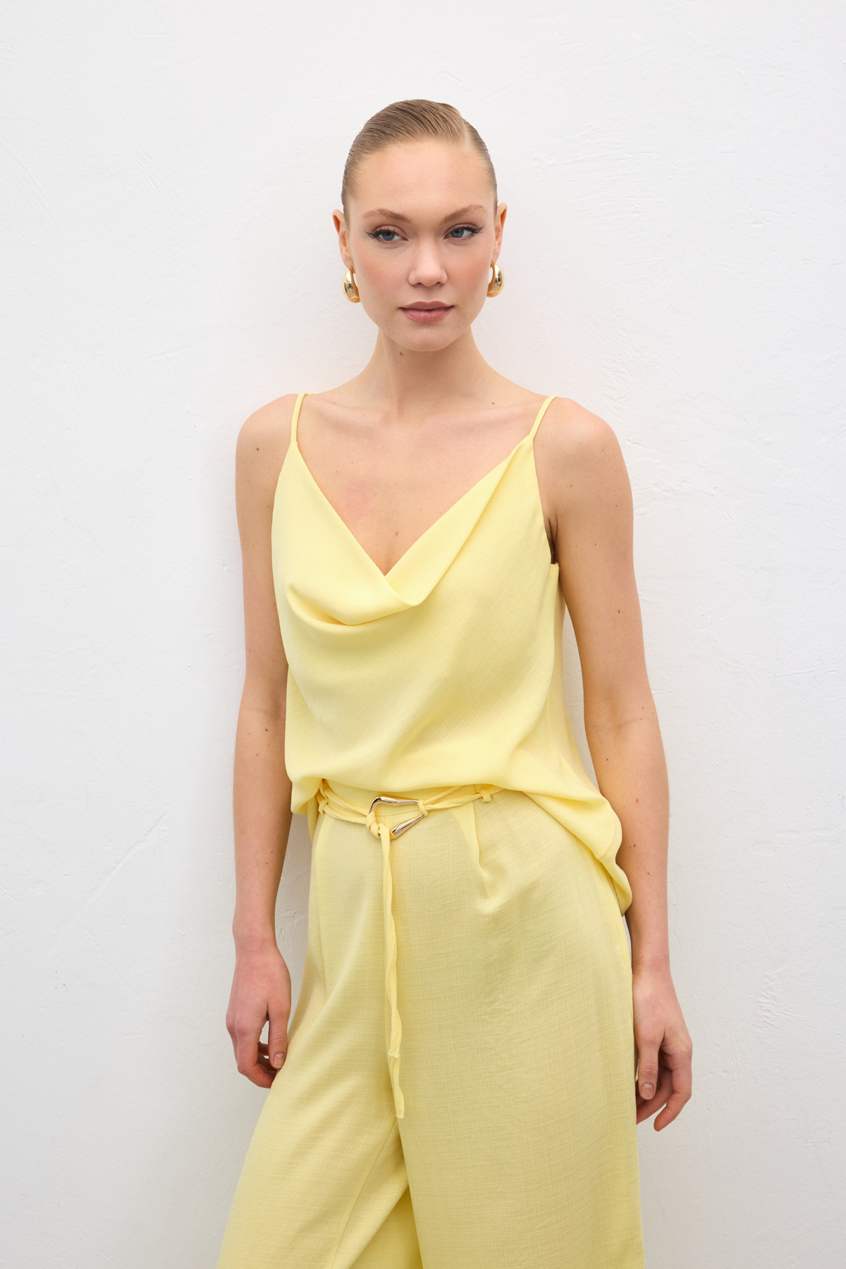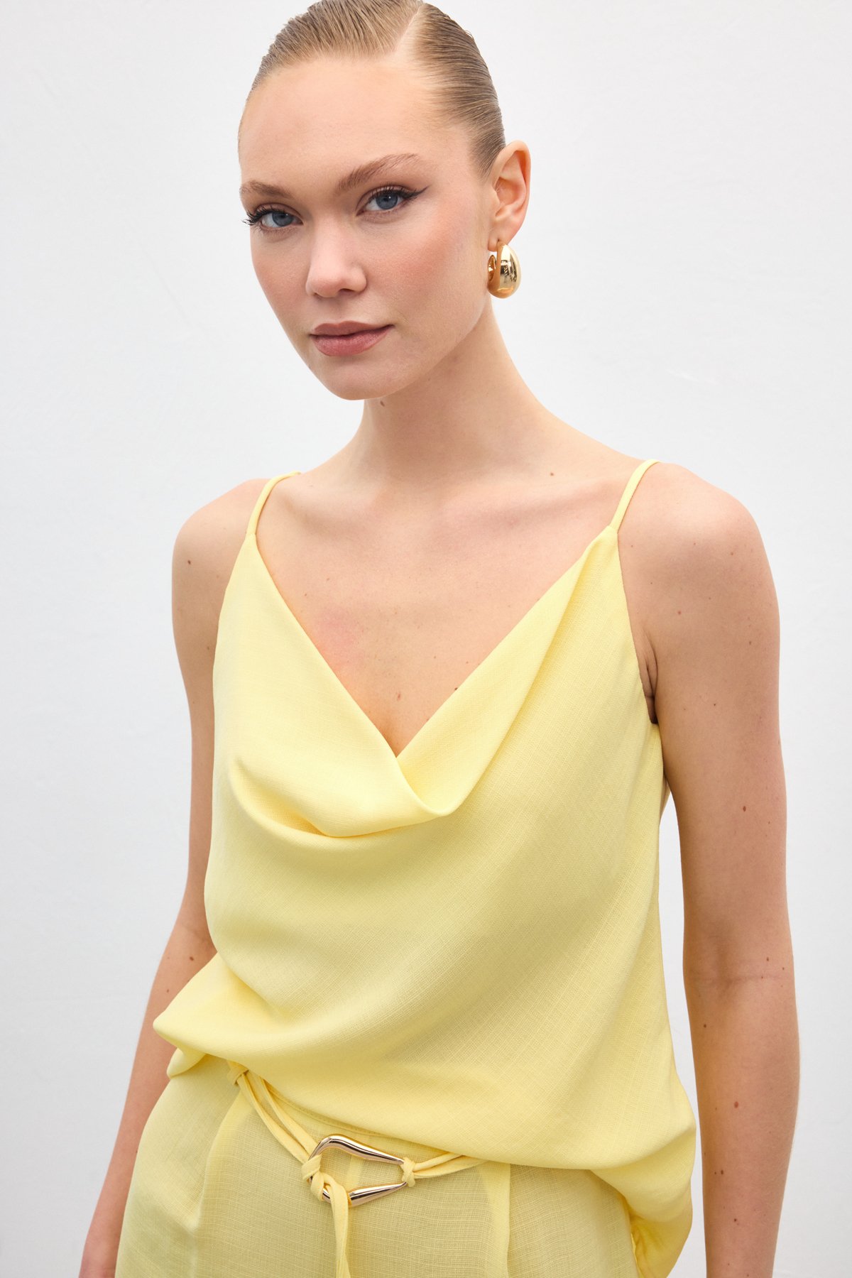 Degaje Yaka Dökümlü Bluz - Sarı (STN139KBL1797-SAR)