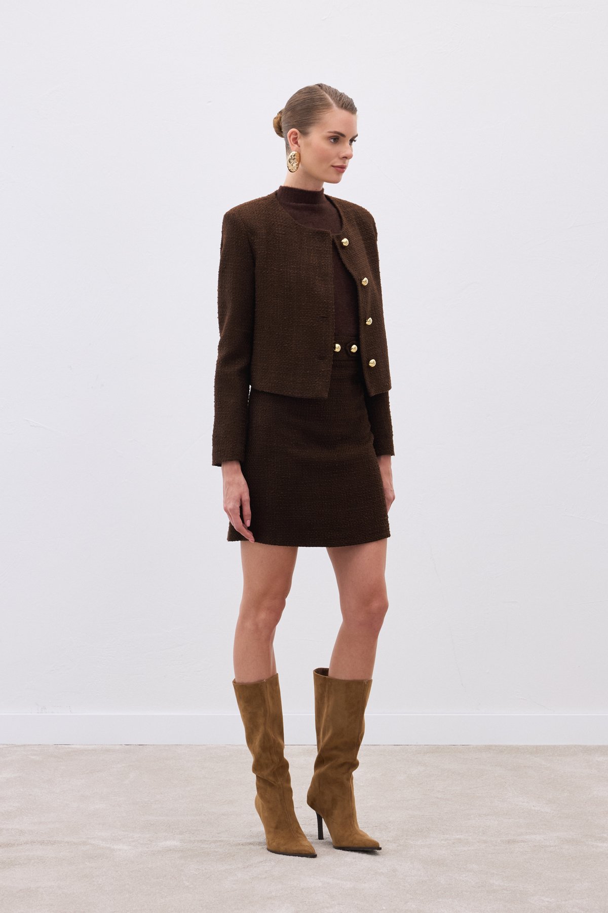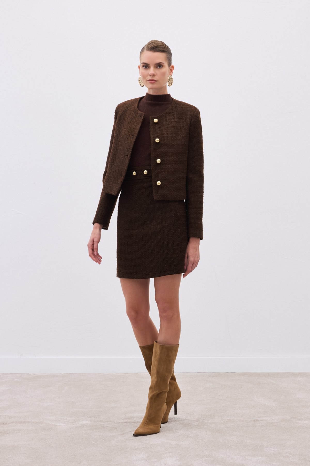 Düğme Detaylı Mini Tüvit Etek - Kahve (STN139KET1895-014)