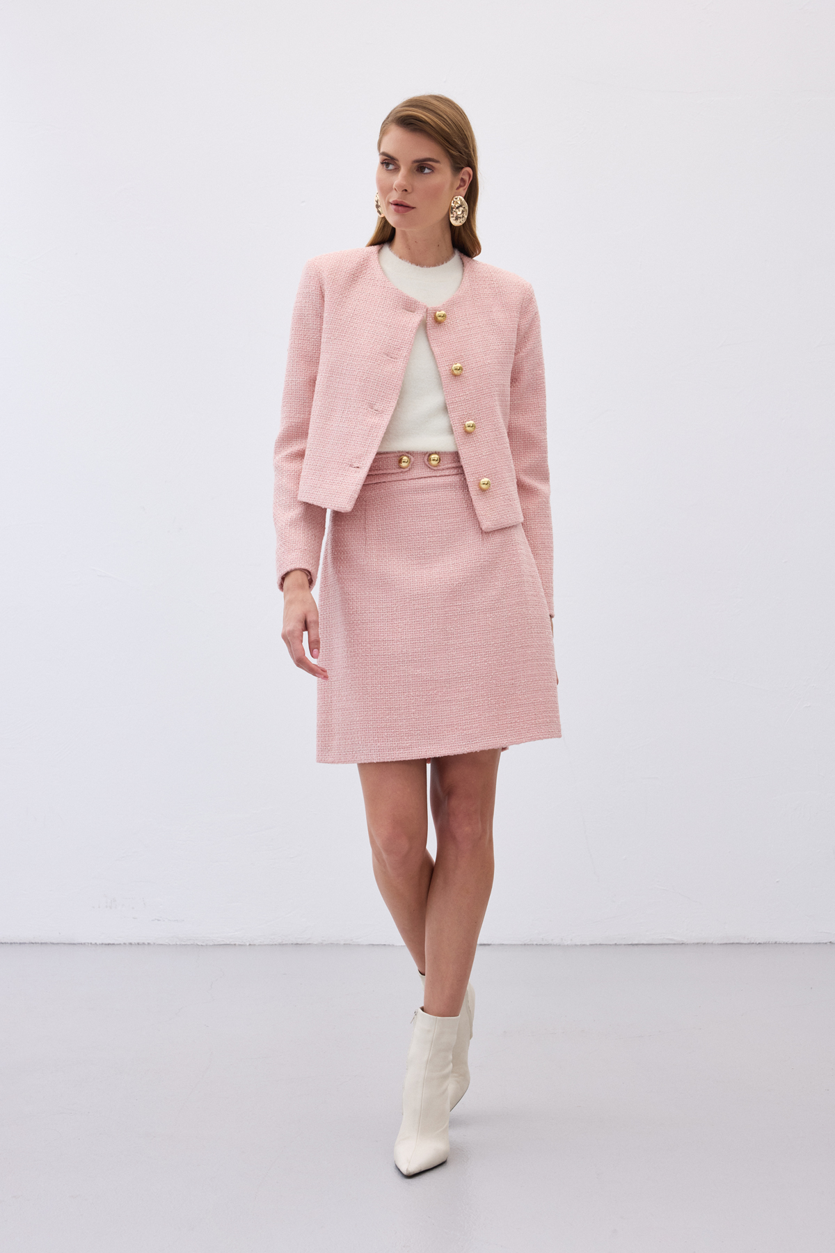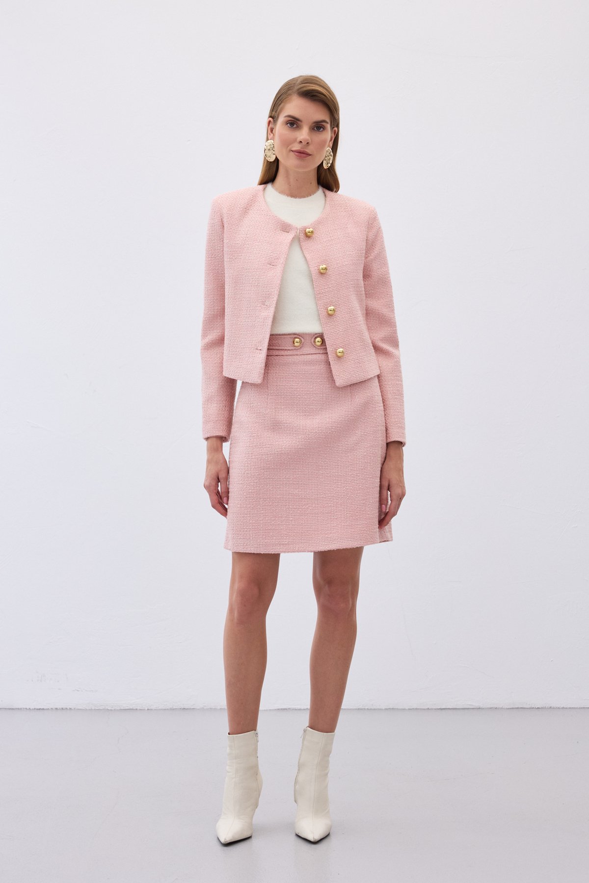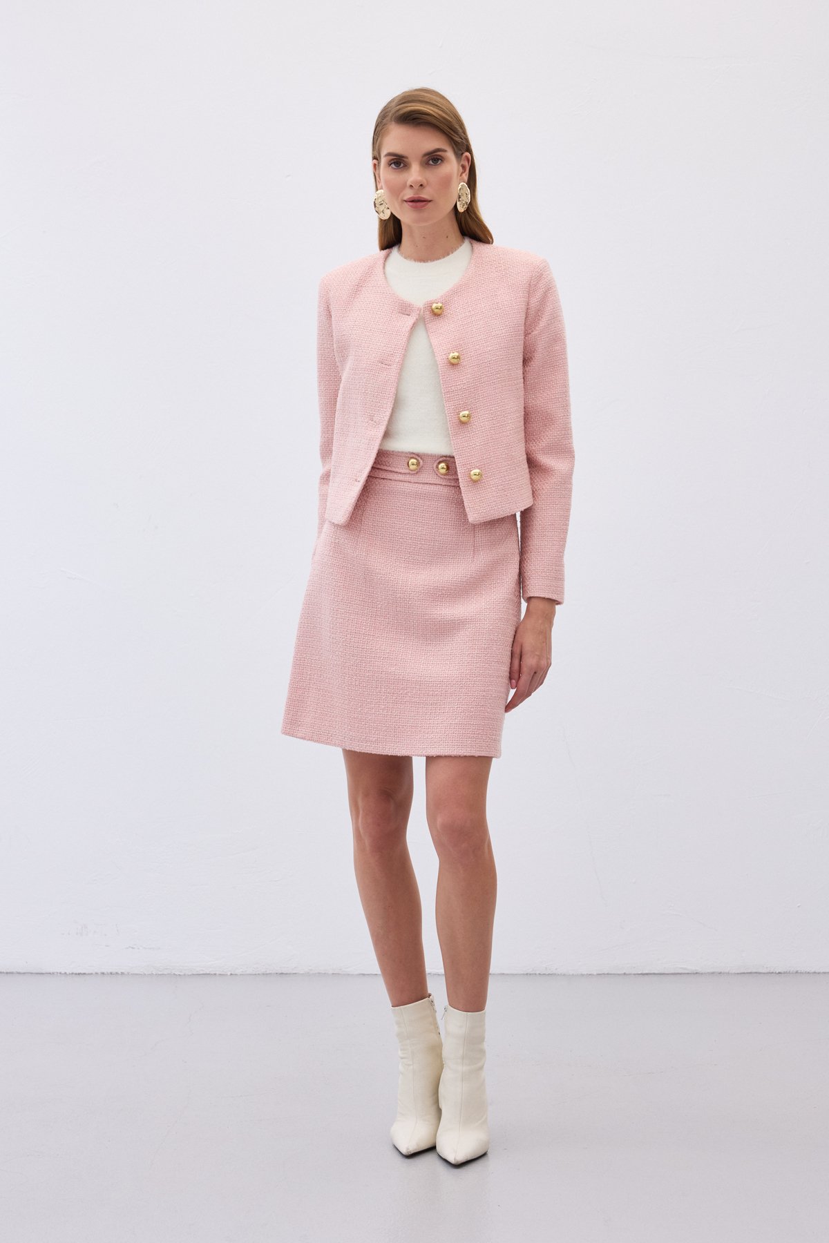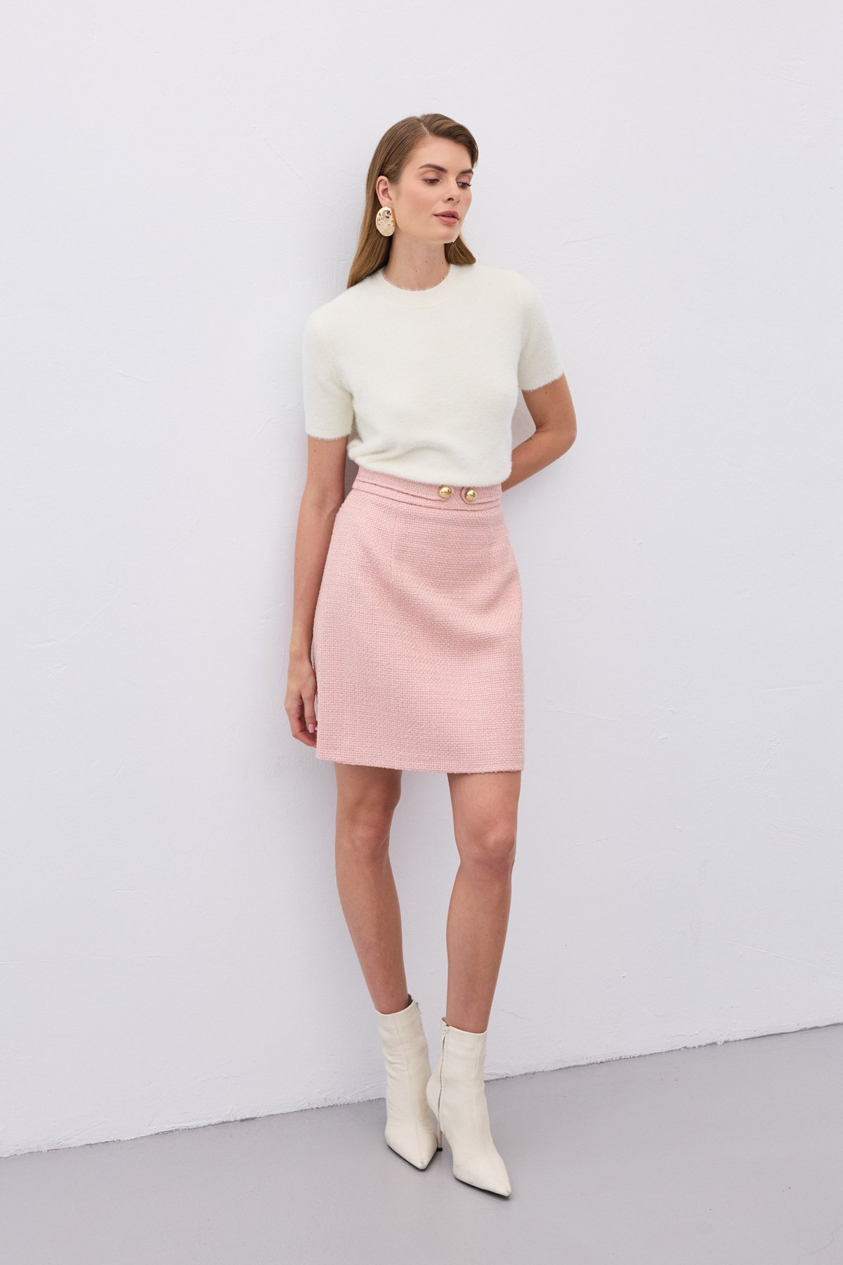 Düğme Detaylı Mini Tüvit Etek - Pudra (STN139KET1895-P)