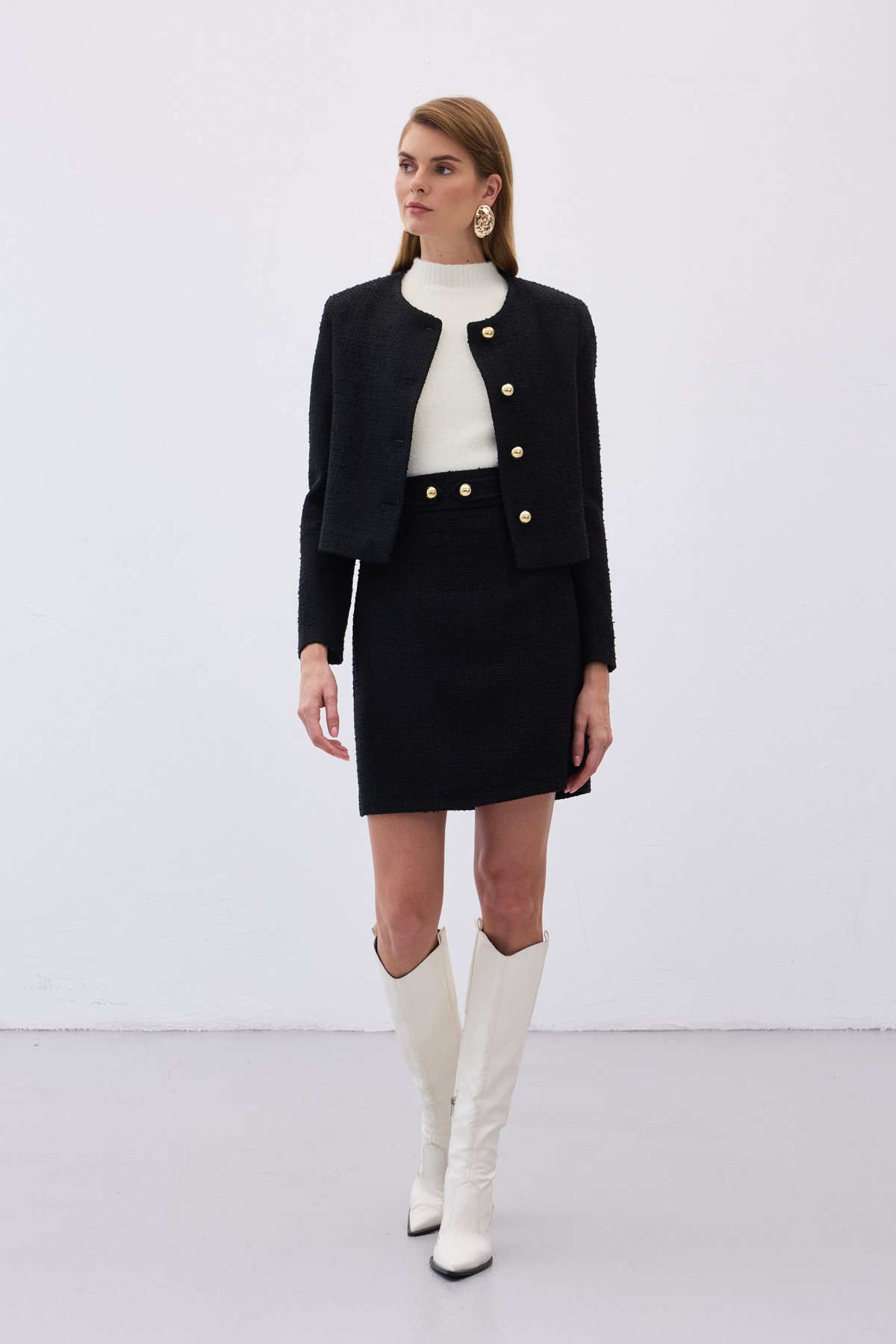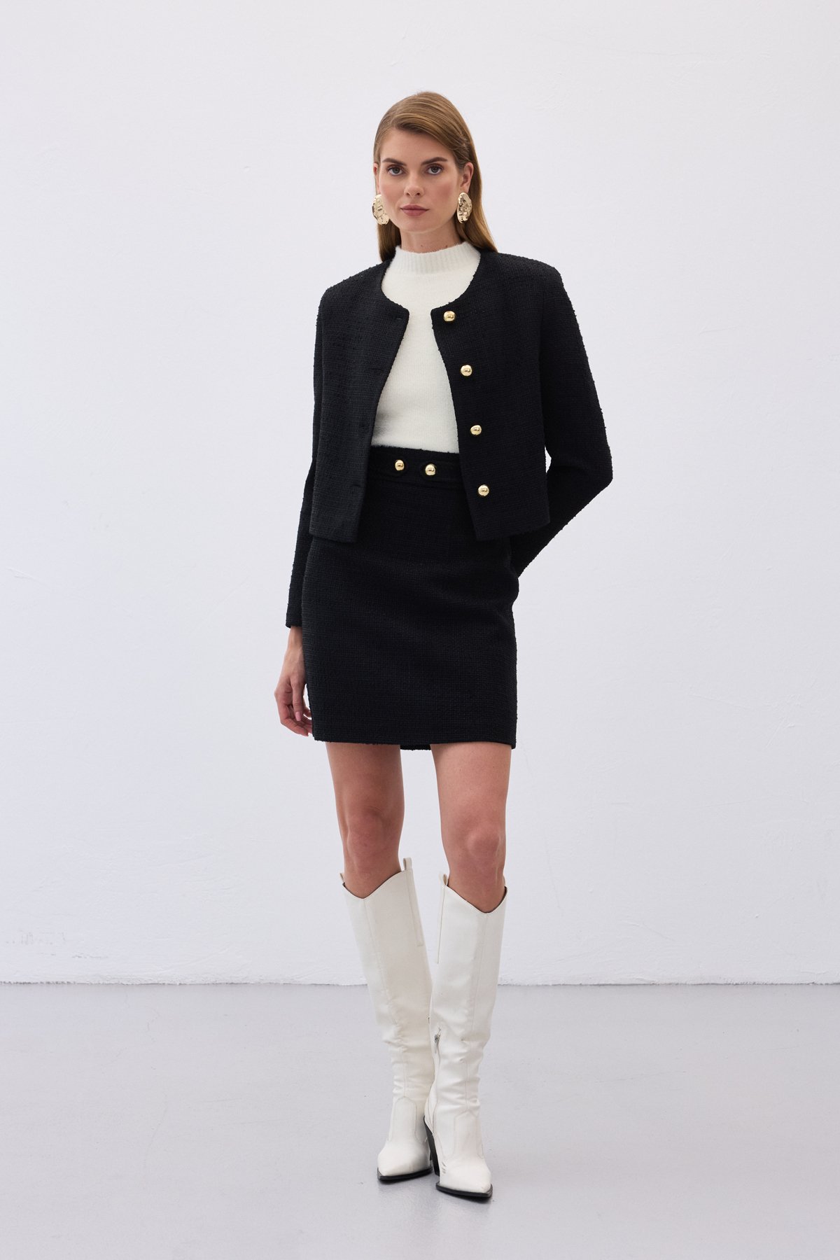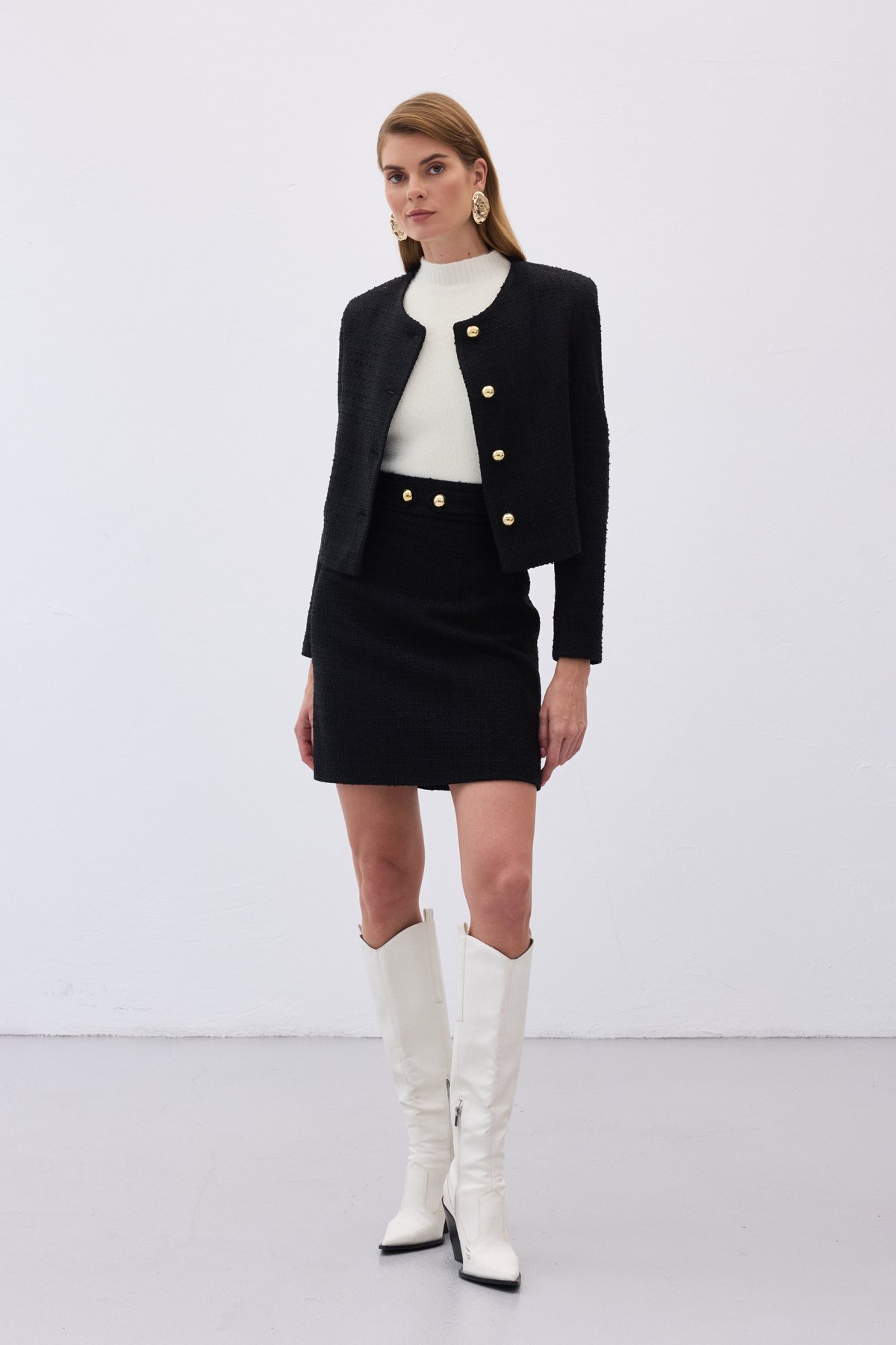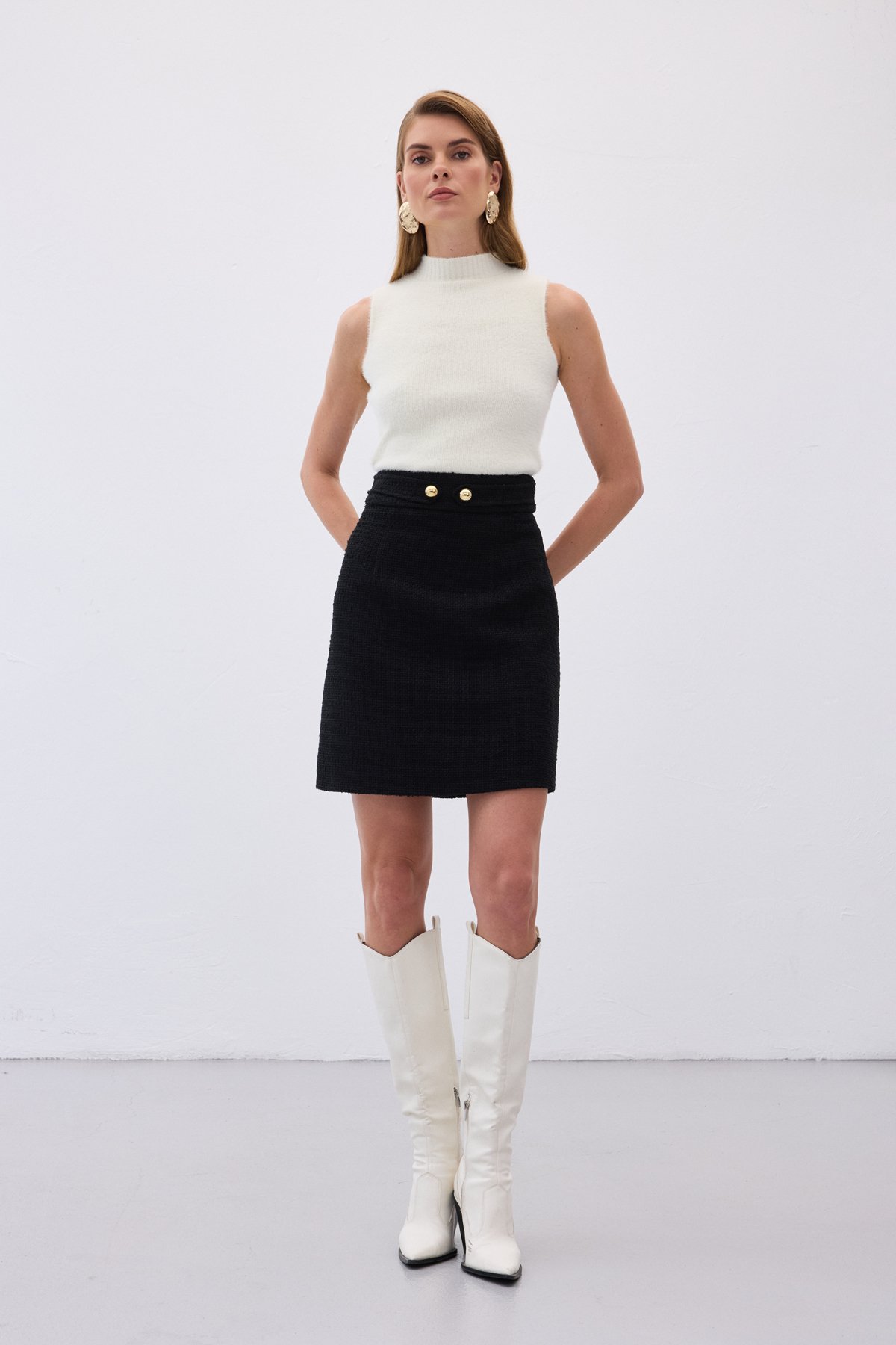 Düğme Detaylı Mini Tüvit Etek - Siyah (STN139KET1895-5)
