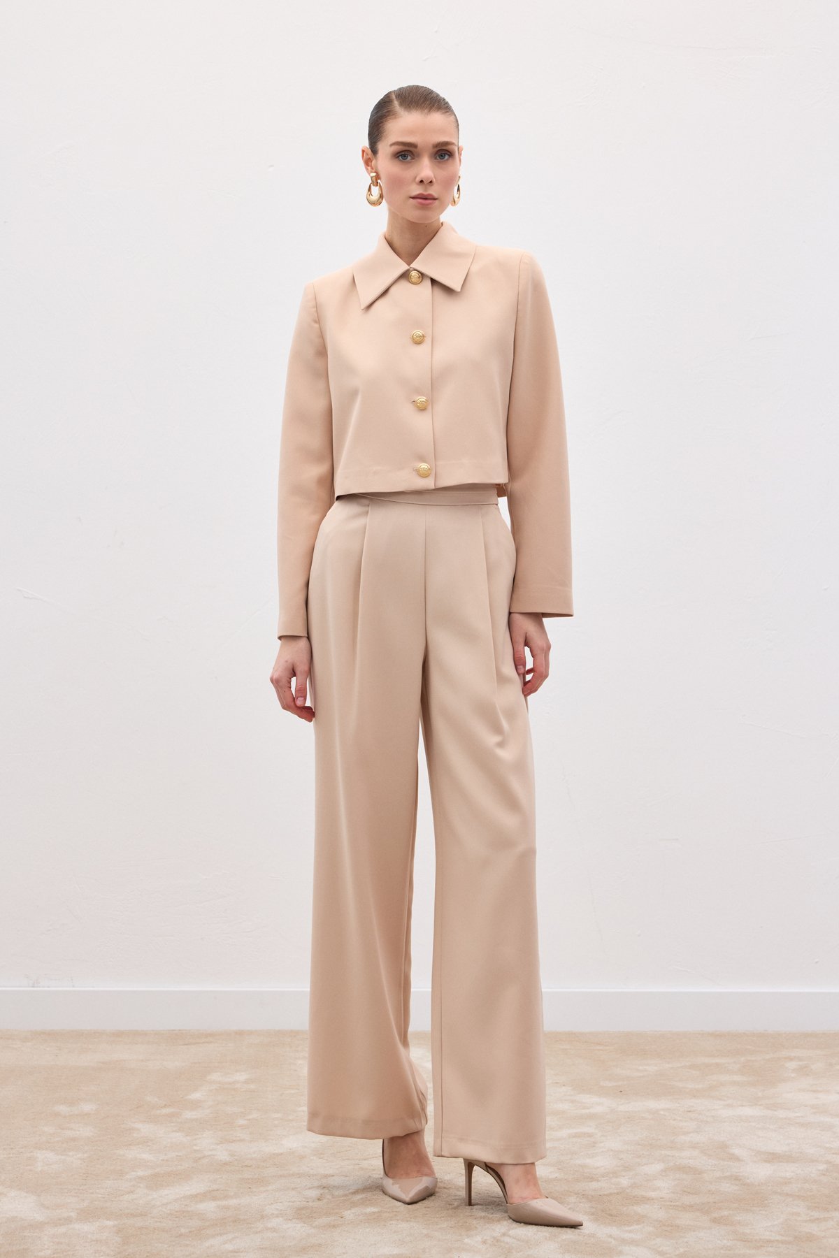 Düğmeli Kısa Ceket - Bej (STN139KCE1913-BEJ)