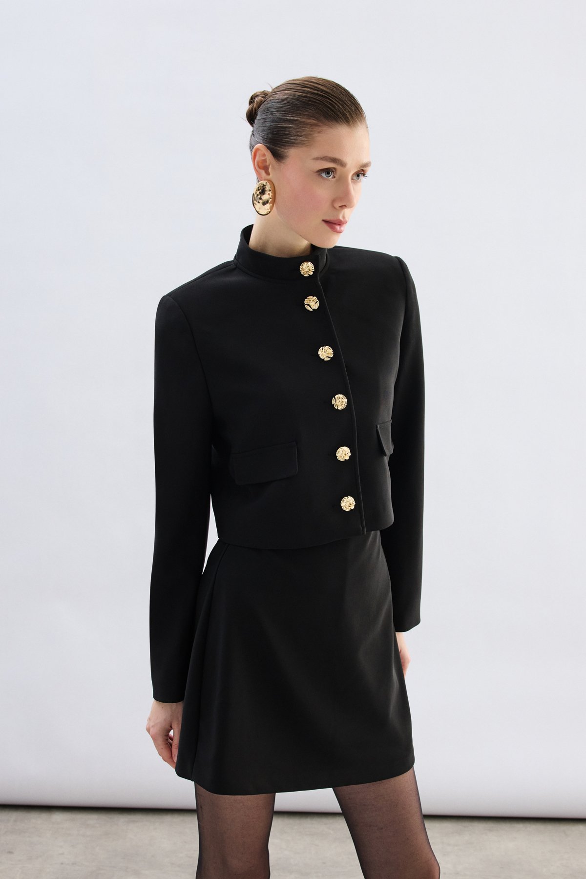 Düğmeli Kısa Ceket - Siyah (STN139KCE1949-5)
