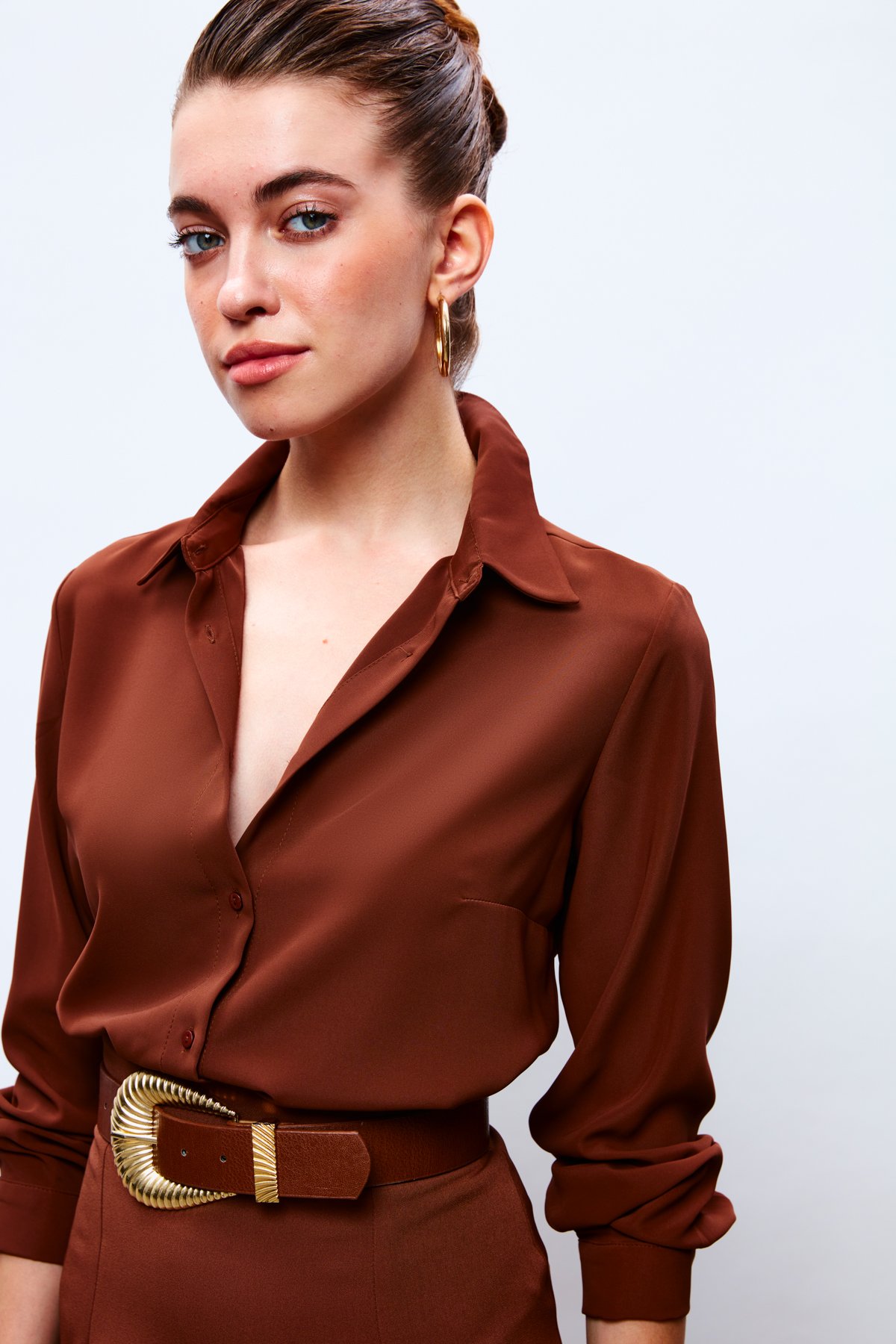 Düz Klasik Gömlek - KAHVE (20KGO139K268-014)