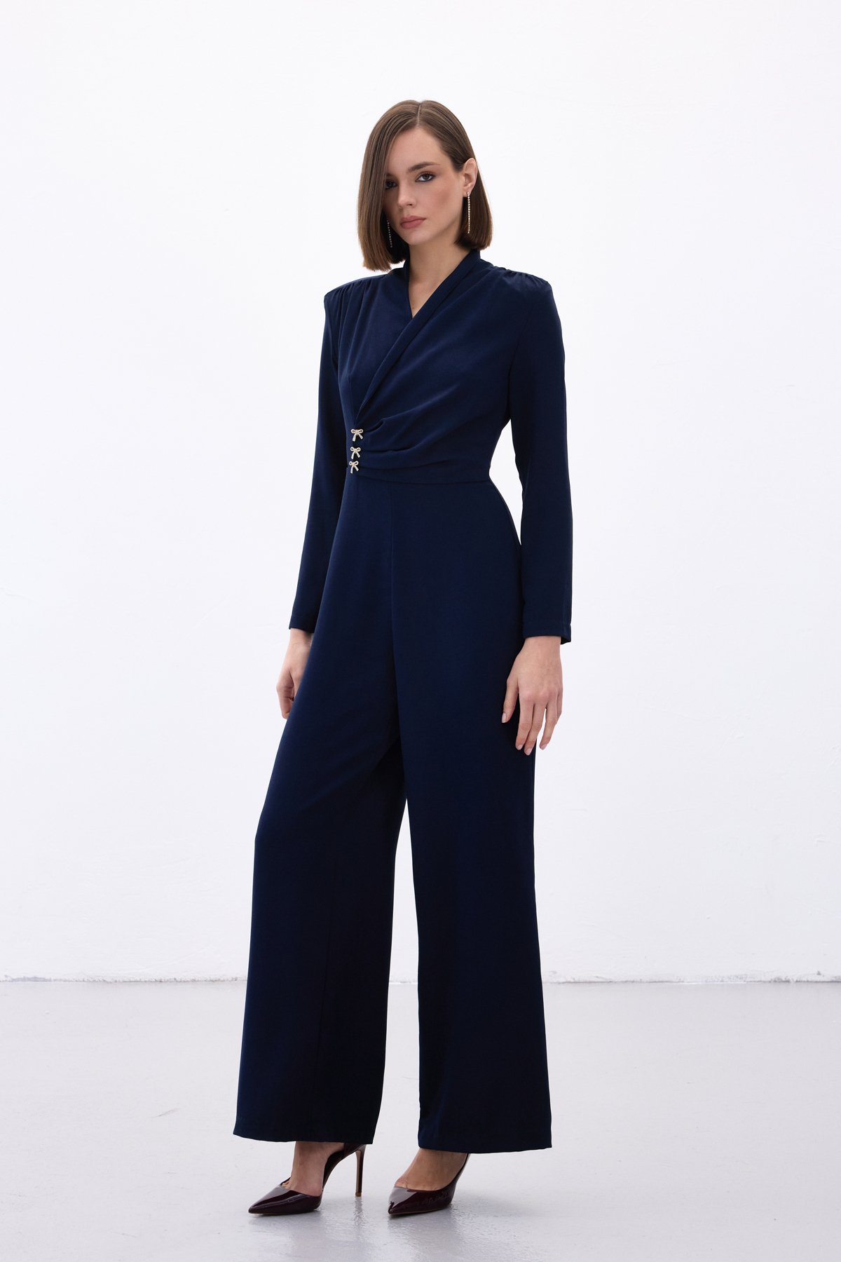 Fiyonk Aksesuarlı Krep Tulum - Lacivert (STN139KTU1738-LAC)