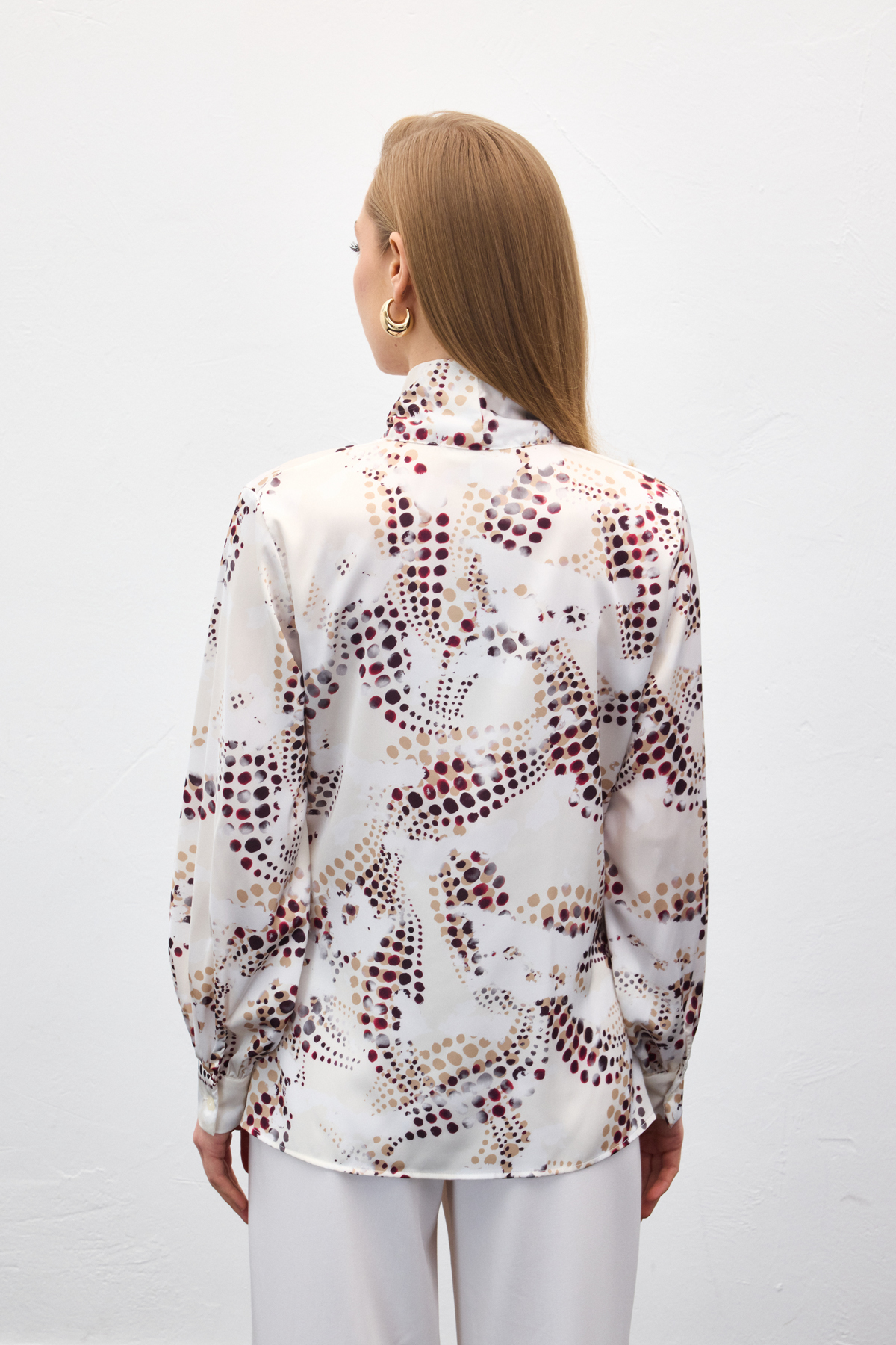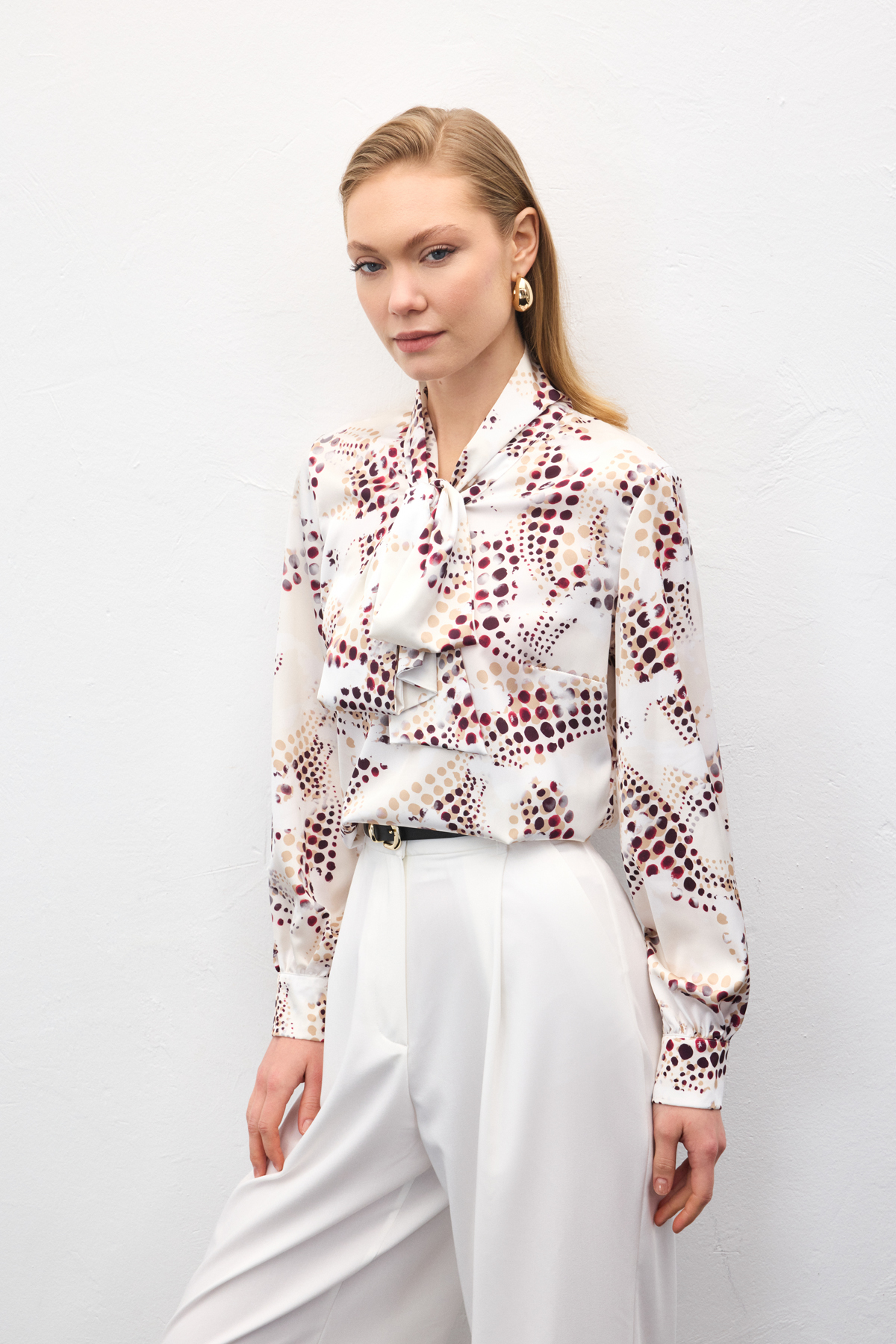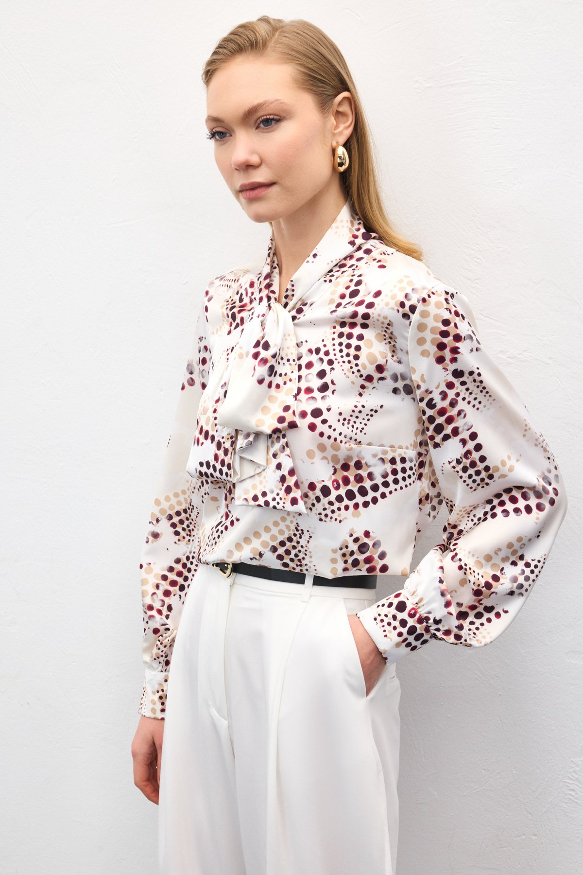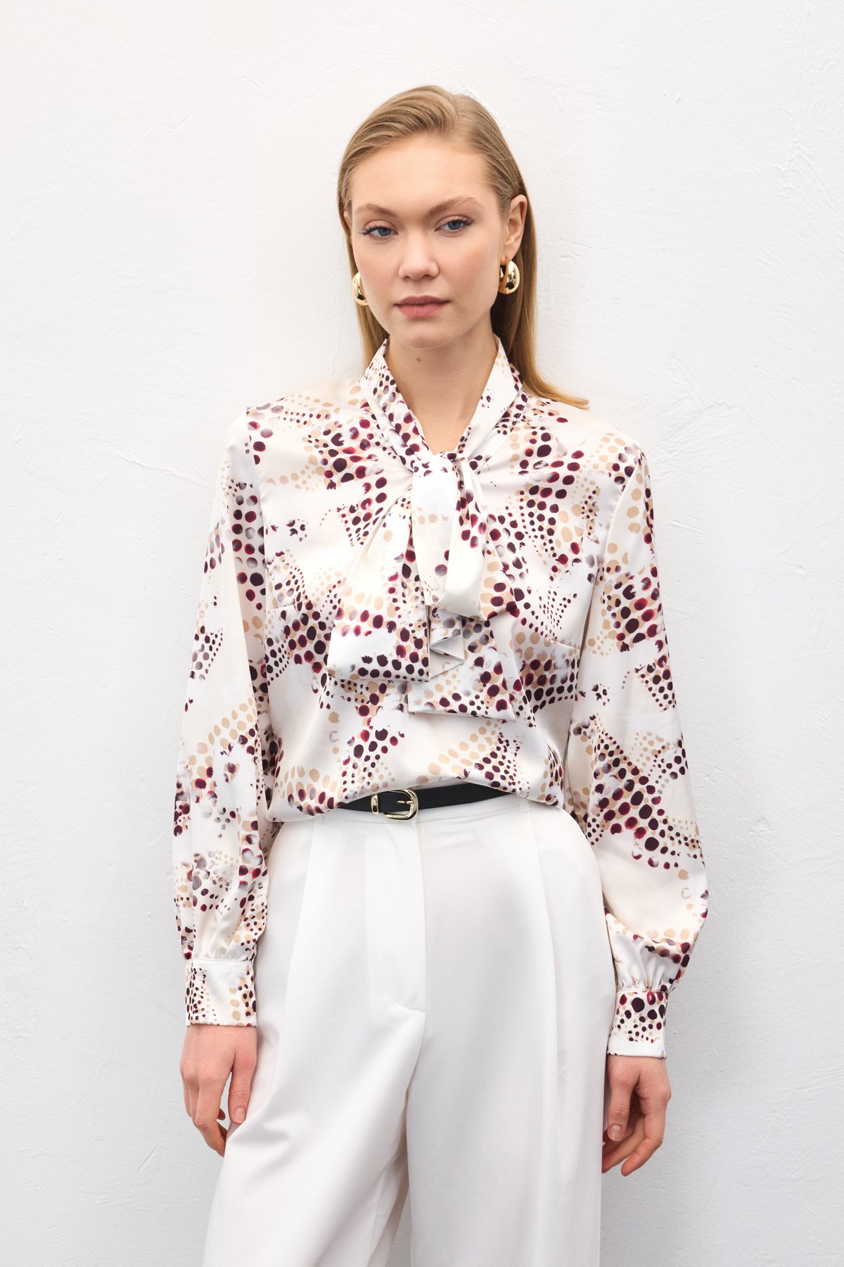 Fular Detaylı Desenli Bluz - Ekru (STN139KBL2129-EK)