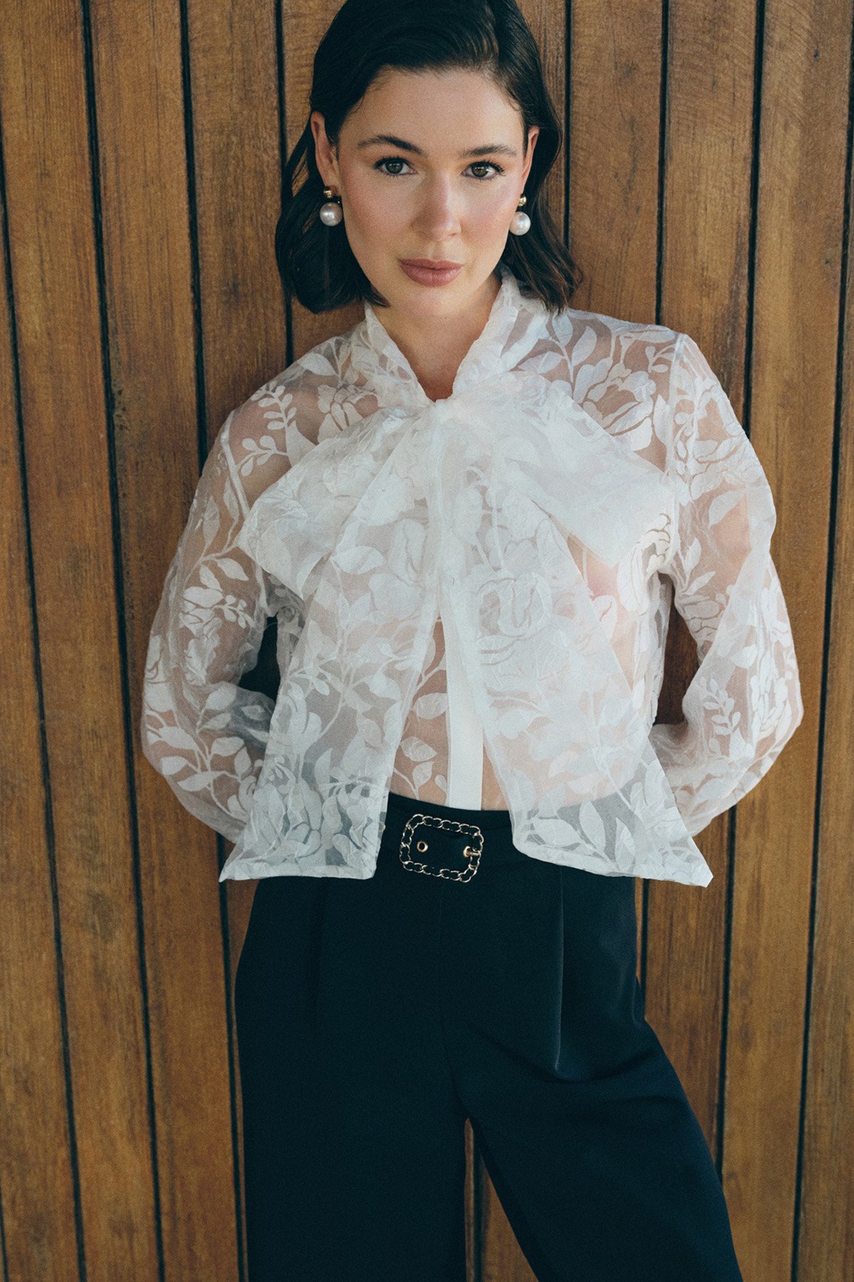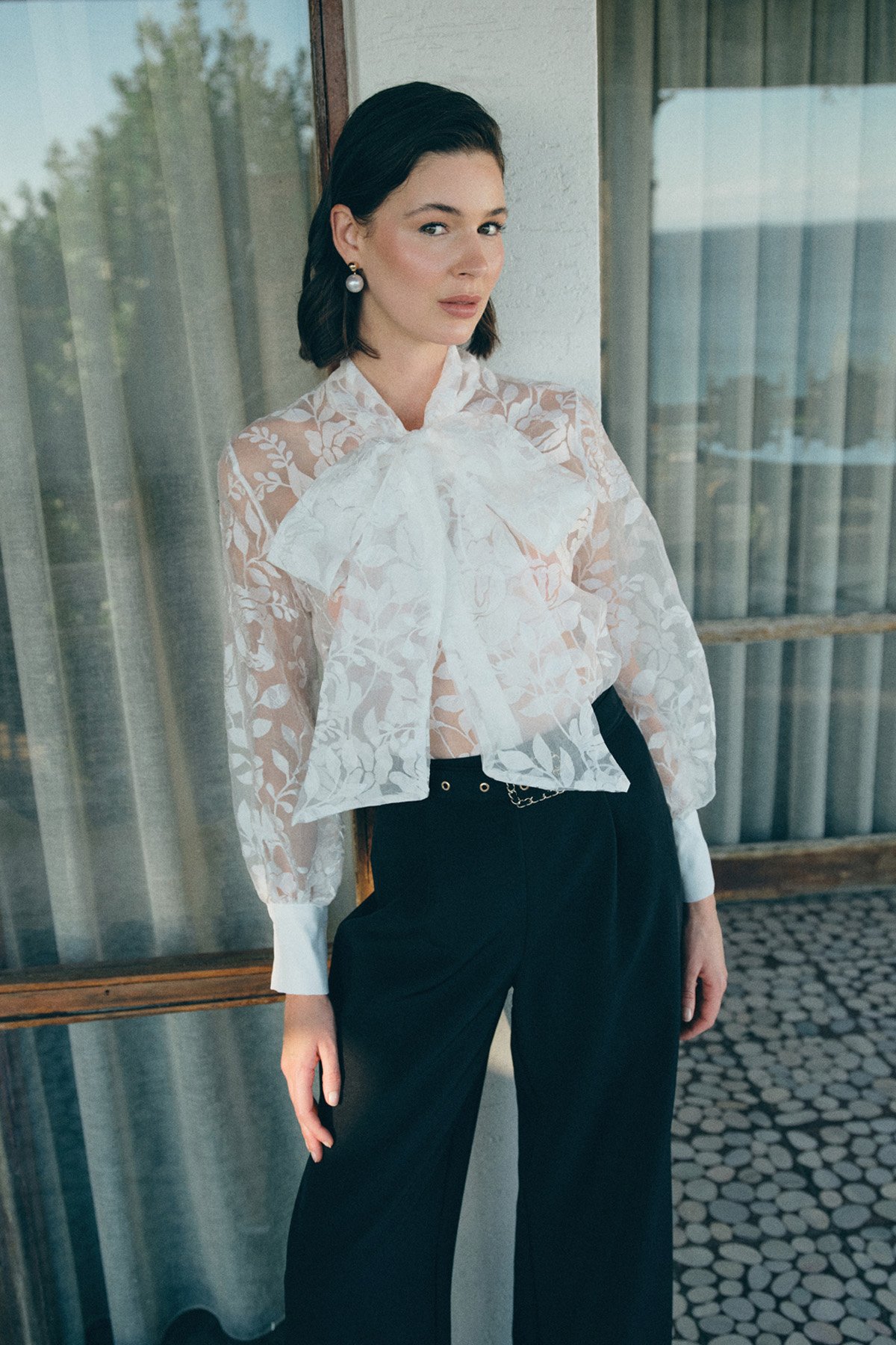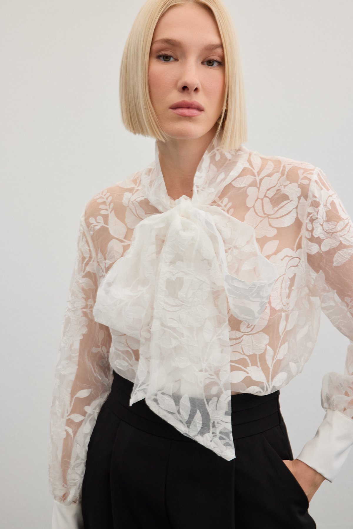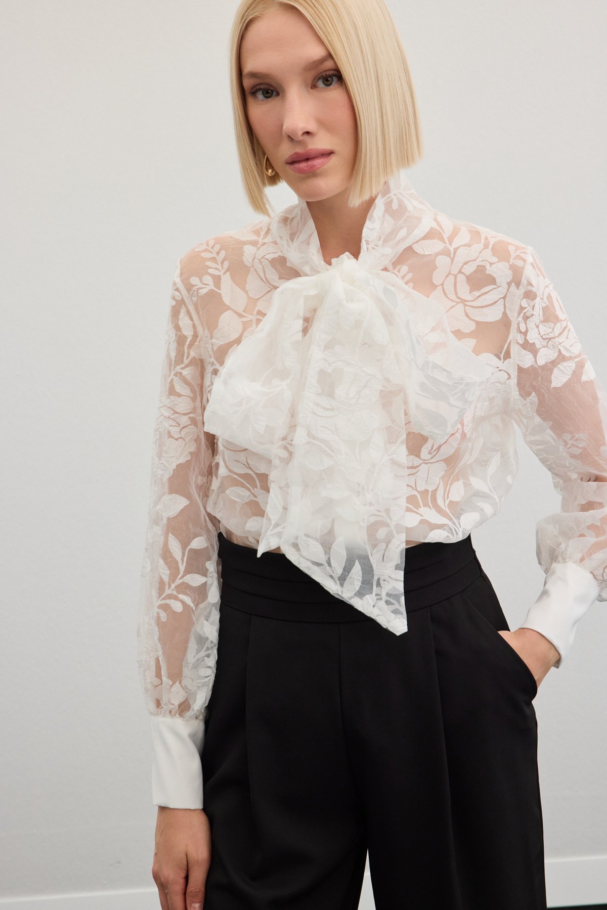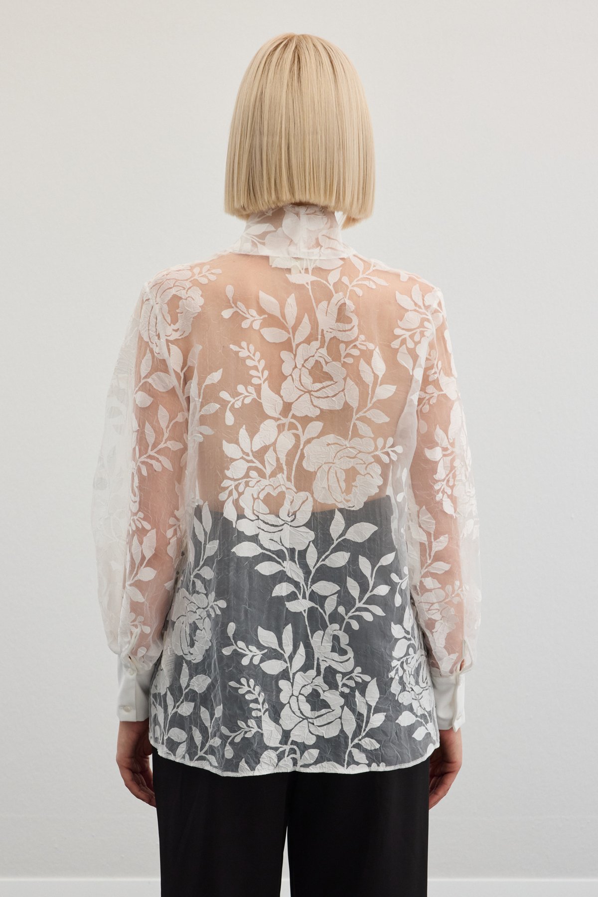 Fularlı Çiçek Desenli Gömlek - Ekru (STN139KGO1776-EK)