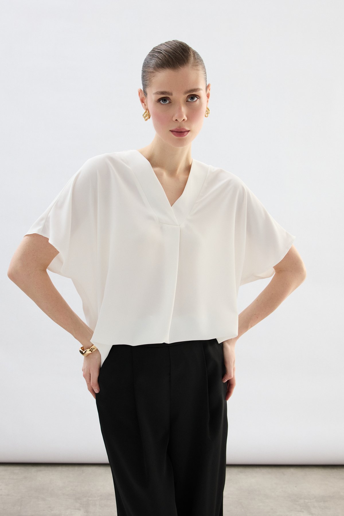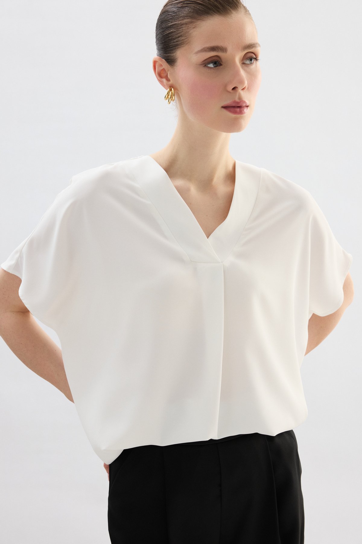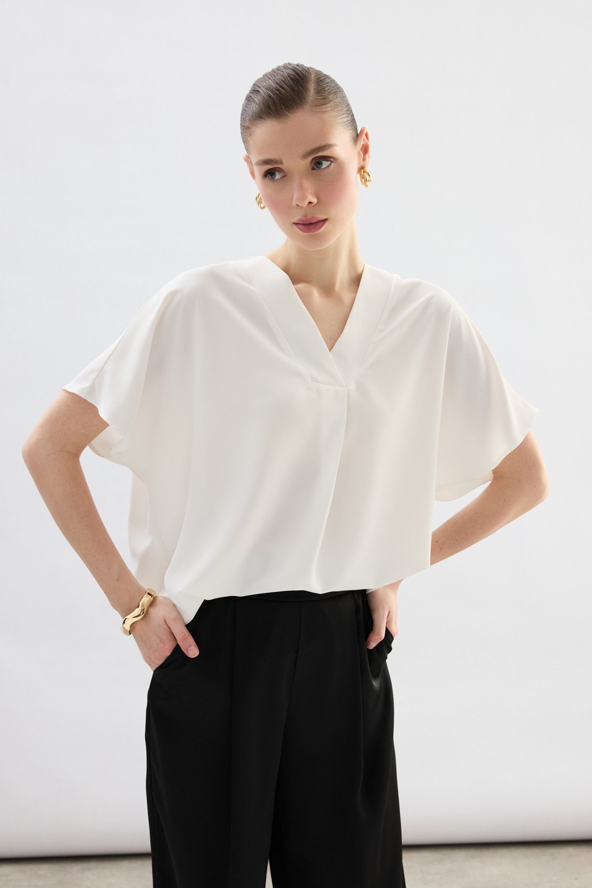 Geniş Kısa Kollu Bluz - Ekru (STN139KBL2103-EK)