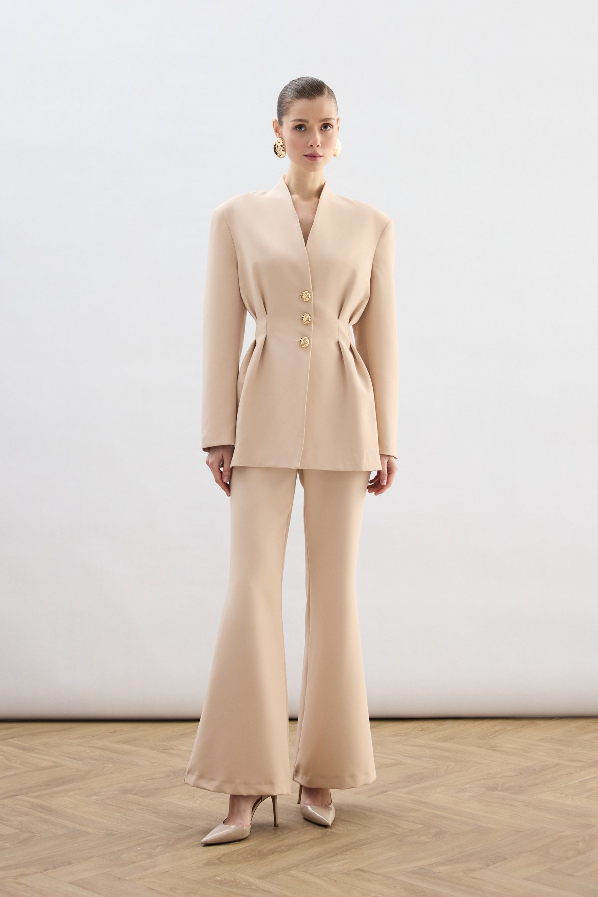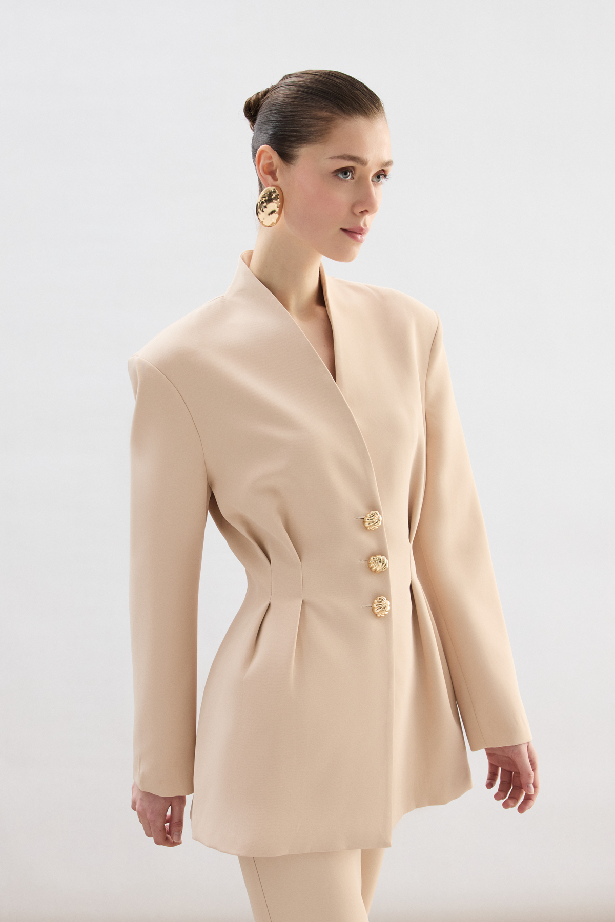 Gold Düğmeli Uzun Ceket - Bej (STN139KCE1930-BEJ)
