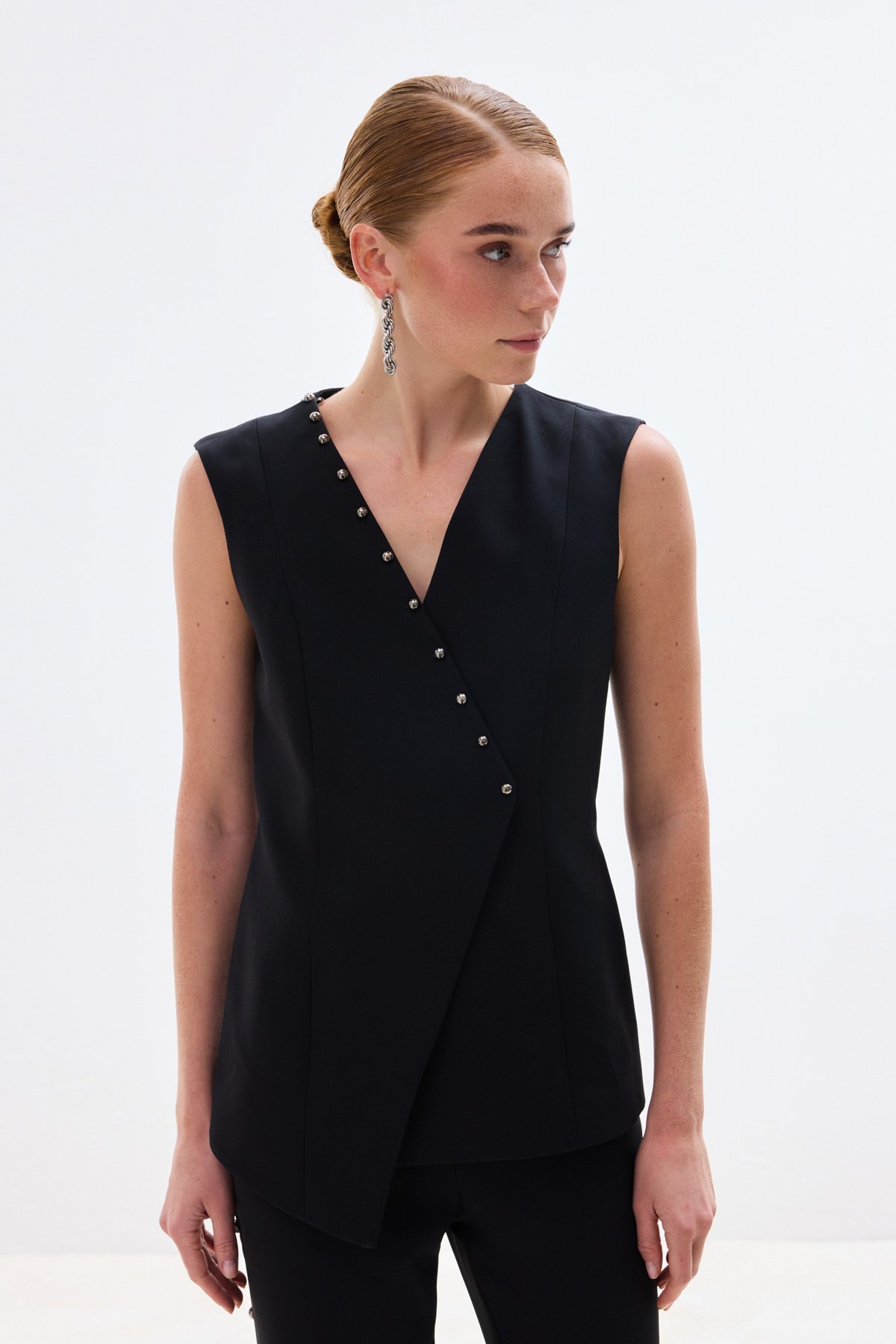 İncili Kruvaze Yelek - Siyah (STN139KYE1909-5)