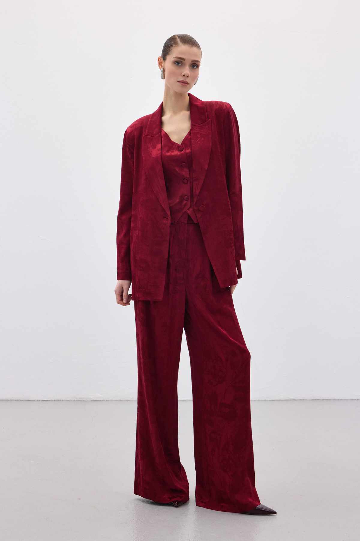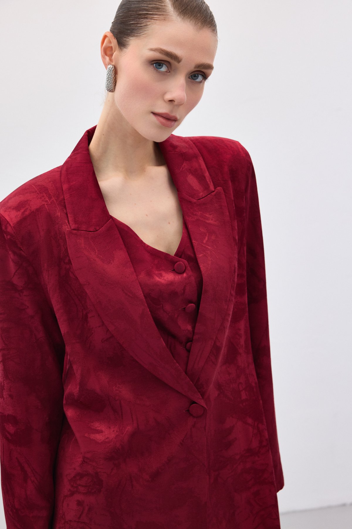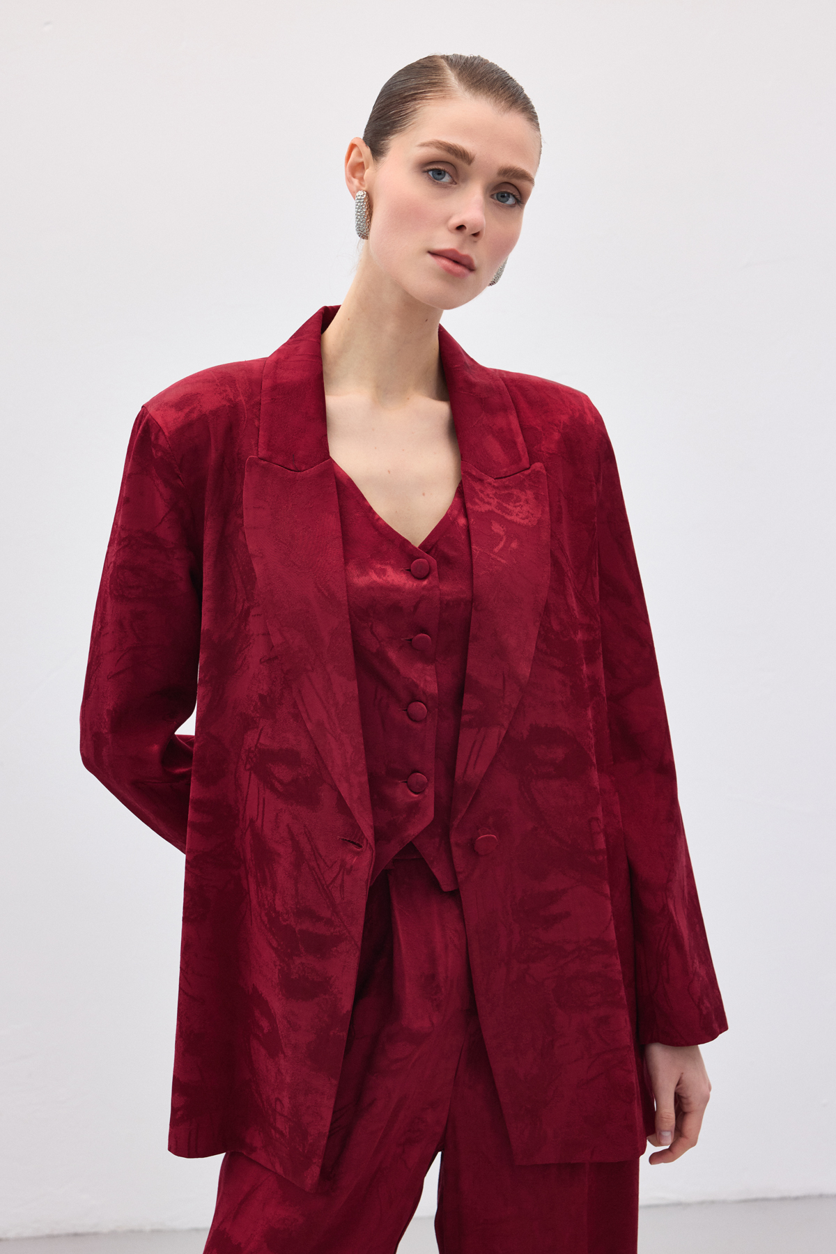 Jakarlı Uzun Ceket - Bordo (STN139KCE1893-BOR)