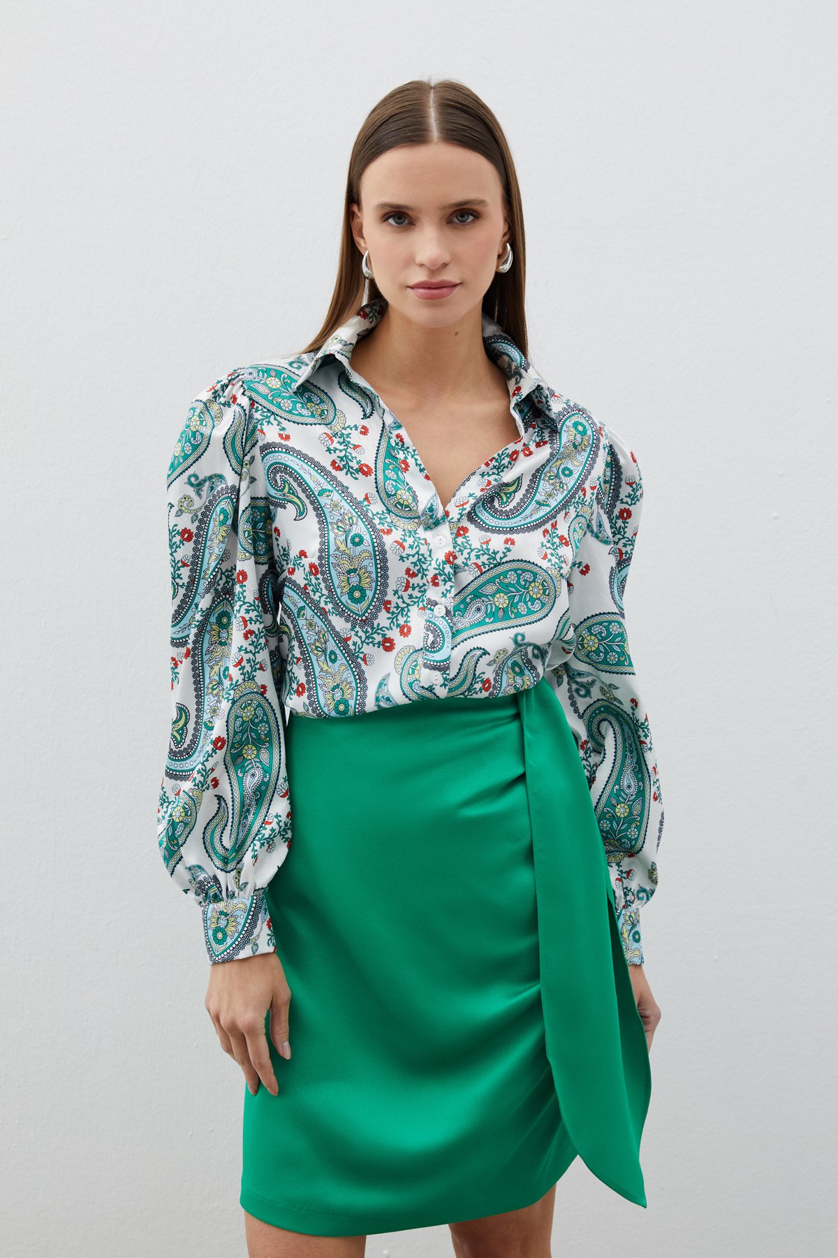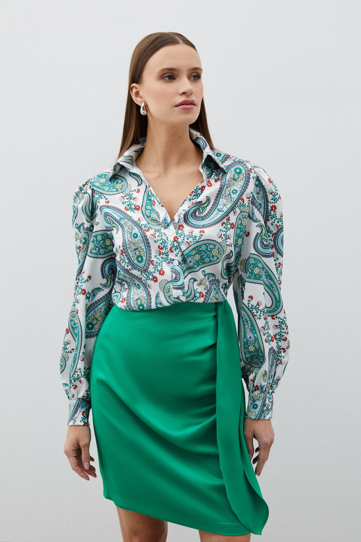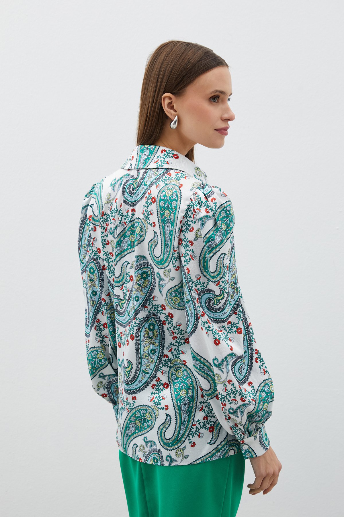Kabarık Kol Desenli Gömlek - Yeşil (STN139KGO1447-YES)