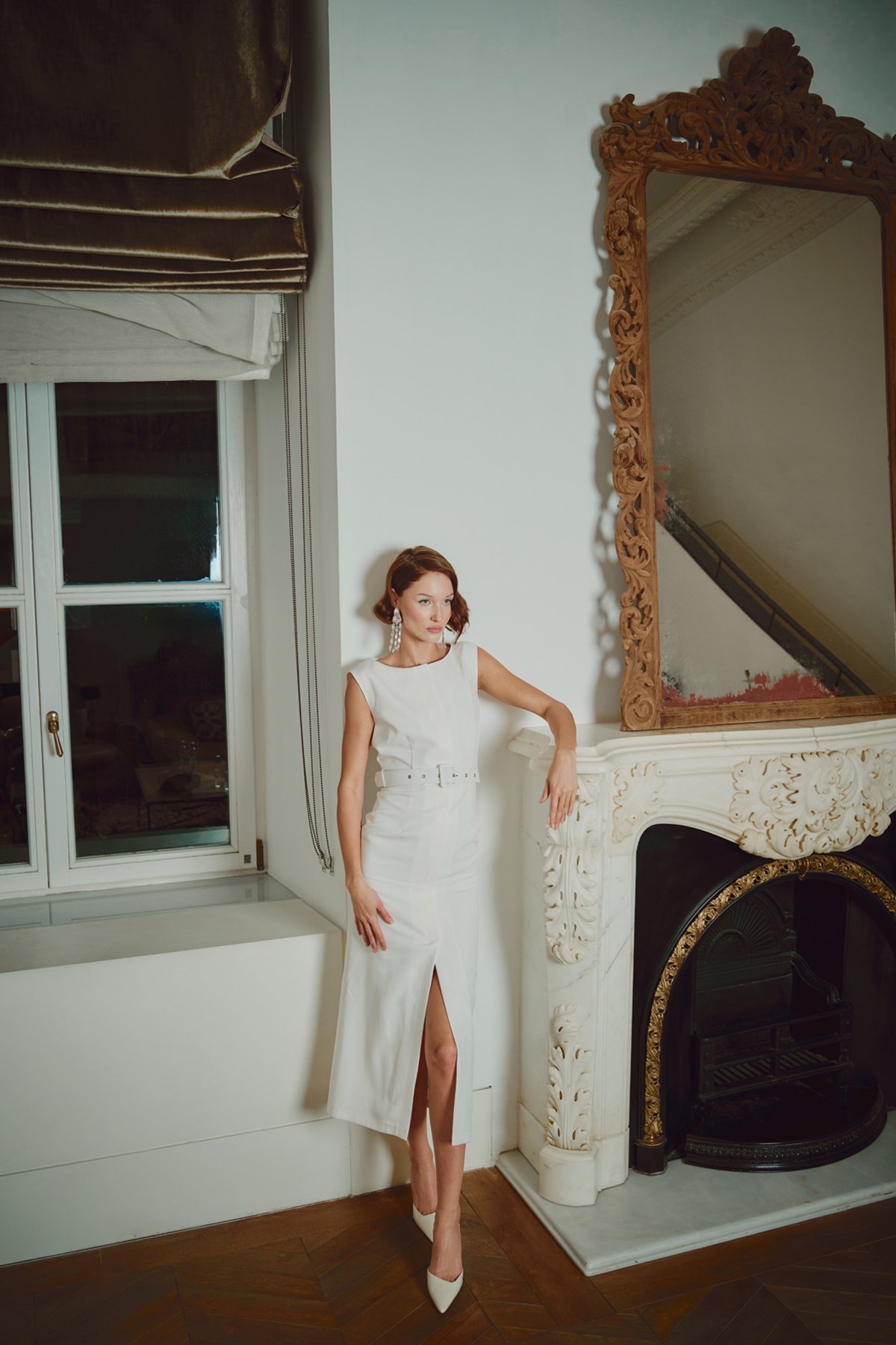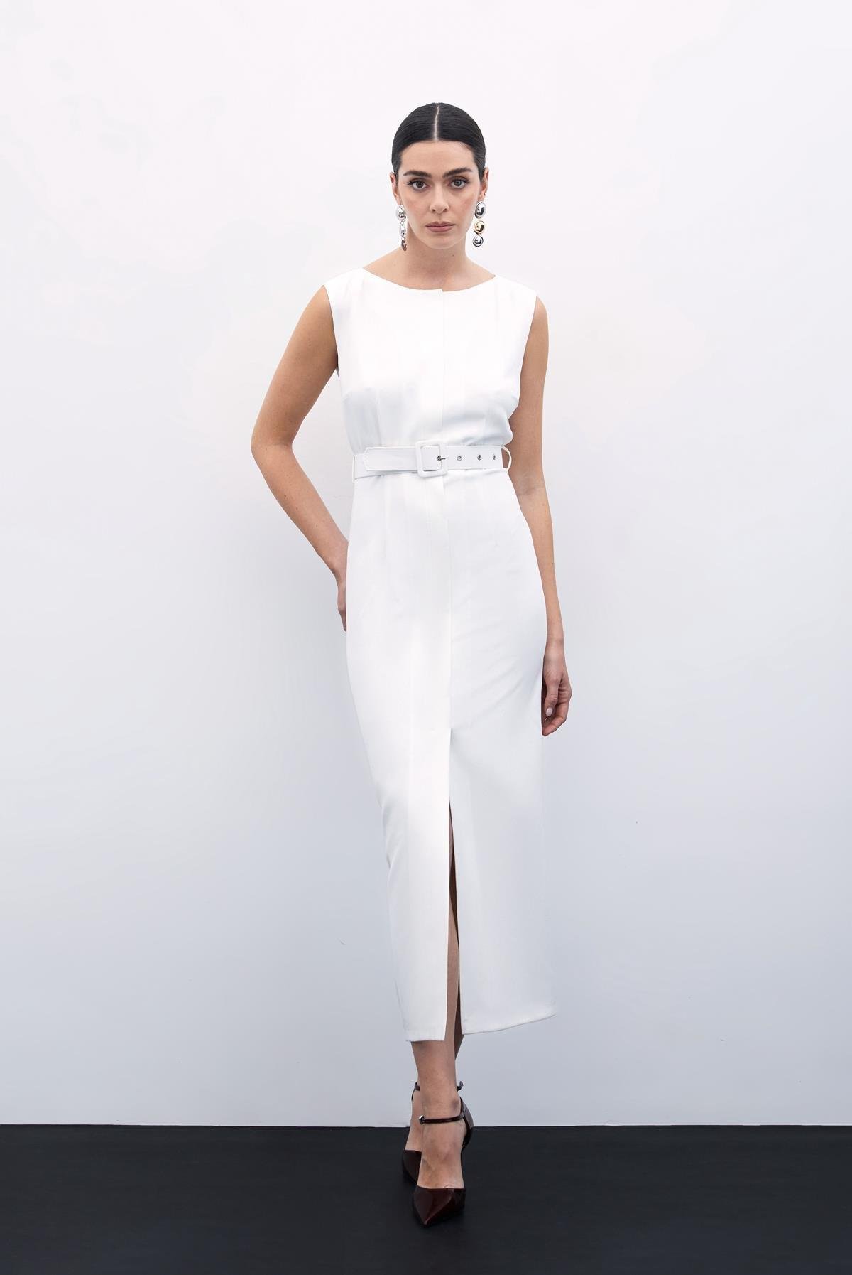 Kemerli Kalem Elbise - Ekru (STN139KEL1757-EK)
