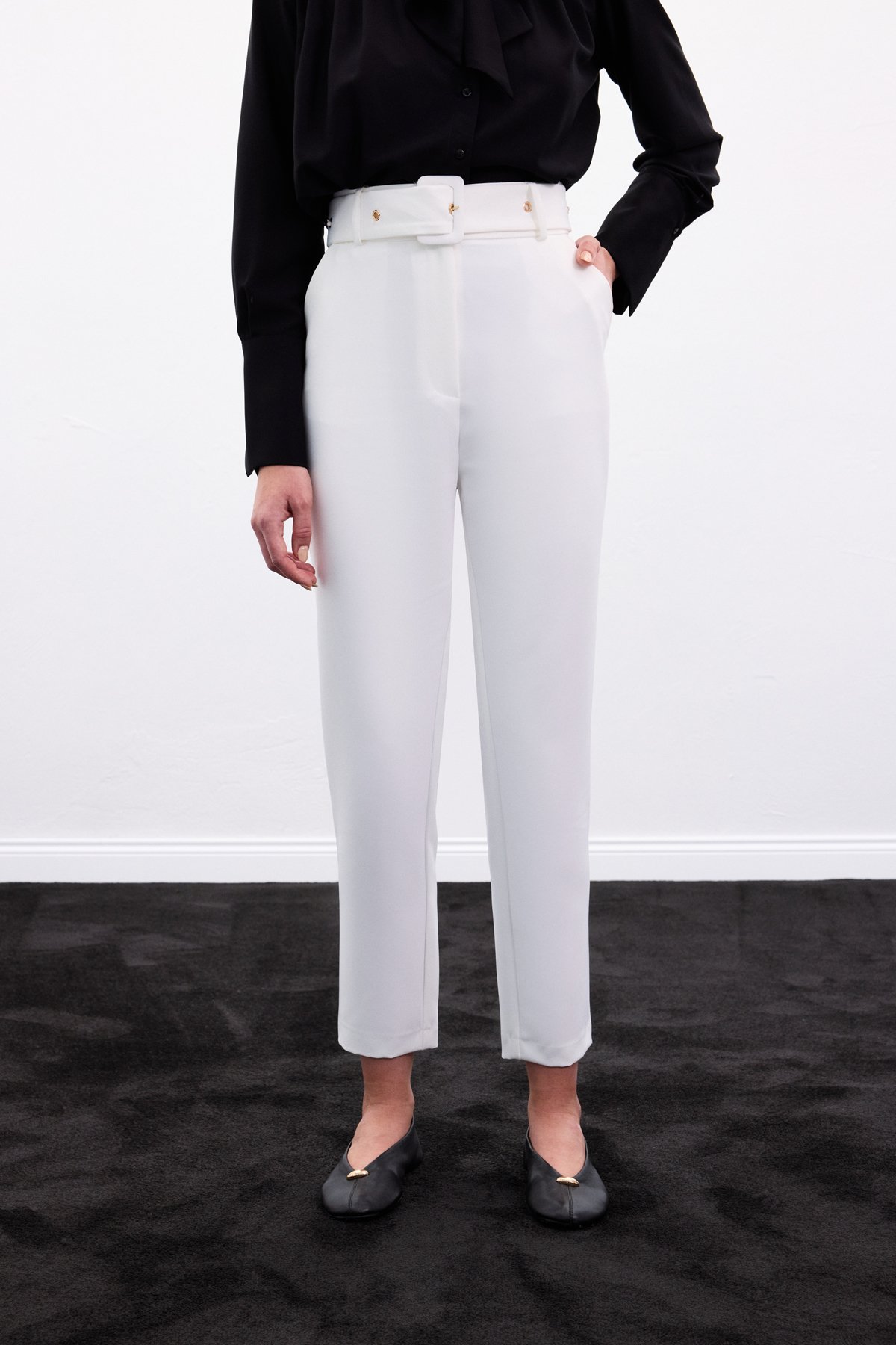 Kemerli Pantolon - Ekru (STN139KPA1923-EK)