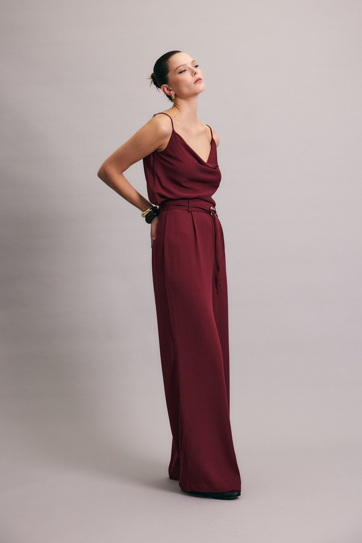 Kemerli Salaş Pantolon - Mürdüm (STN139KPA1794-MU)