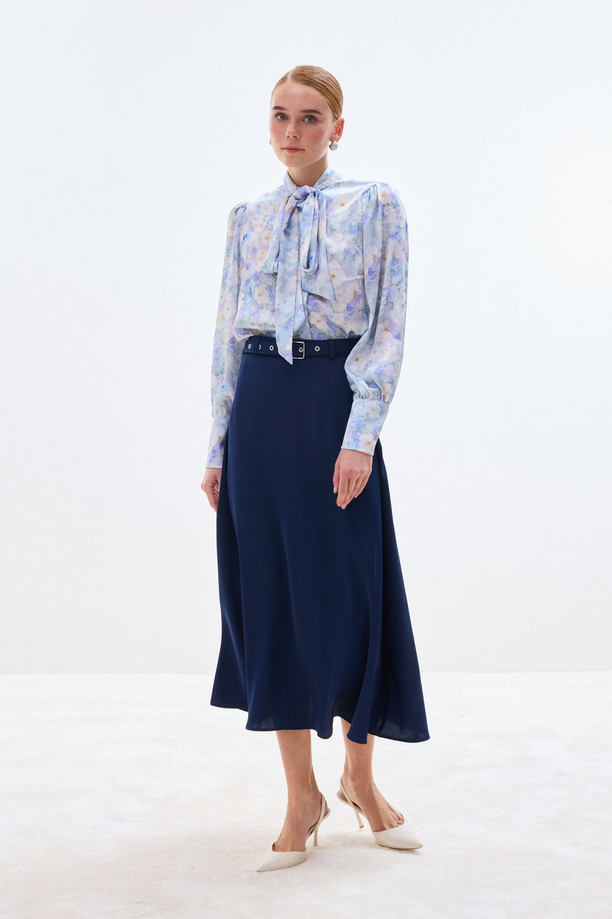 Kemerli Saten Etek - Lacivert (STN139KET1941-LAC)