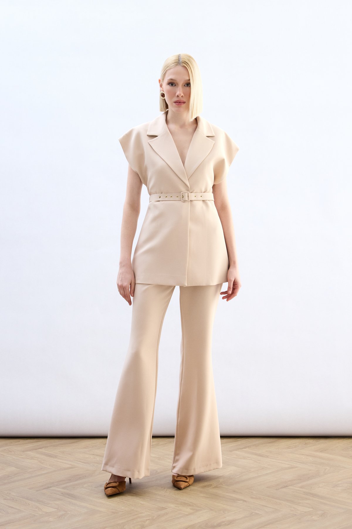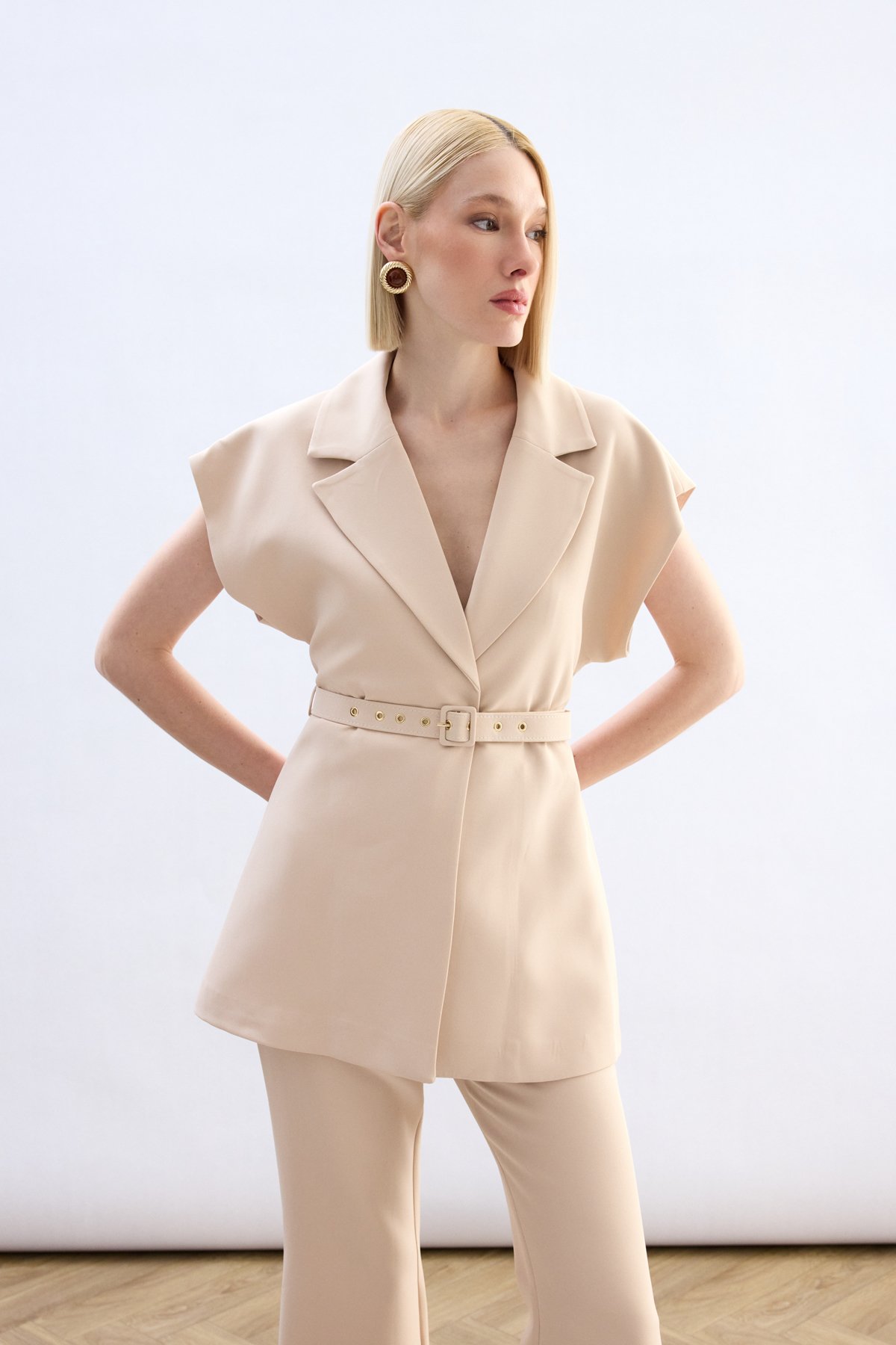 Kemerli Uzun Yelek - Bej (STN139KYE1939-BEJ)