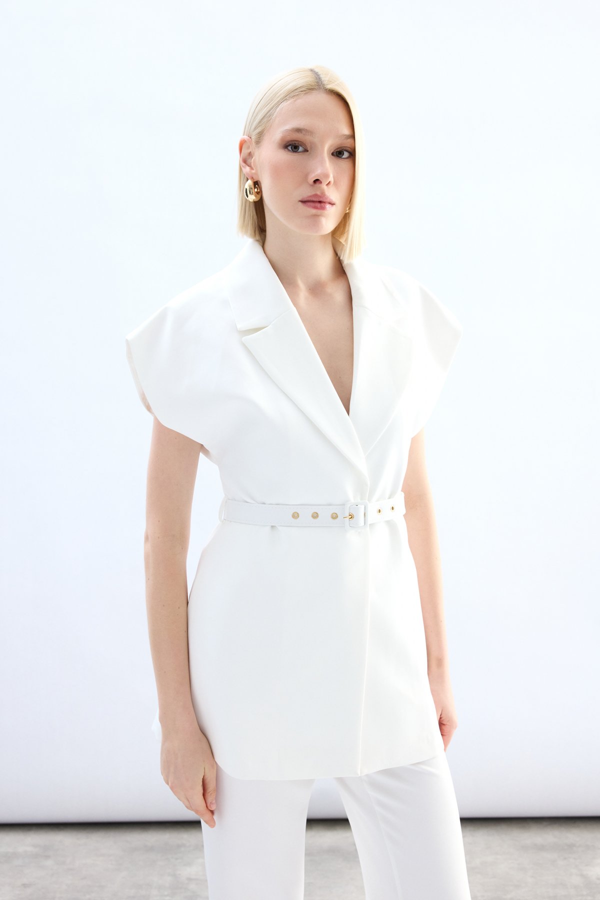 Kemerli Uzun Yelek - Ekru (STN139KYE1939-EK)