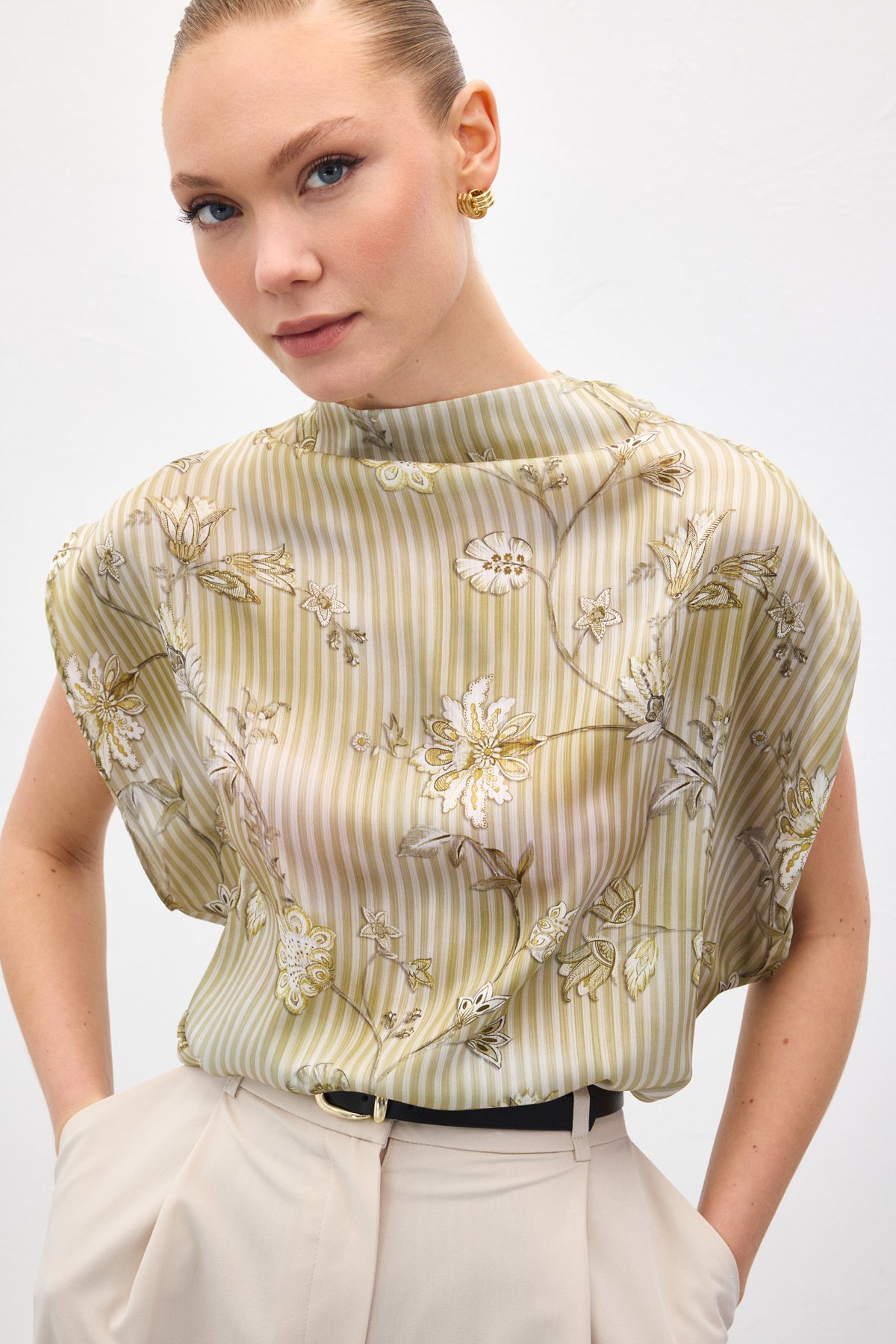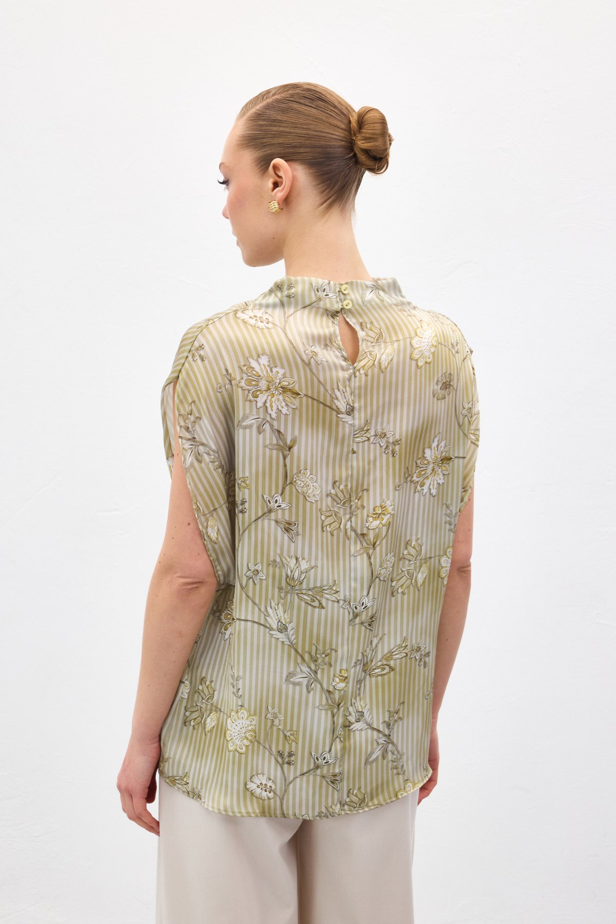 Kısa Kollu Desenli Bluz - Haki (STN139KBL1979-HA)