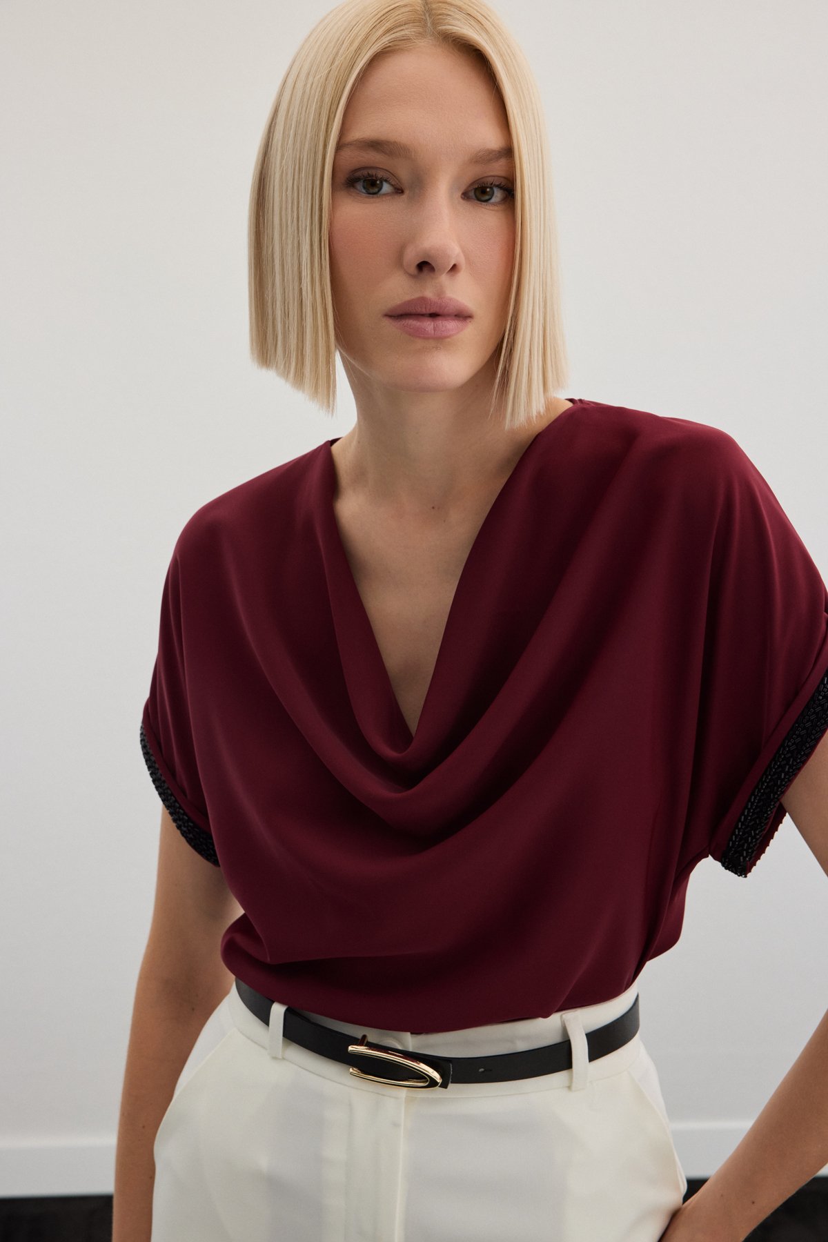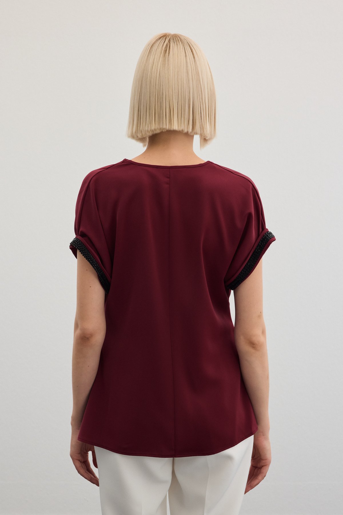 Kollar Taş Detaylı Salaş Bluz - Bordo (STN139KBL1366-BOR)