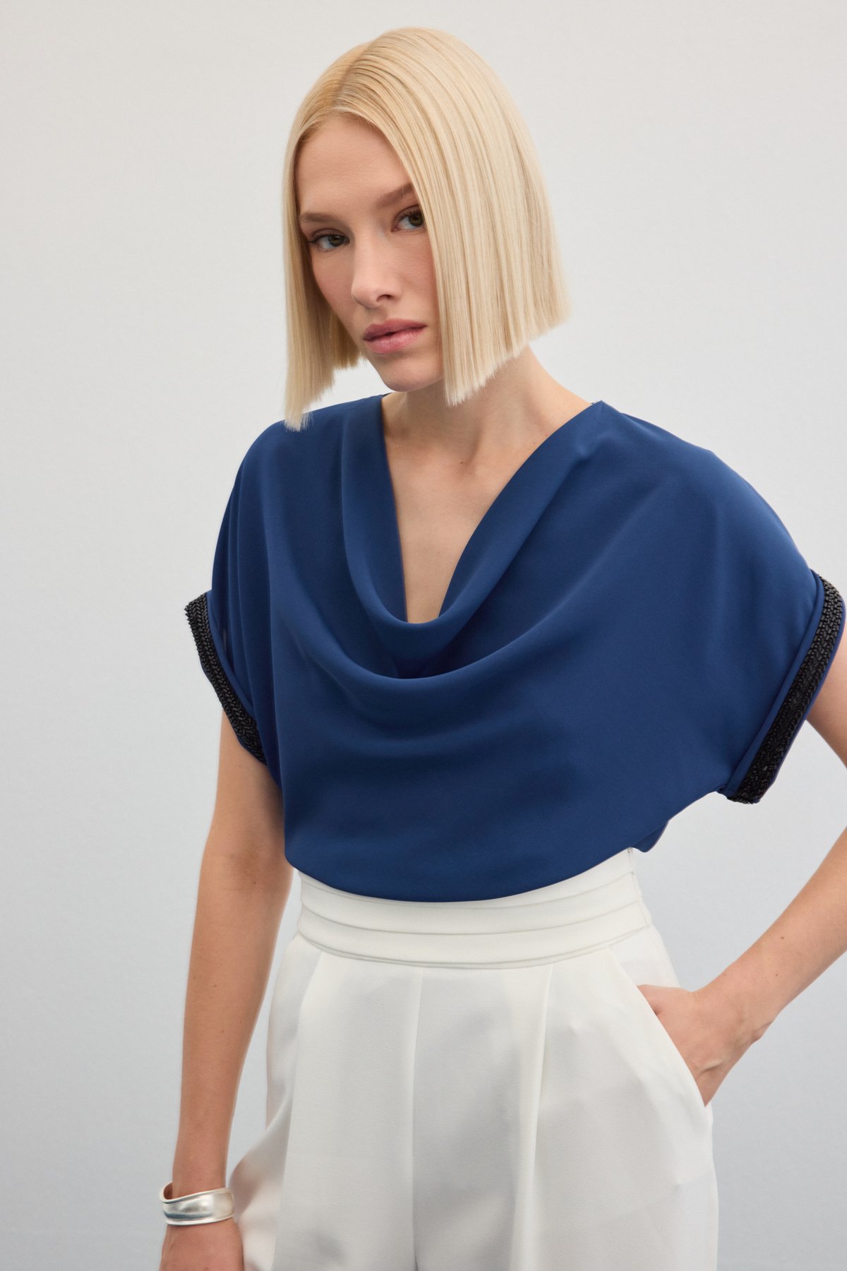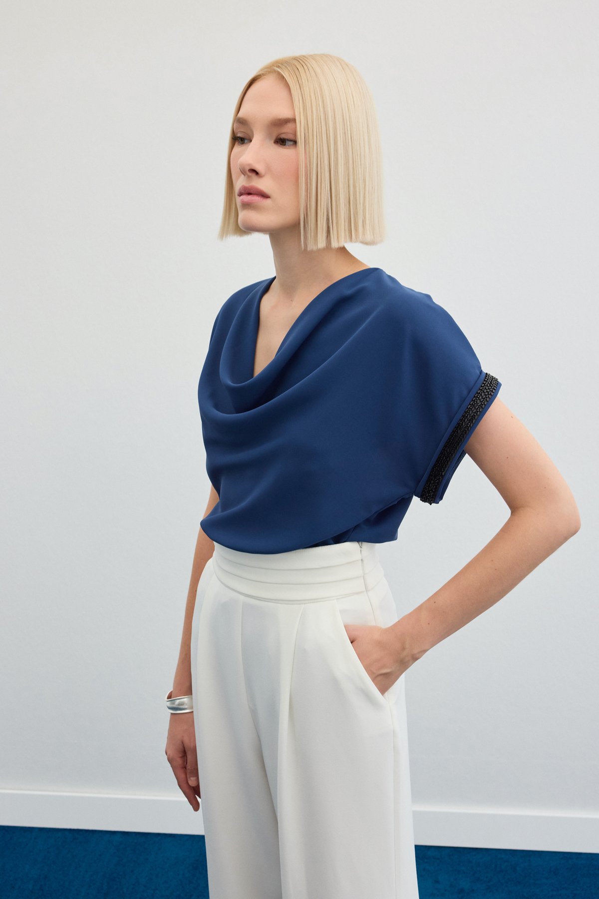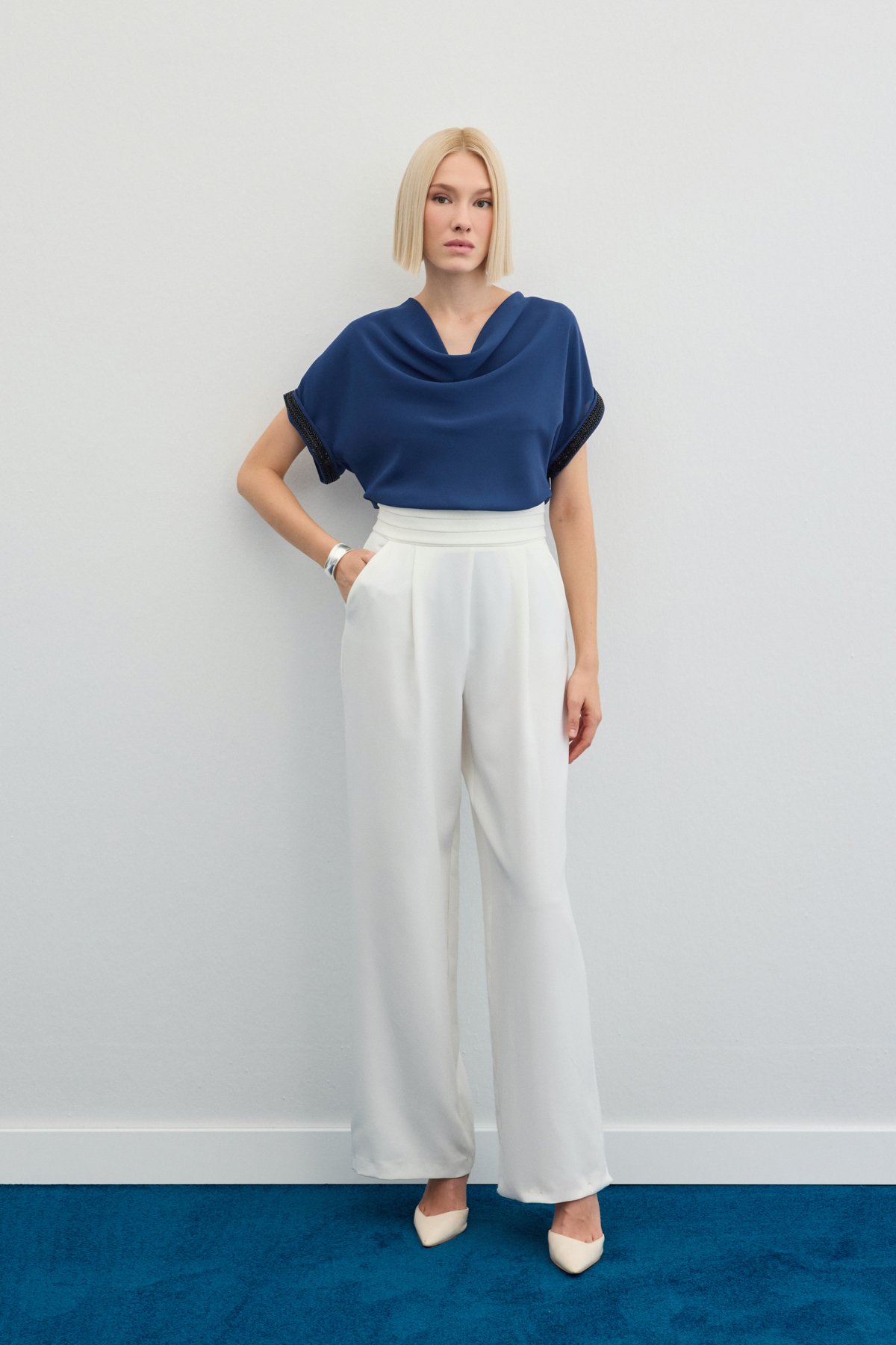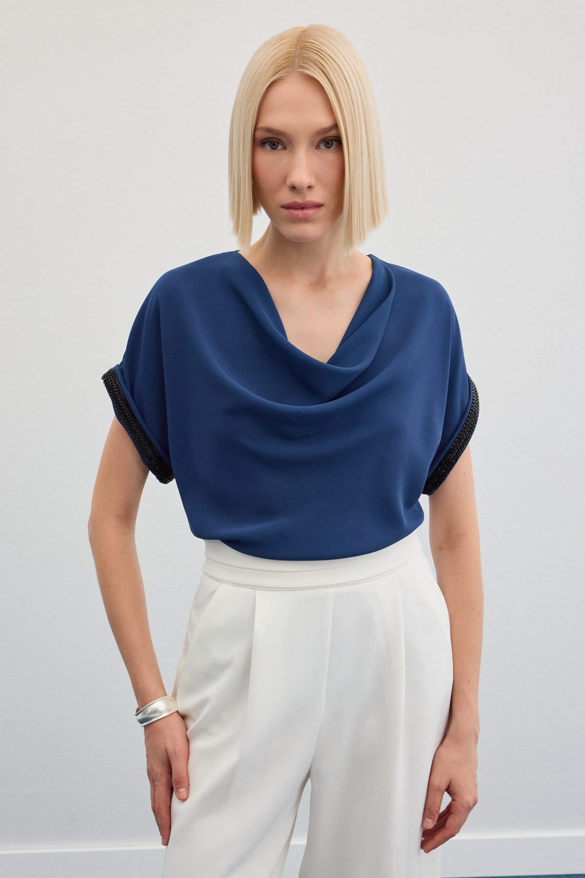 Kollar Taş Detaylı Salaş Bluz - İndigo (STN139KBL1366-I)
