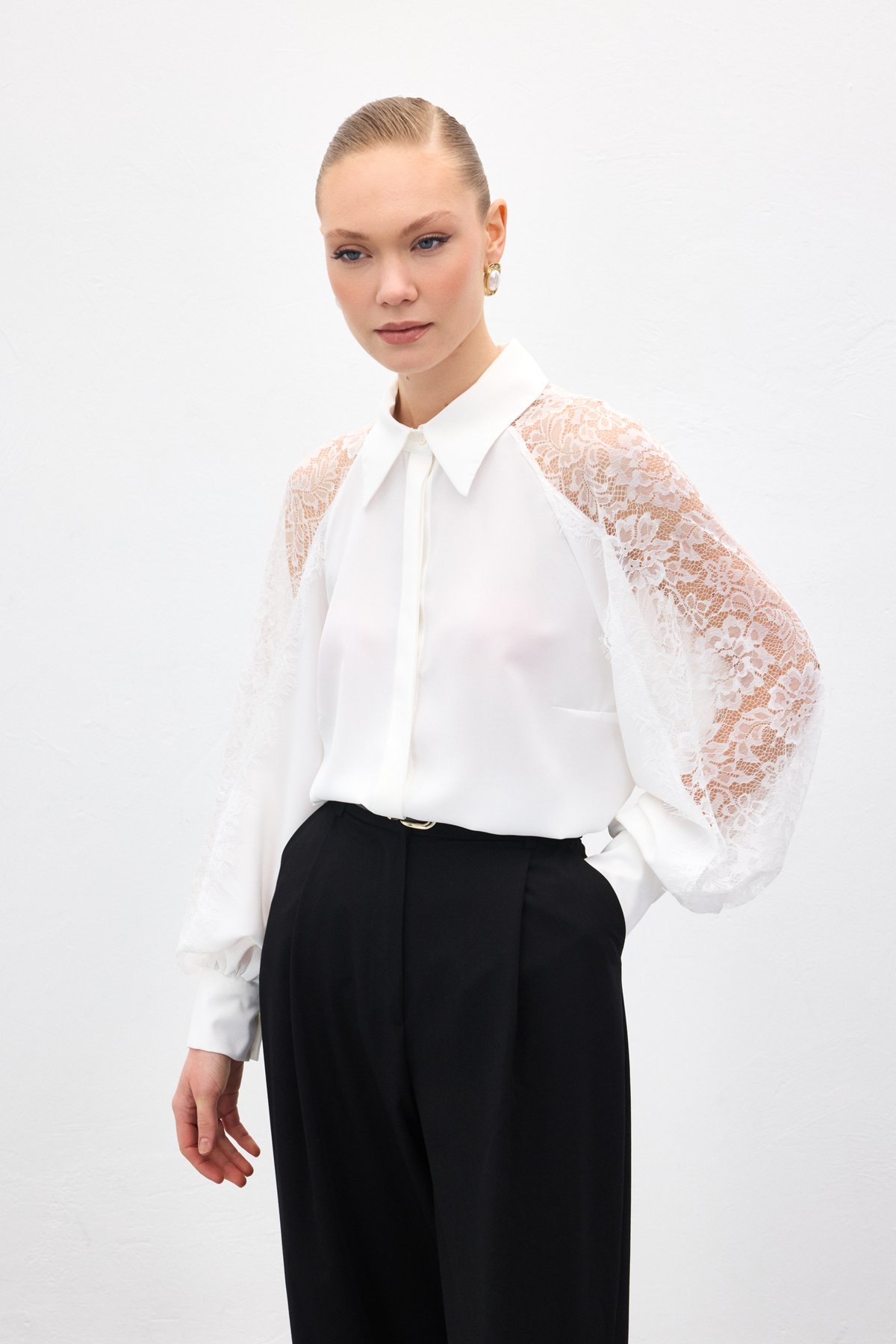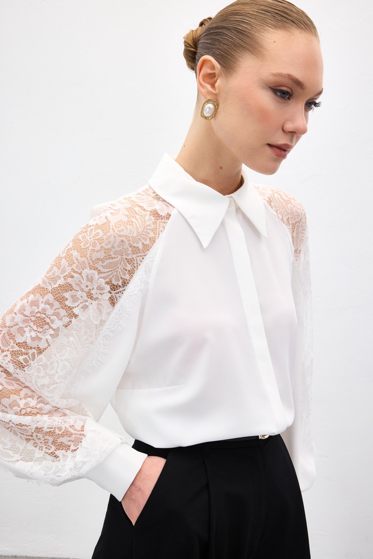 Kolları Dantel Detaylı Gömlek
