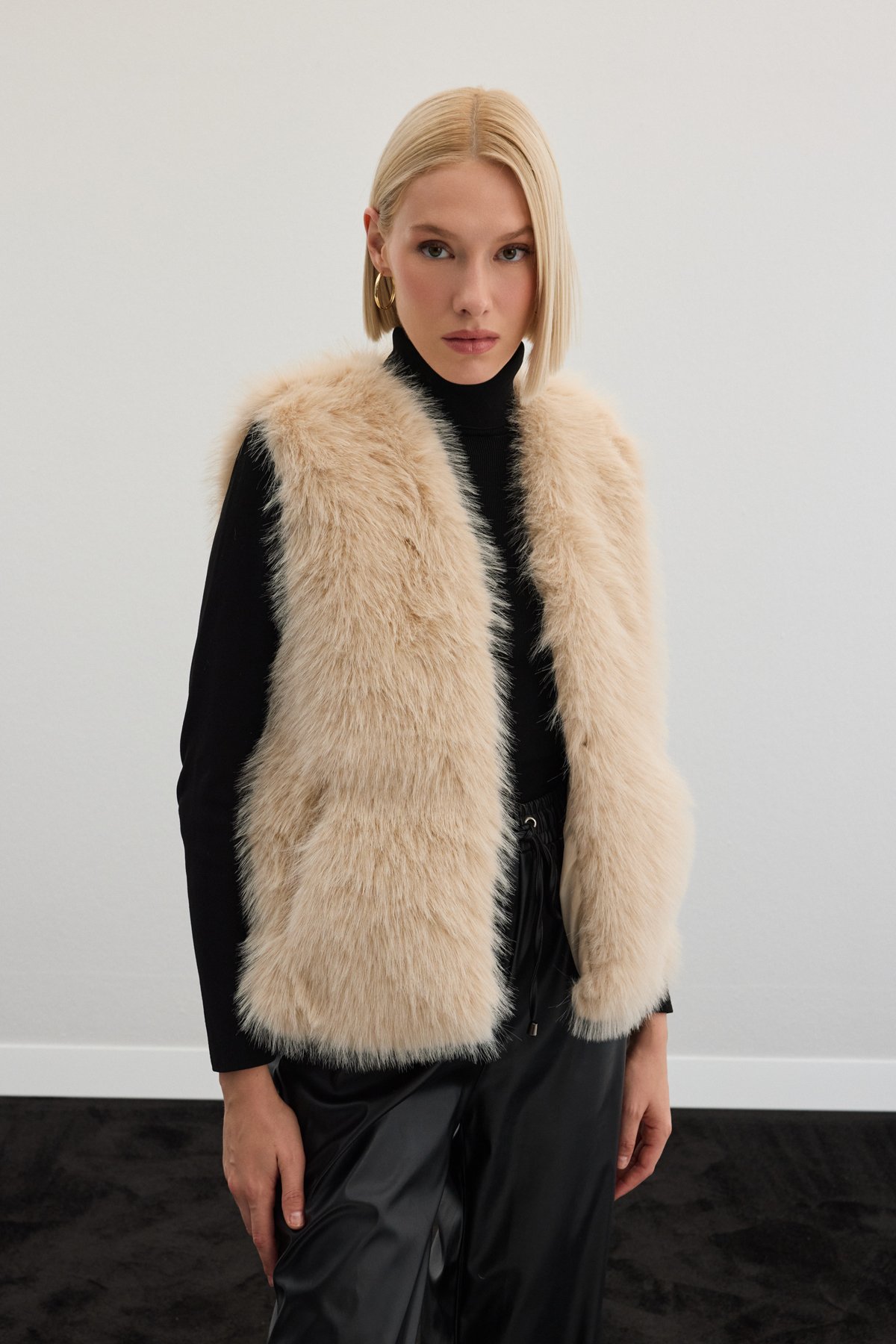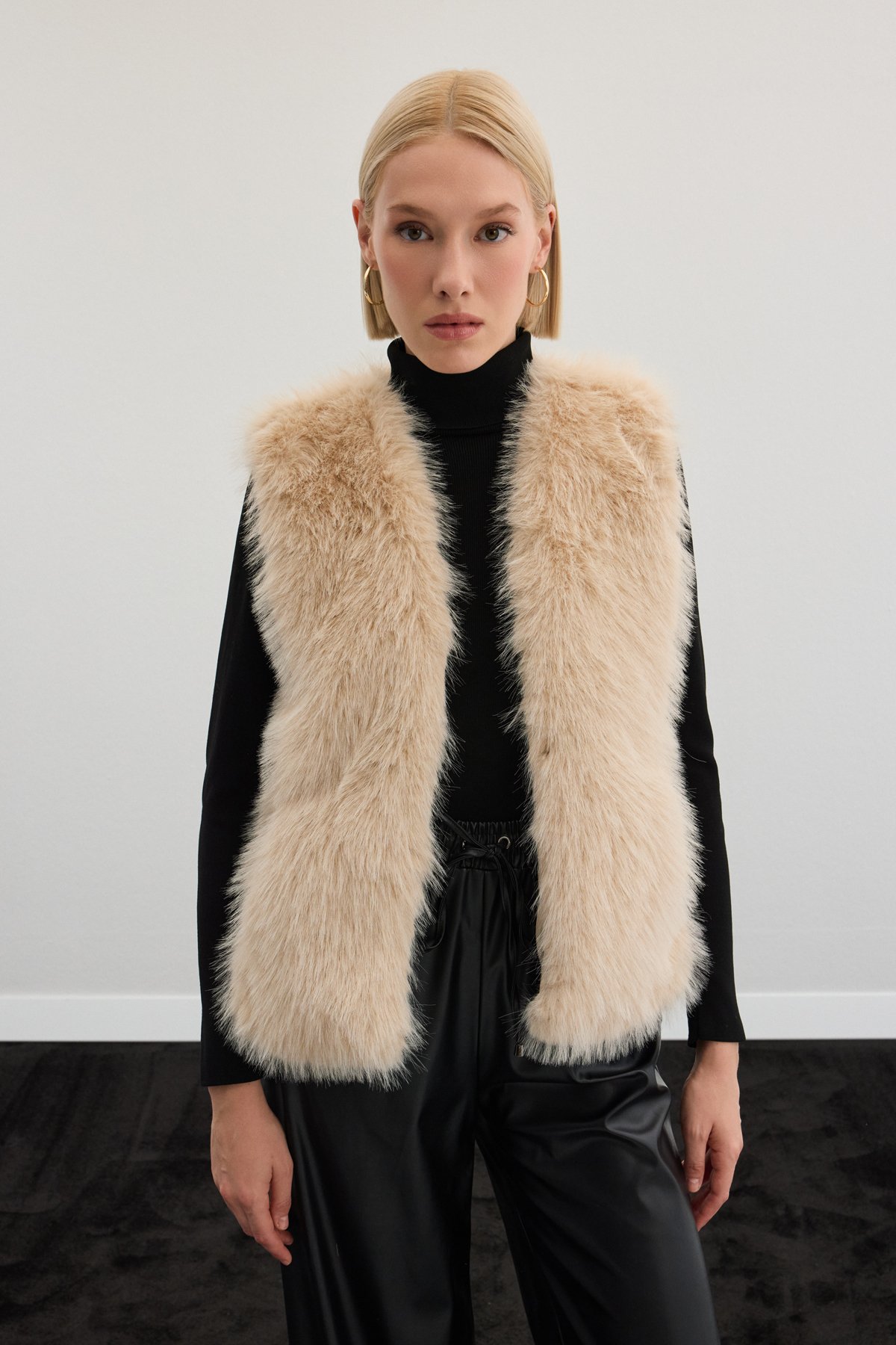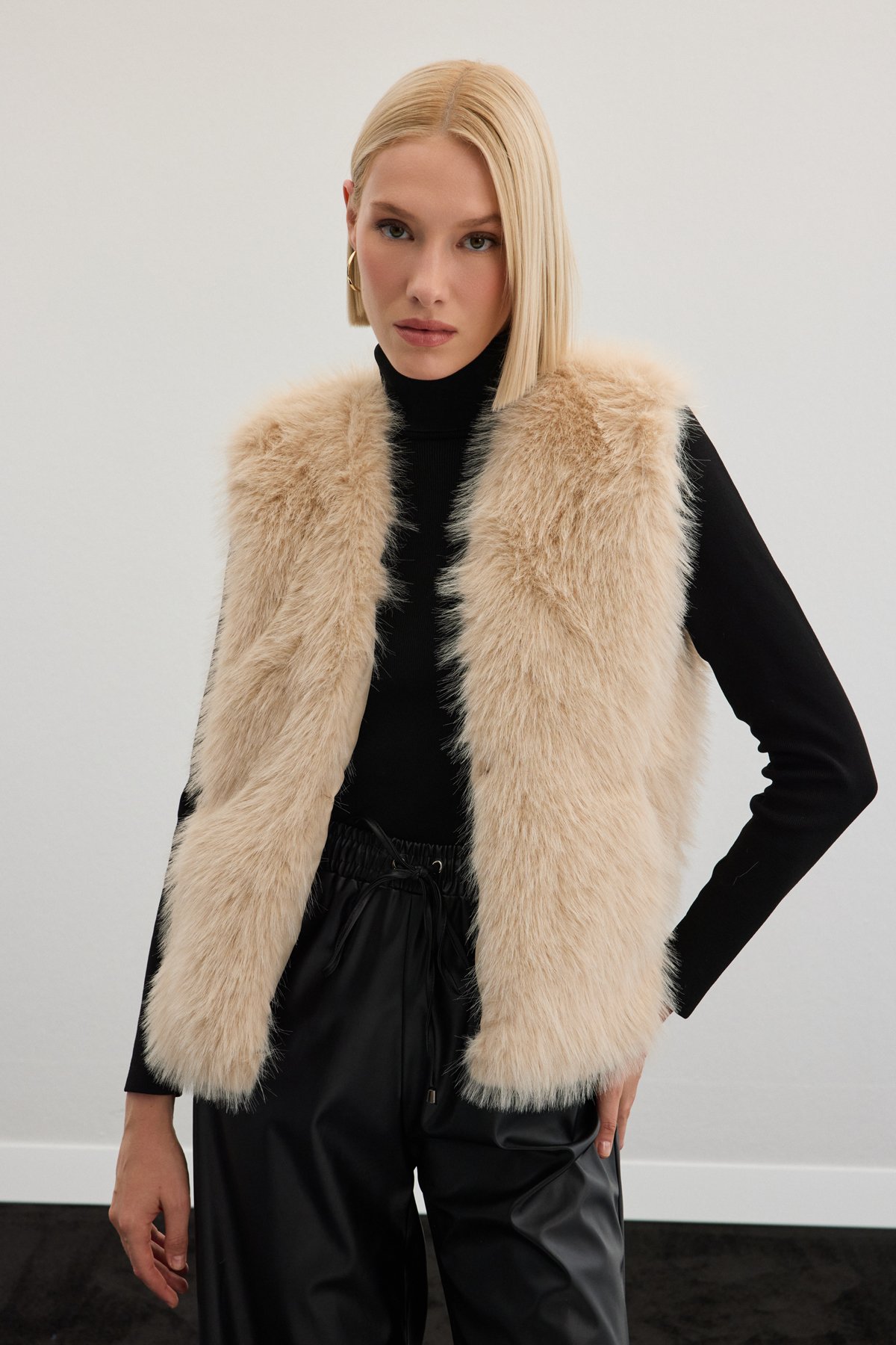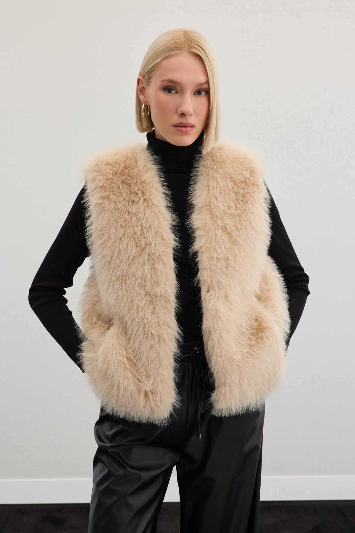 Kolsuz Uzun Yelek - Ekru (STN140KYE103-EK)