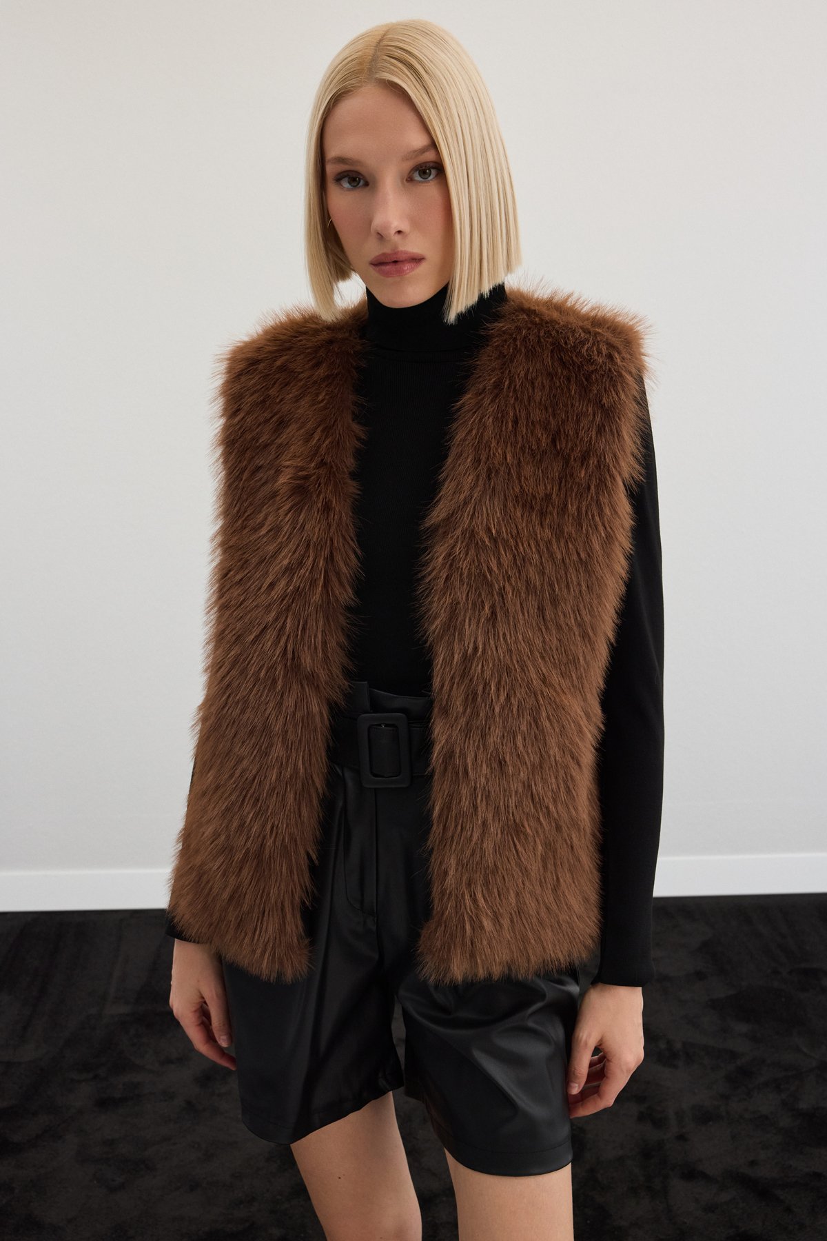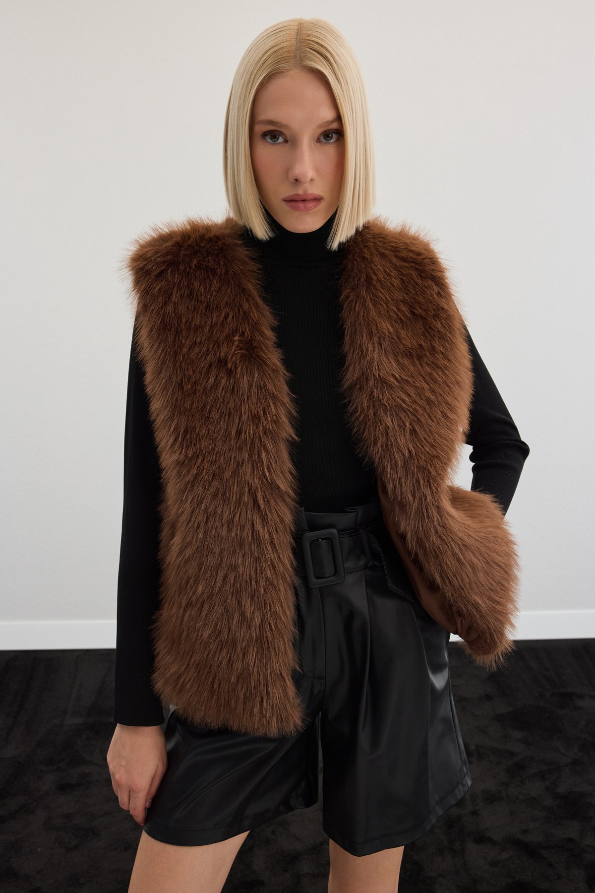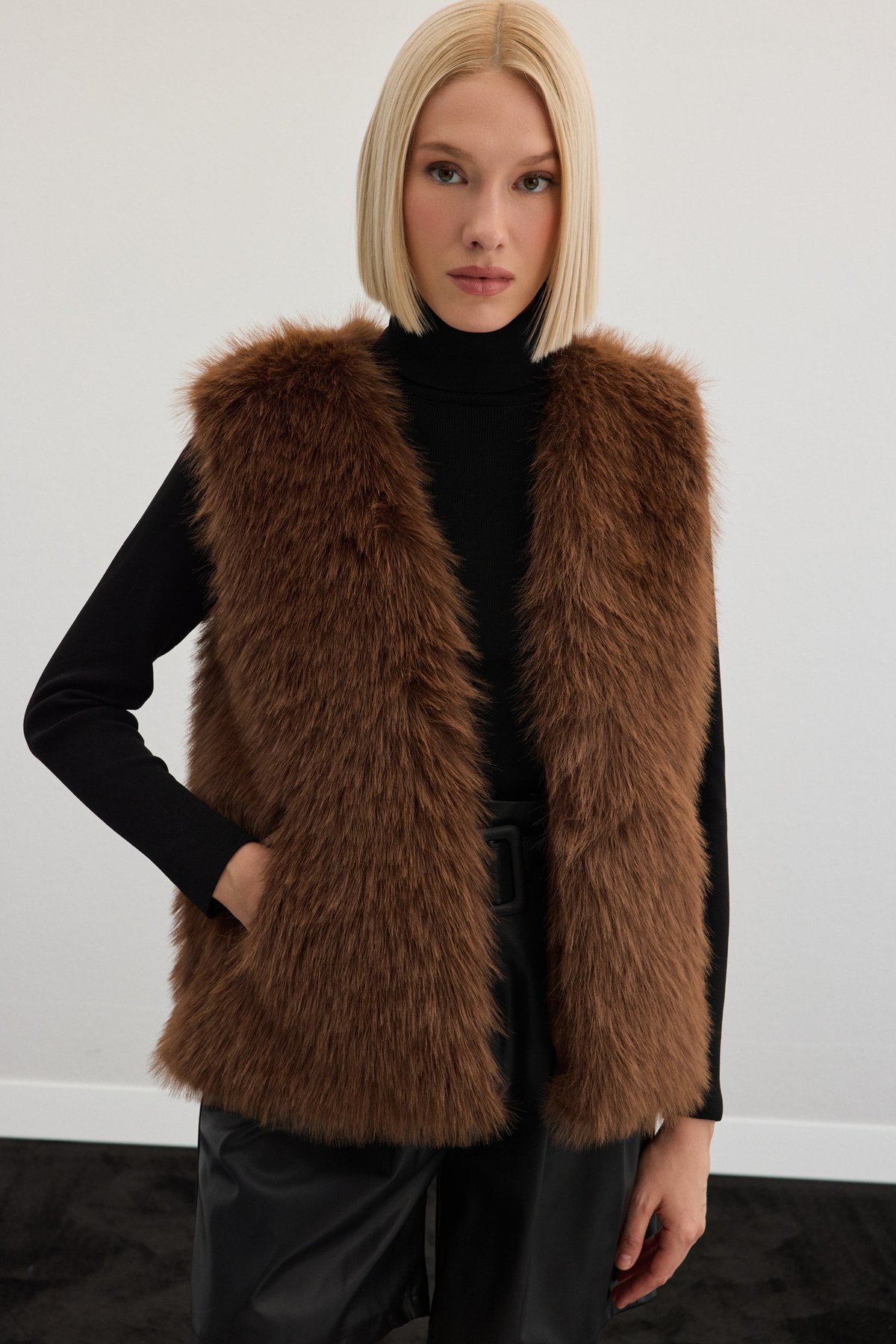Kolsuz Uzun Yelek - Kahve (STN140KYE103-014)
