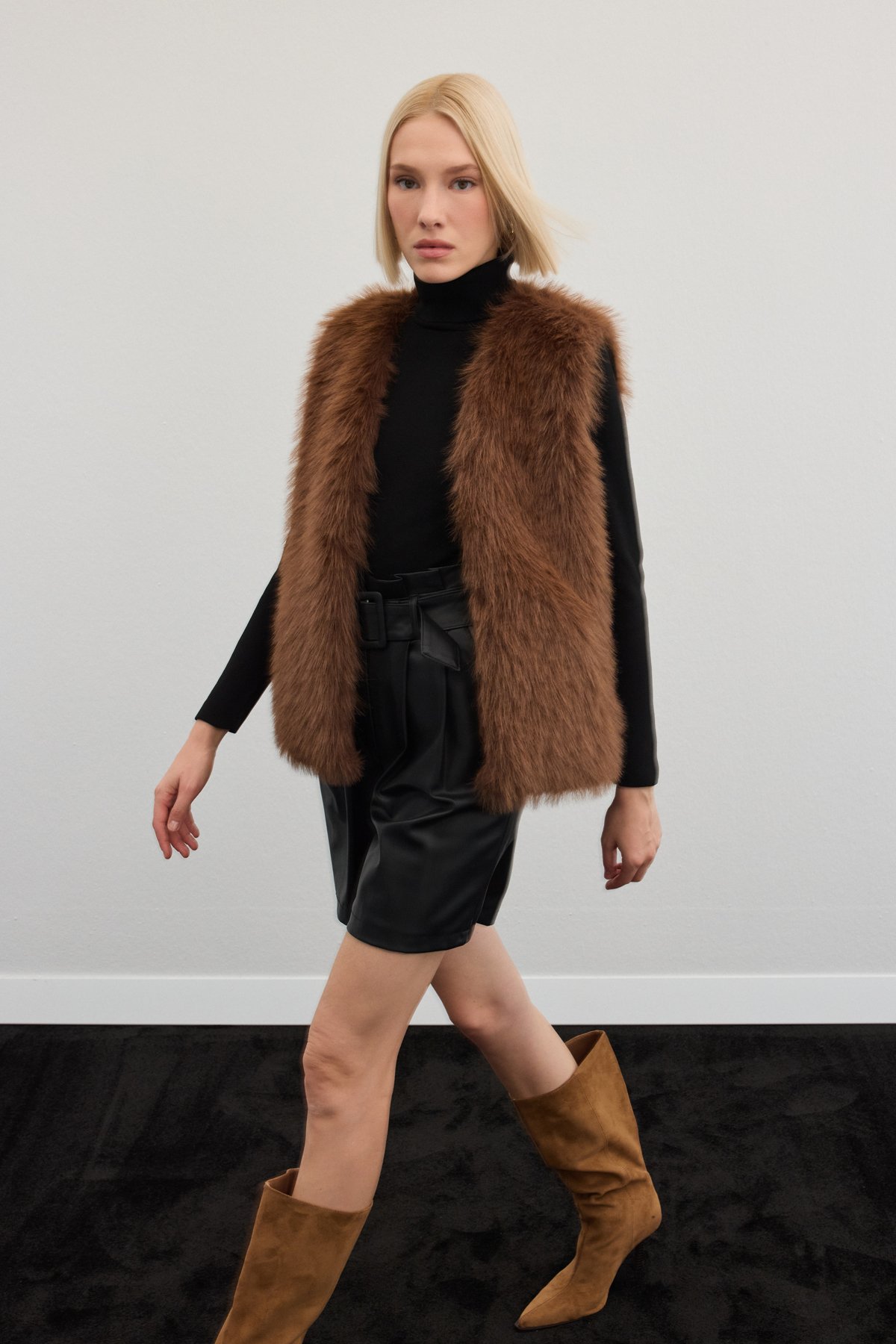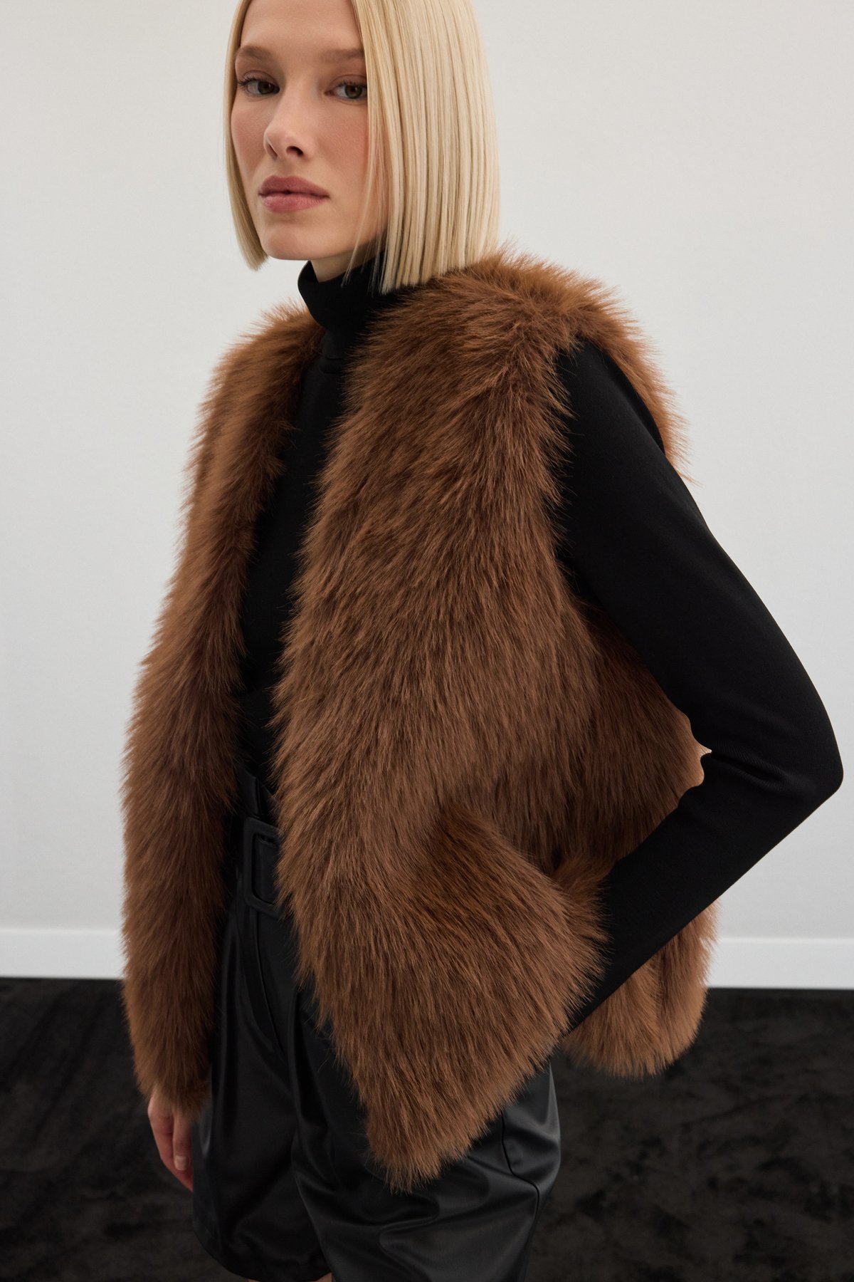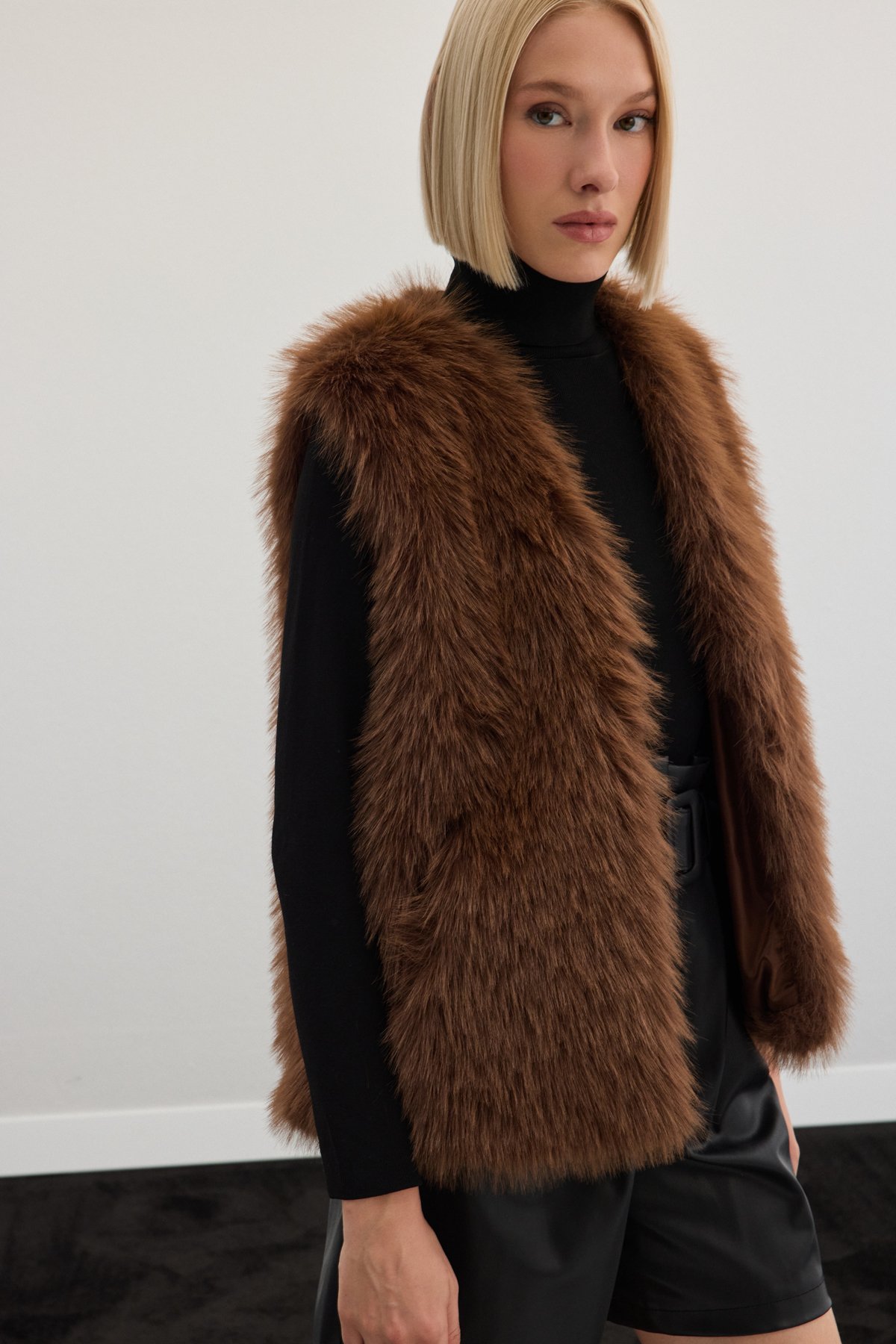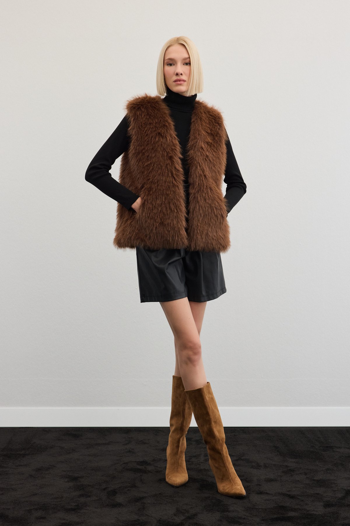 Kolsuz Uzun Yelek - Kahve (STN140KYE103-014)