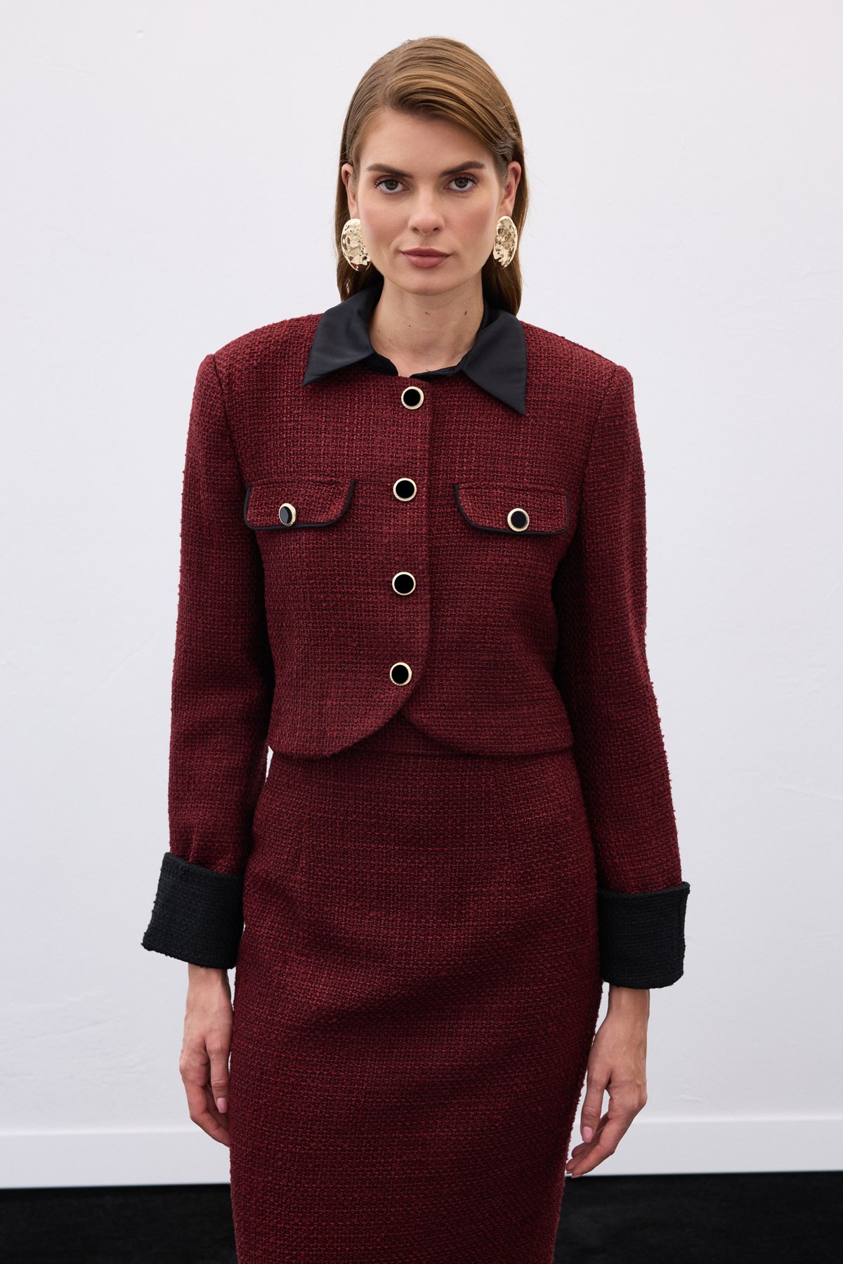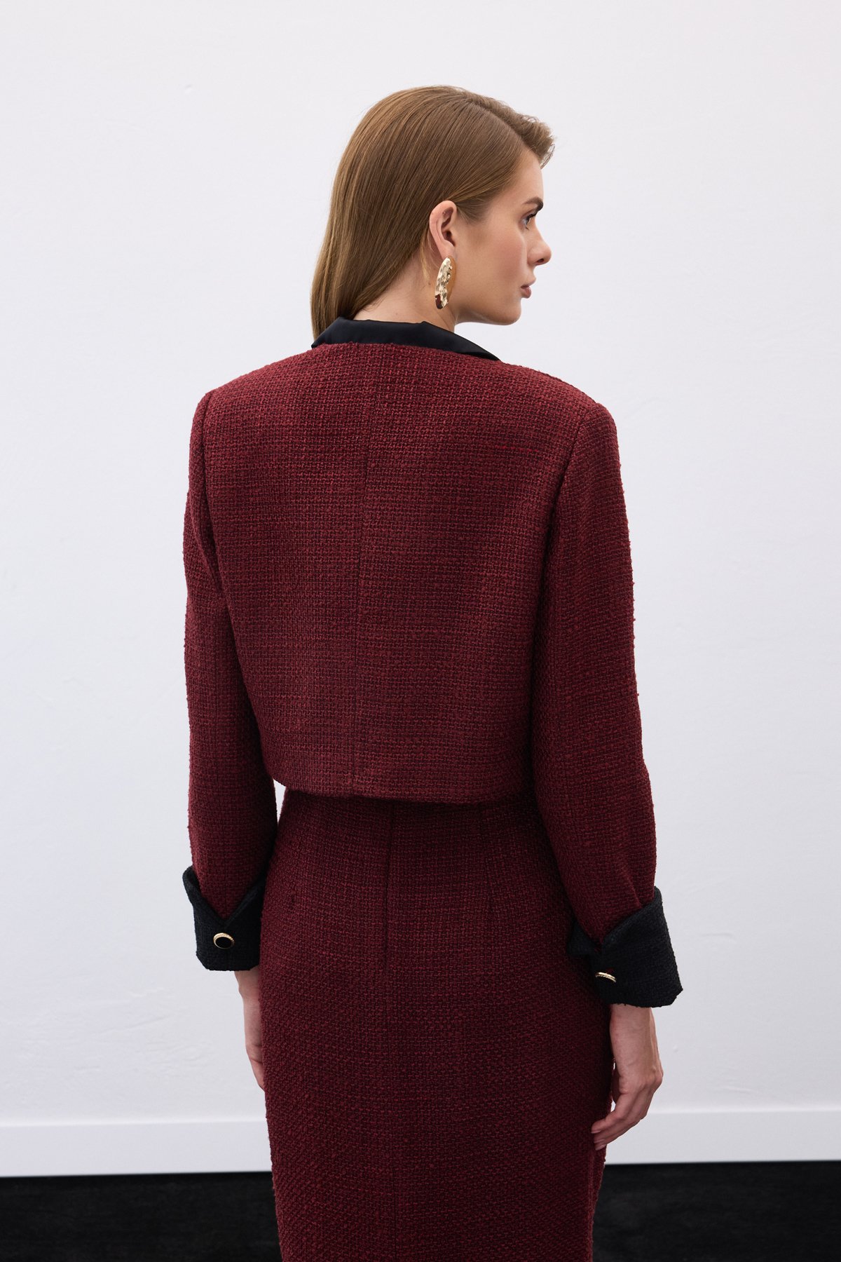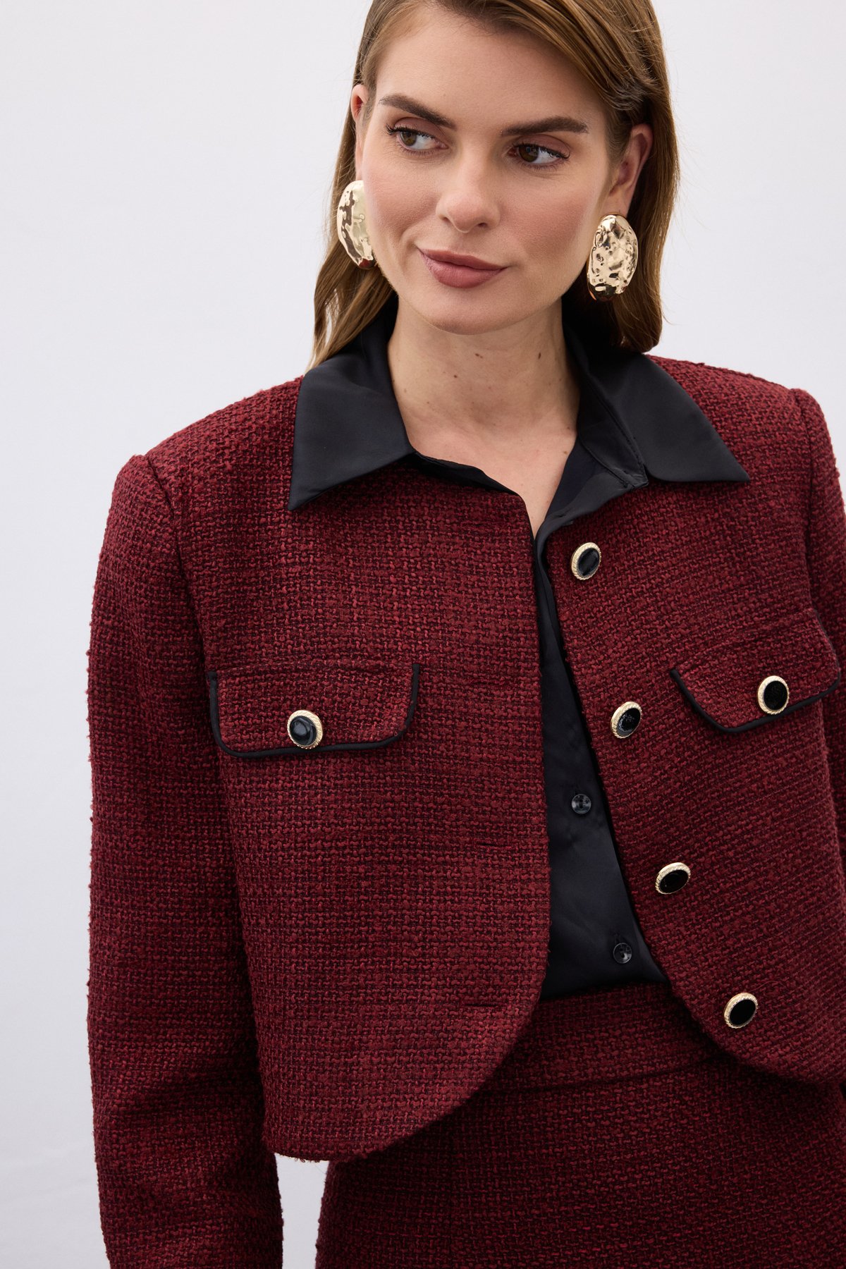 Kontrast Kısa Tüvit Ceket - Bordo (STN139KCE1549-BOR)