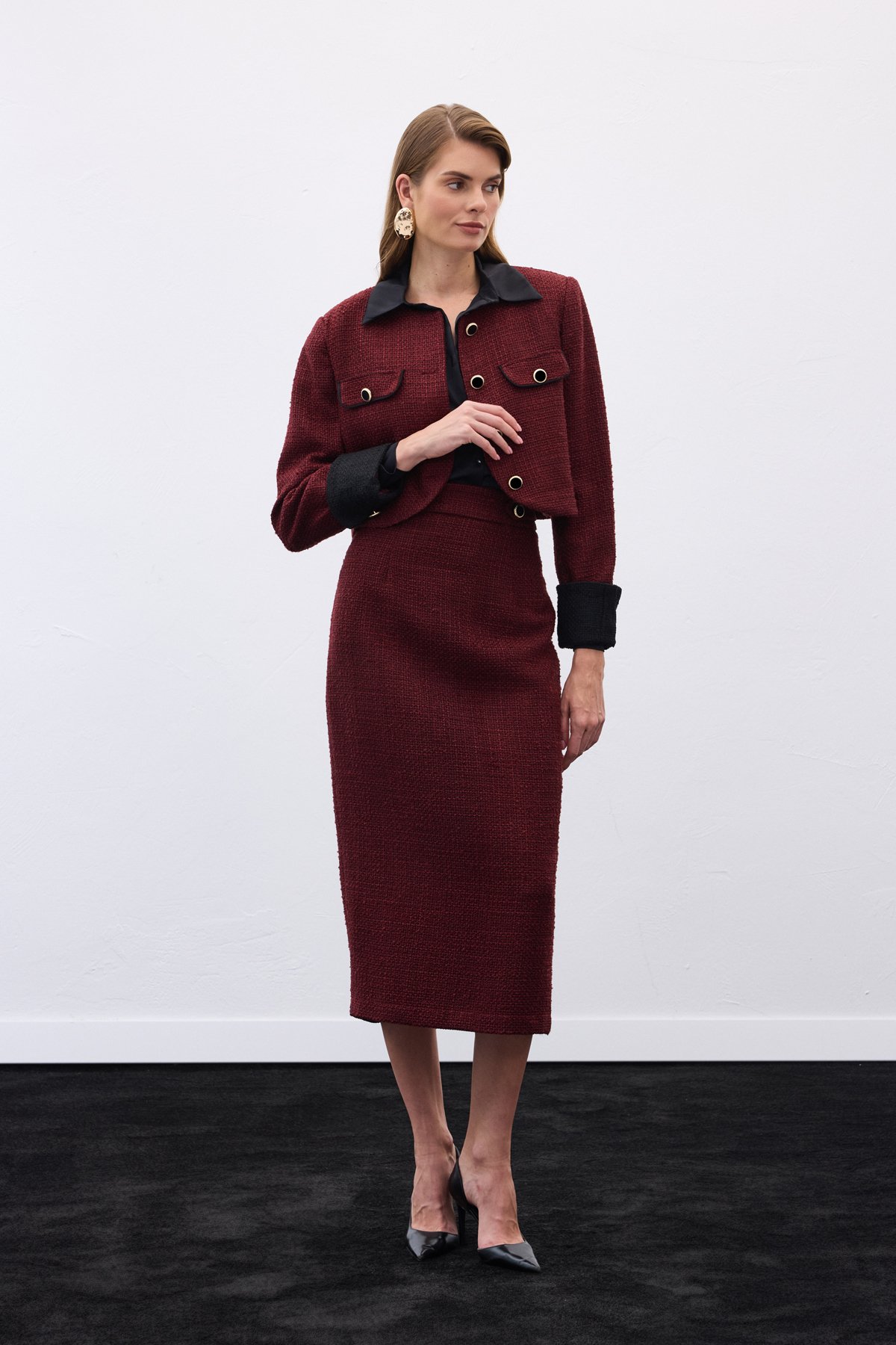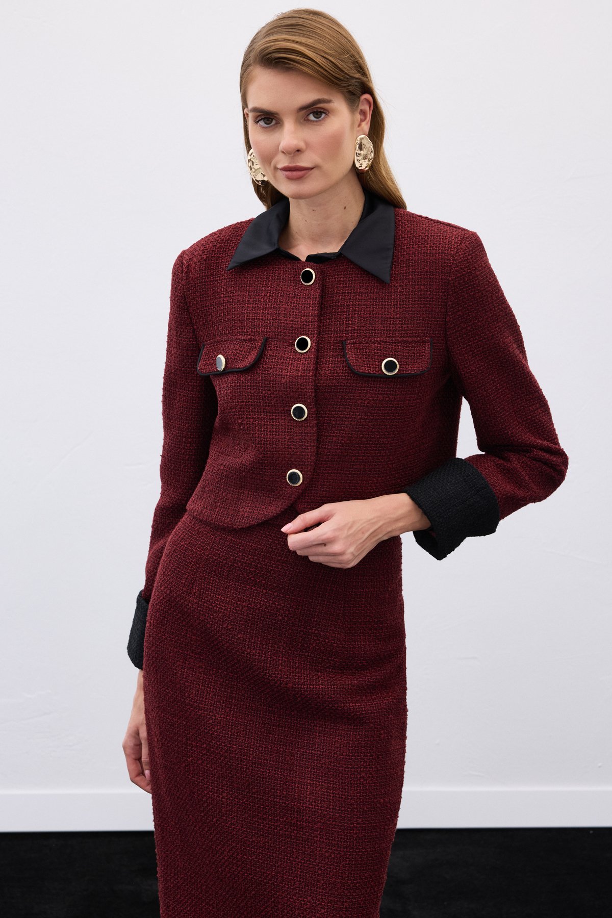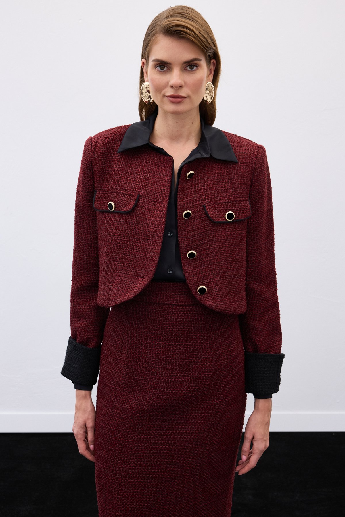 Kontrast Kısa Tüvit Ceket - Bordo (STN139KCE1549-BOR)