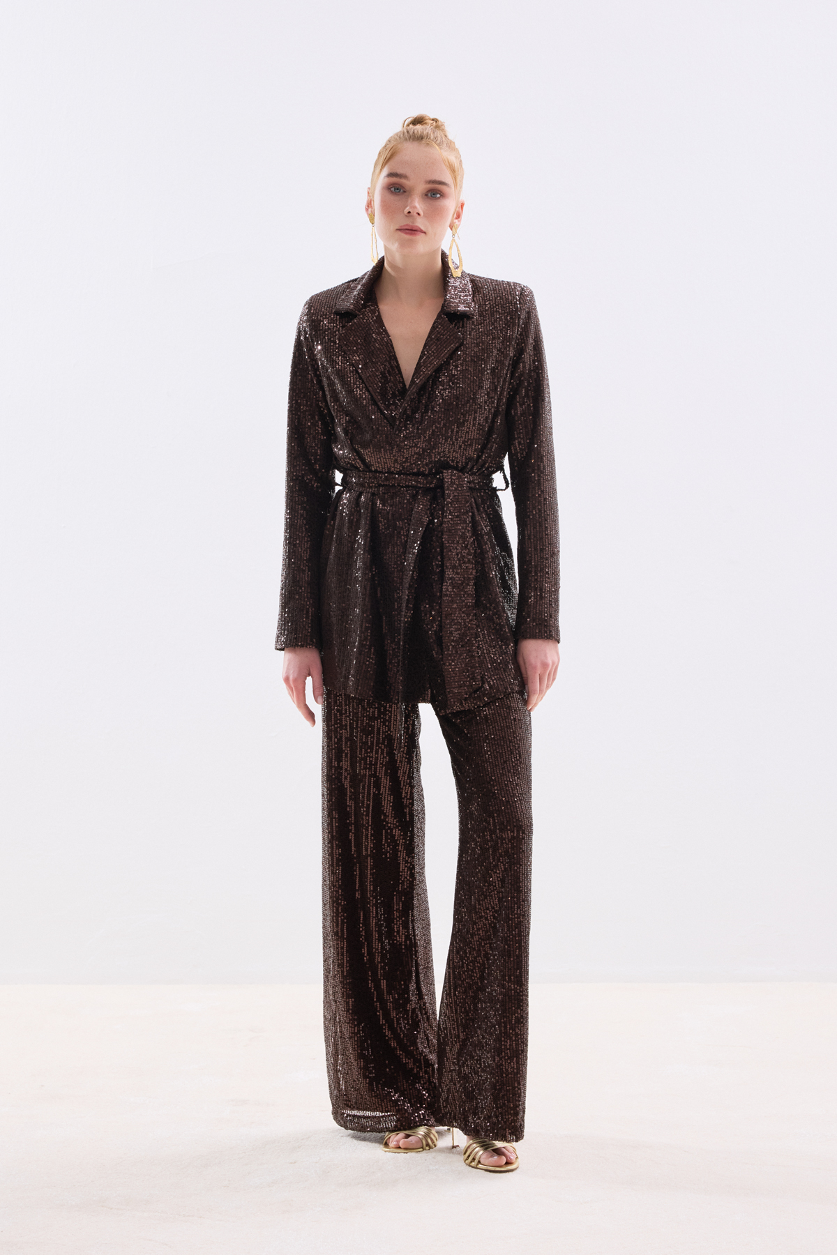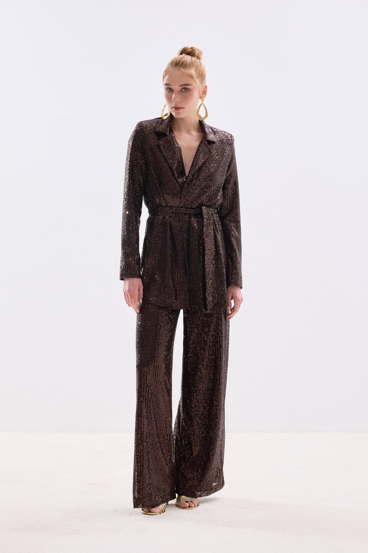 Kuşaklı Payet Ceket - Kahve (STN139KCE2096-014)