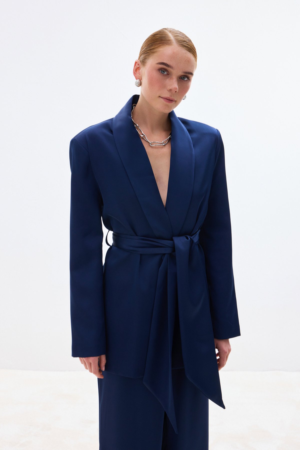 Kuşaklı Saten Ceket - Lacivert (STN139KCE1942-LAC)
