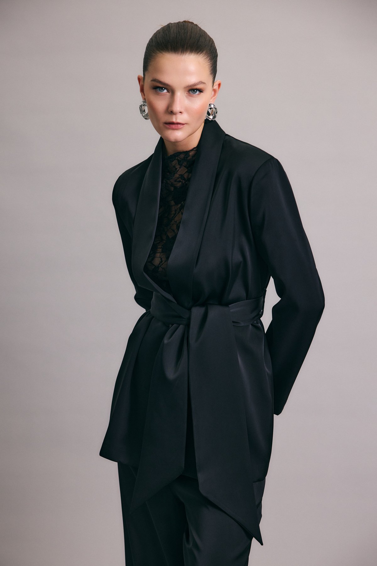 Kuşaklı Saten Ceket