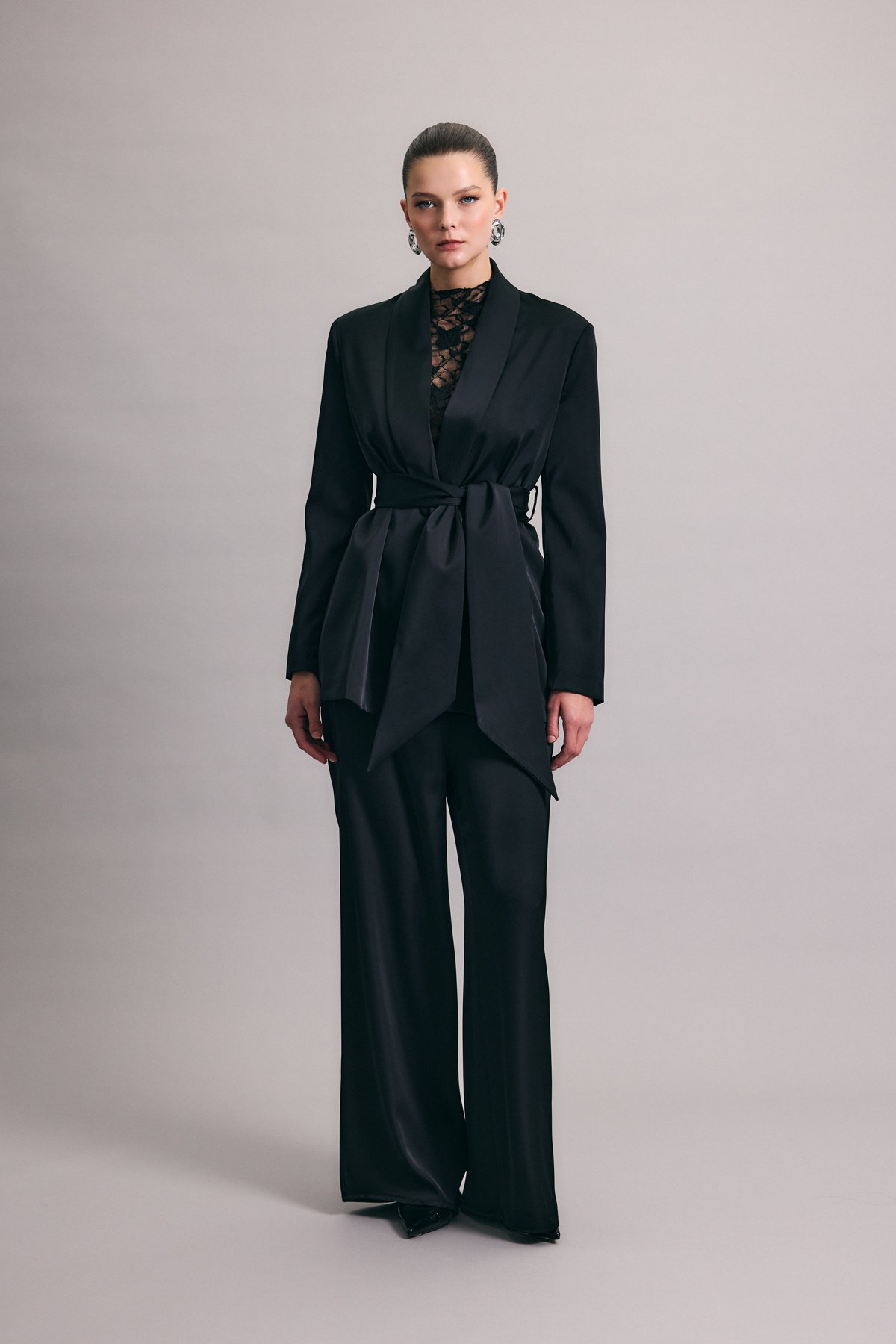 Kuşaklı Saten Ceket - Siyah (STN139KCE1942-5)