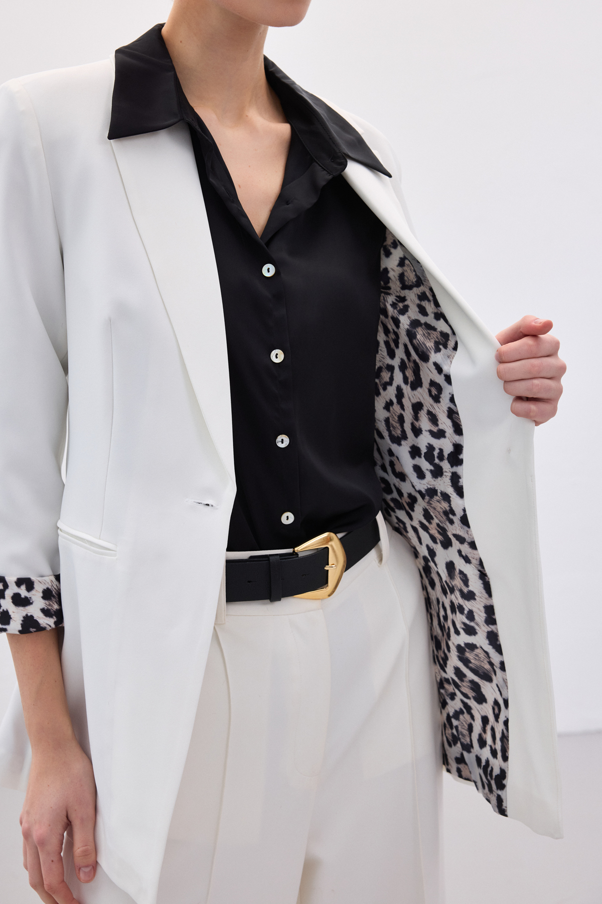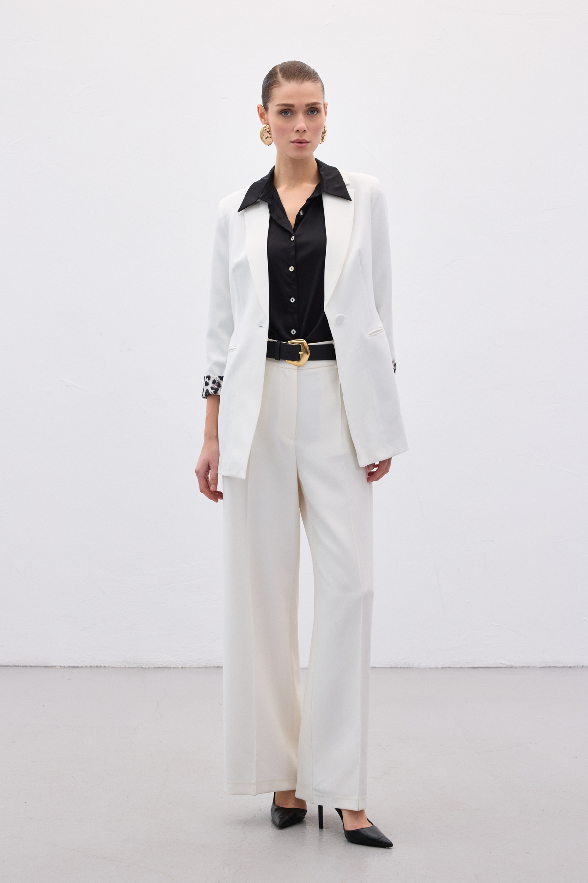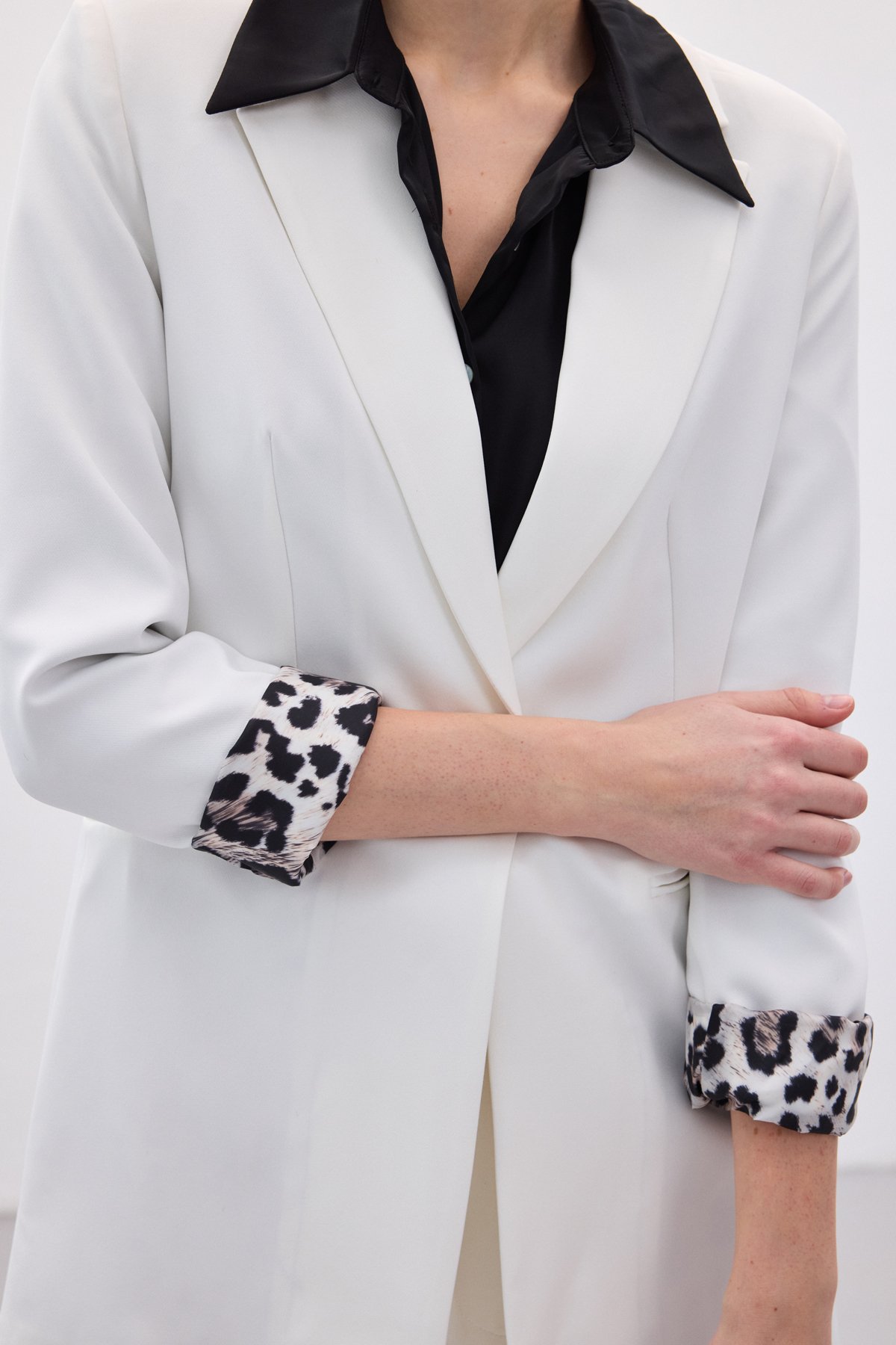 Mono Yaka Klasik Ceket - Ekru-Siyah (STN139KCE166-ES)