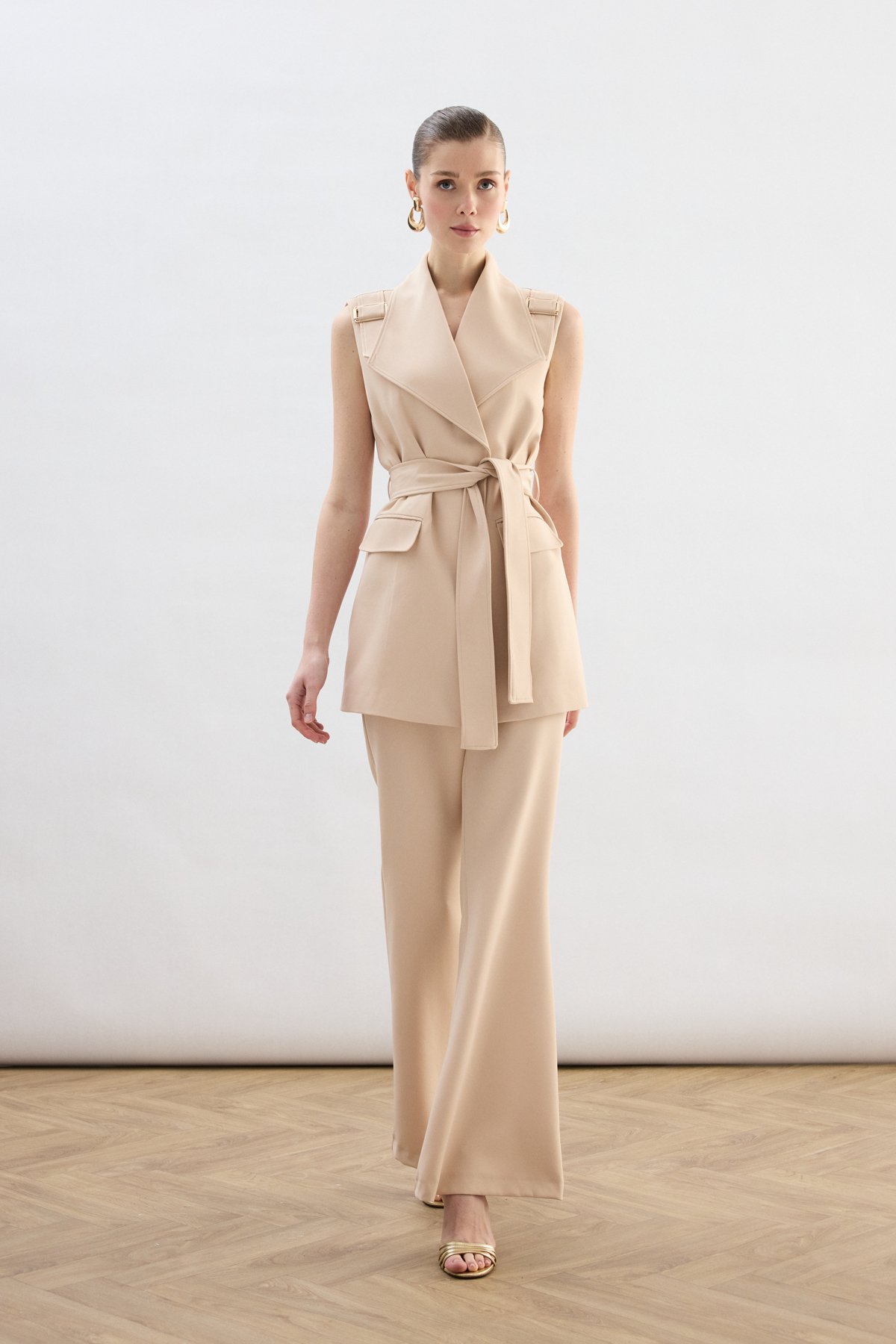 Omuz Aksesuarlı Kuşaklı Yelek - Bej (STN139KYE1940-BEJ)