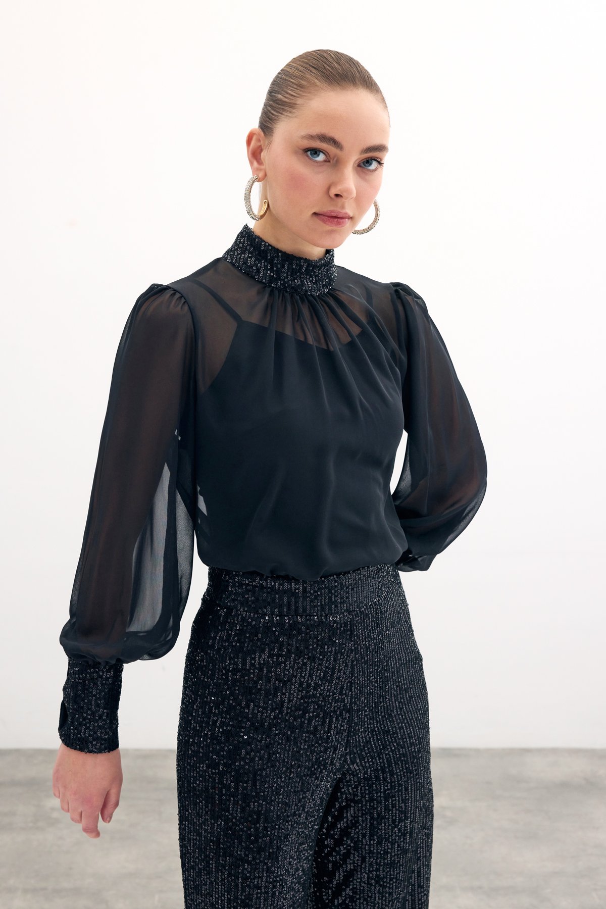Payet Detaylı Bluz - Siyah (STN139KBL1676-5)